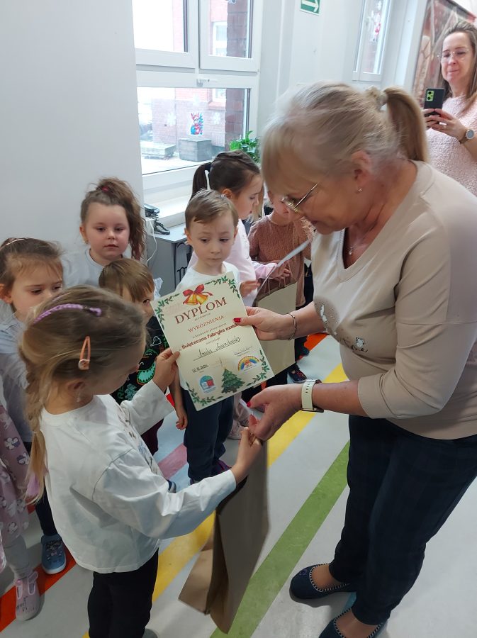 We wtorek 2 grudnia 2025 roku odbyło się w naszym przedszkolu rozstrzygnięcie konkursu plastycznego na najpiękniejszą ozdobę choinkową „Świąteczna fabryka ozdób”. Głównym sponsorem nagród w konkursie była Rada Rodziców oraz Klub Nauczycieli Polskich i
