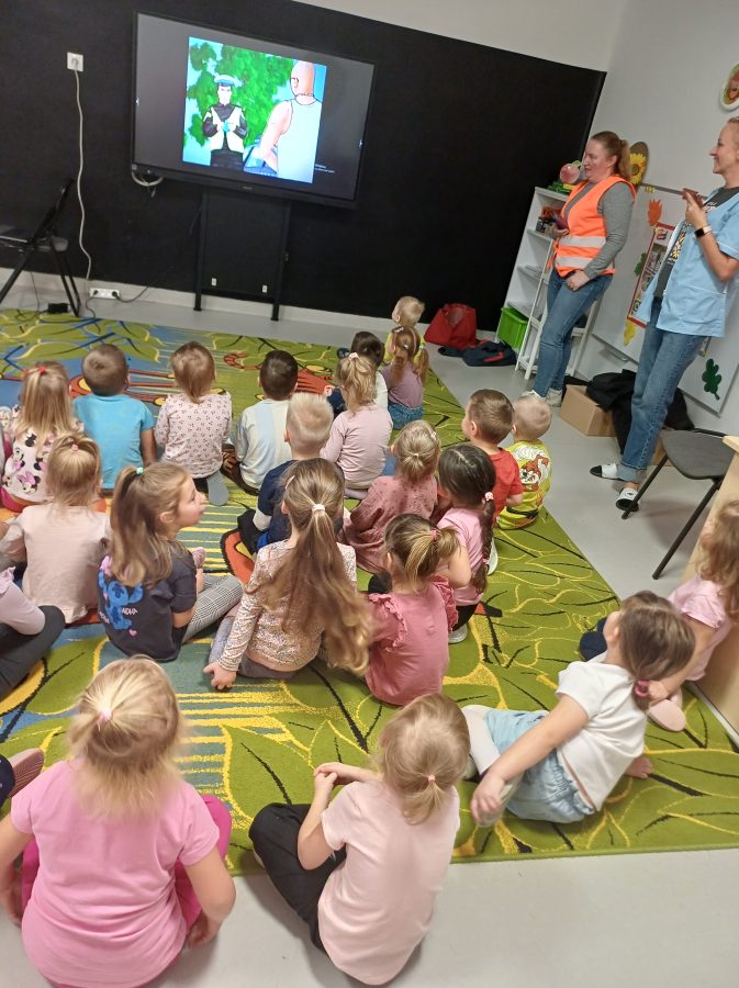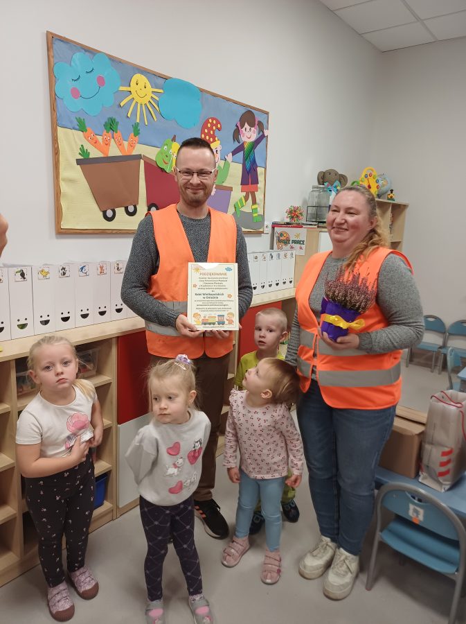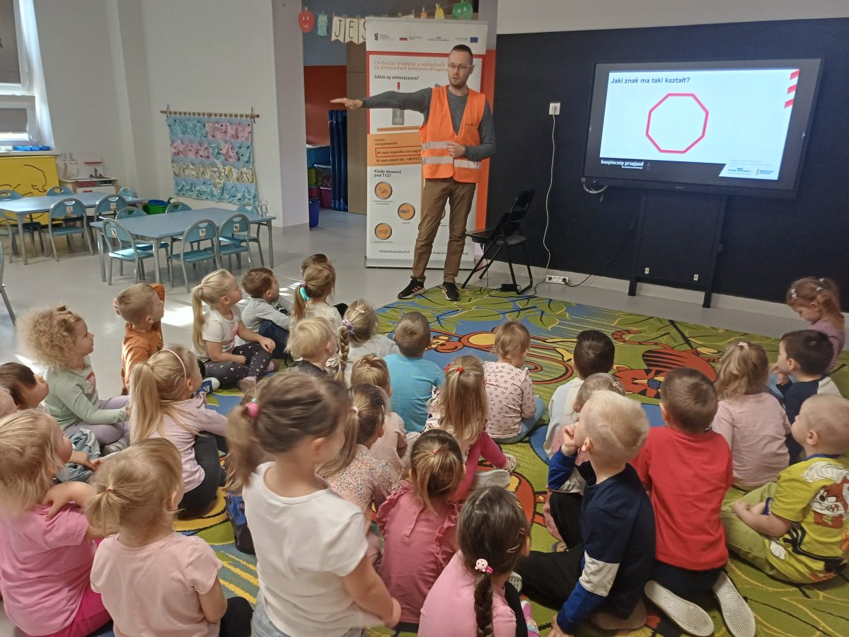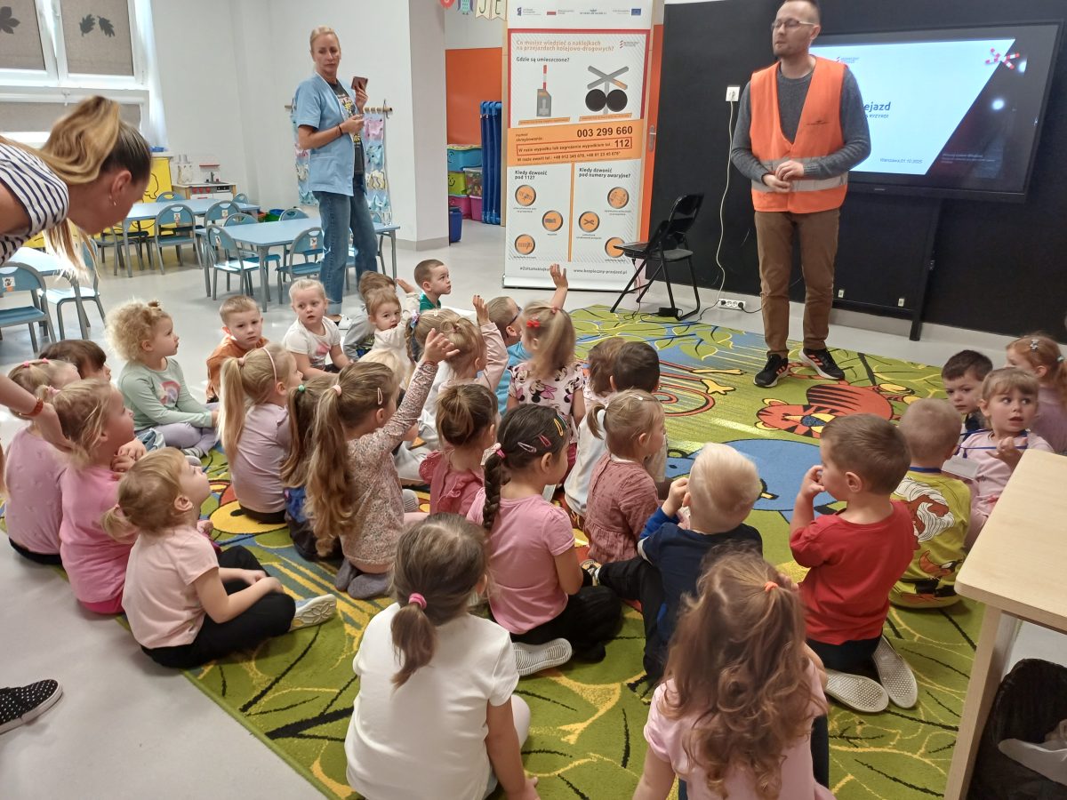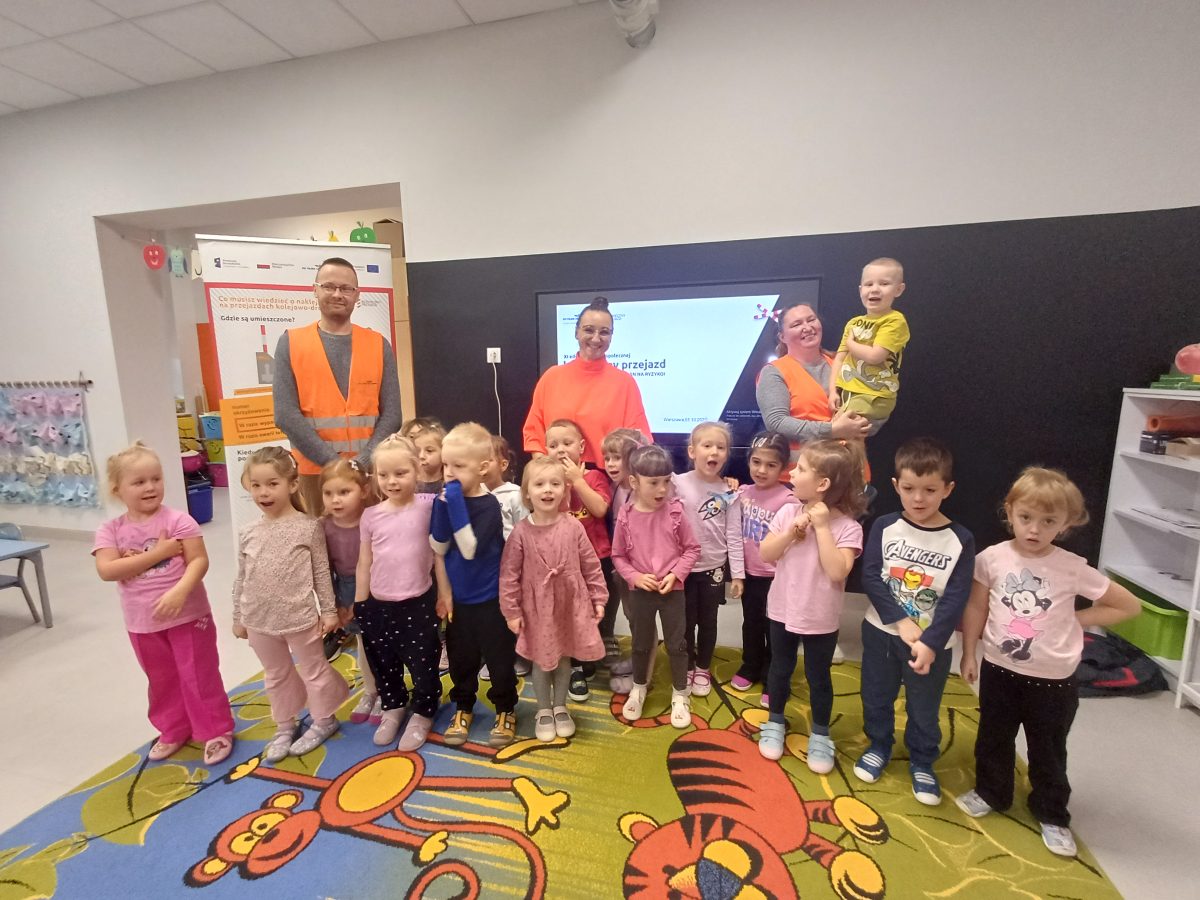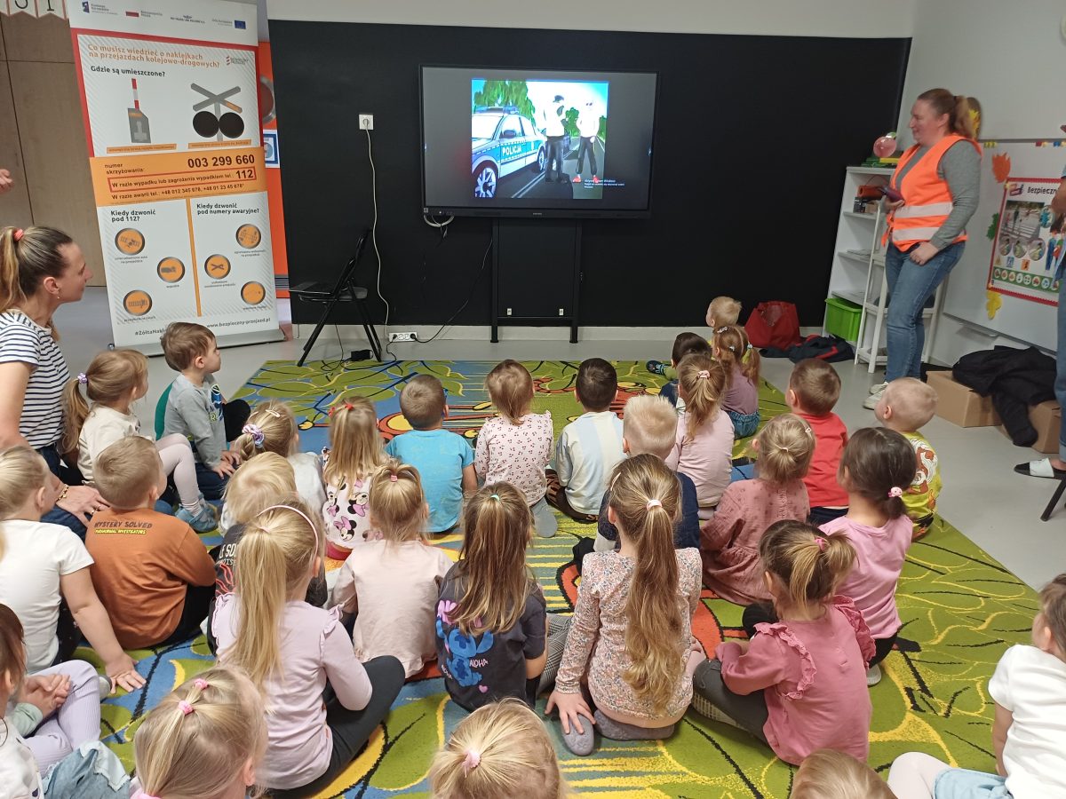 Podczas wizyty dzieci miały okazję poznać pracę kolejarza i dowiedzieć się, jak ważną rolę odgrywa kolej w codziennym życiu. Przedszkolaki z dużym zainteresowaniem słuchały opowieści o pociągach, dworcach i sygnałach kolejowych. Dzięki specjalnym materiałom edukacyjnym i filmikom dowiedziały się, jak bezpiecznie zachowywać się w pobliżu torów i przejazdów kolejowych. Dzieci mogły zadawać pytania, rozwiązywać zagadki o pociągach oraz bezpieczeństwie. Na zakończenie każdy przedszkolak otrzymał pamiątkowy odblask i kolorowankę z motywem kolejowym. Dziękujemy mamie oraz babci Oliwiera za organizację wydarzenia.