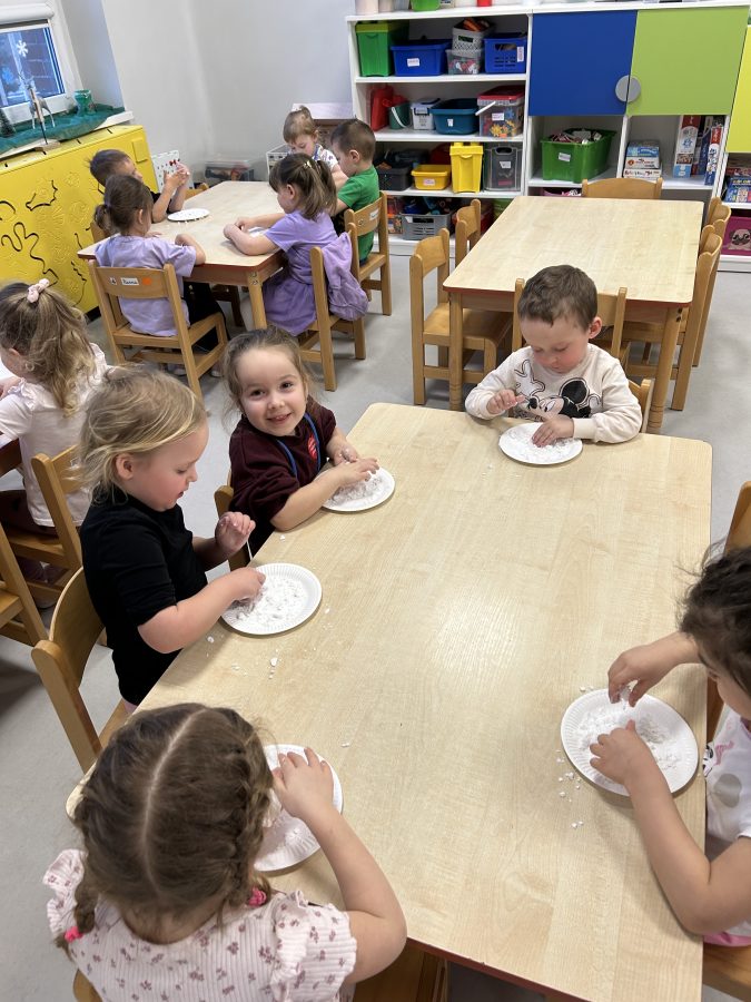Na koniec nie mogliśmy sobie odmówić zabawy sensorycznej ze sztucznym śniegiem ☃️❄️