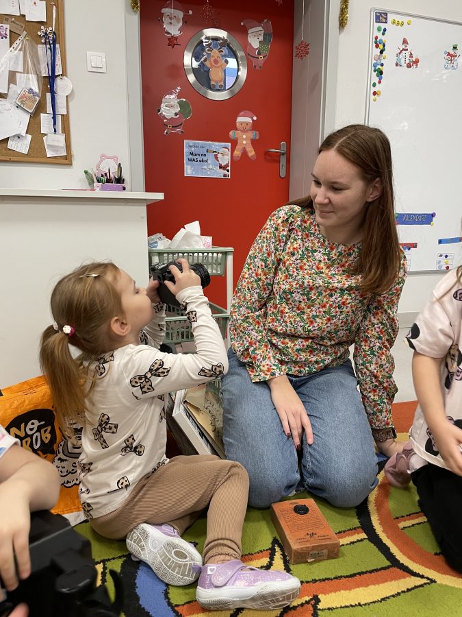 W miniony czwartek odwiedziła nas mama Jadzi – Pani Lidia, aby przybliżyć dzieciom swój zawód fotografa. Przedszkolaki z ogromną ciekawością słuchały na czym polega ten zawód i mogły obejrzeć przyniesione przez naszego gościa rekwizyty ( aparaty fotograficzne, albumy). Dziękujemy serdecznie za poświęcony czas i przybliżenie dzieciom swojego zawodu 🎞️📷