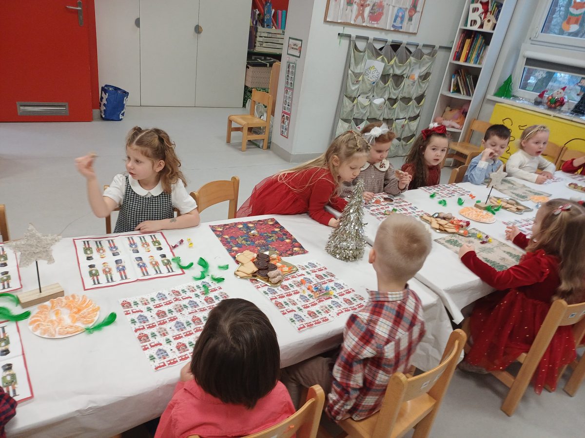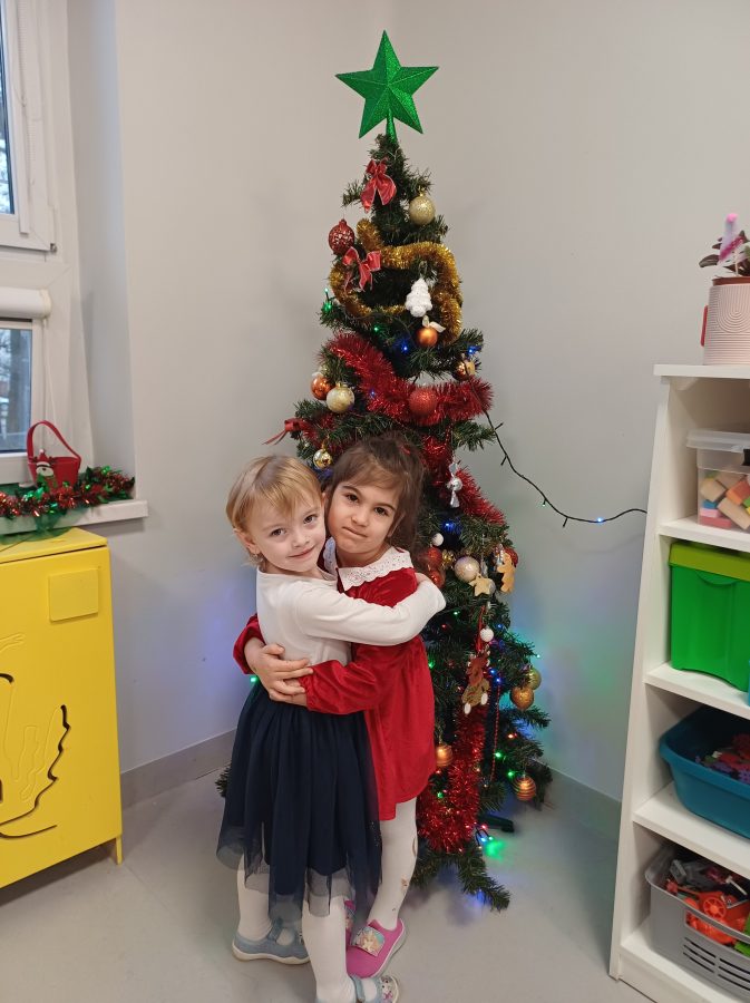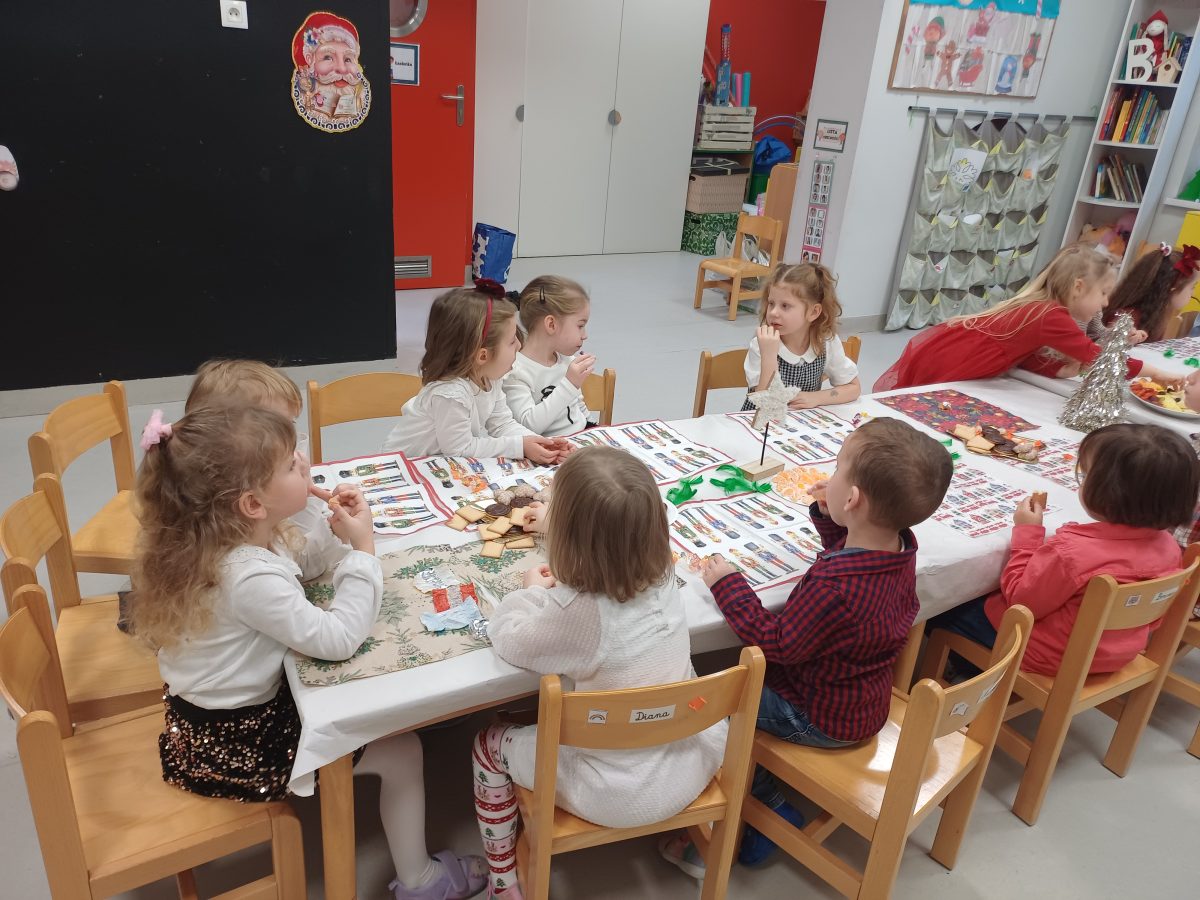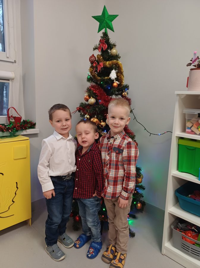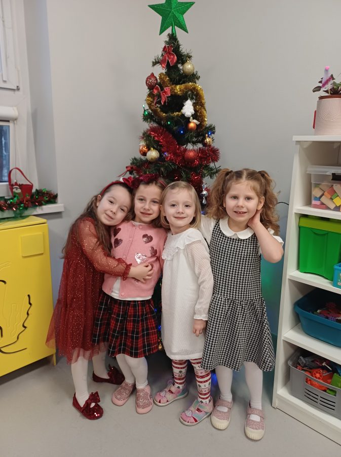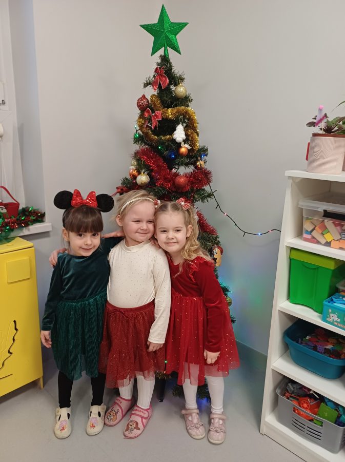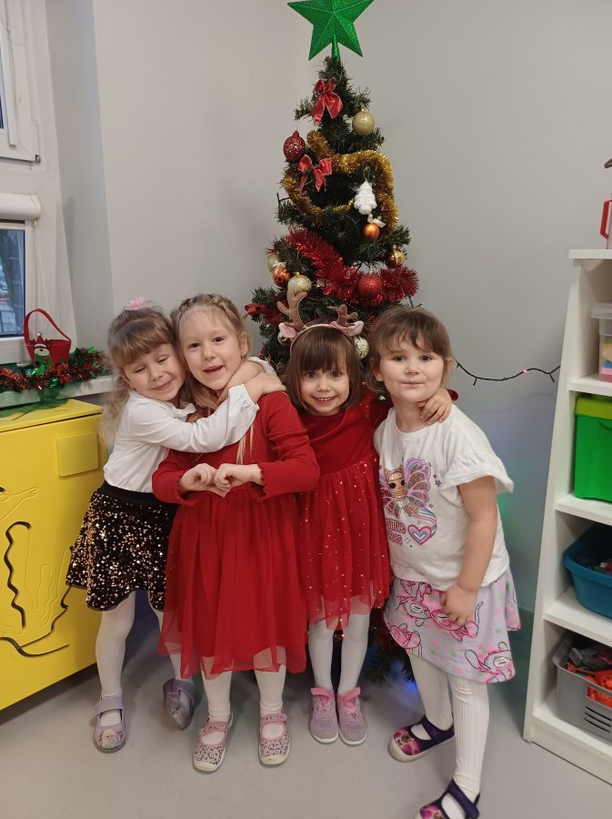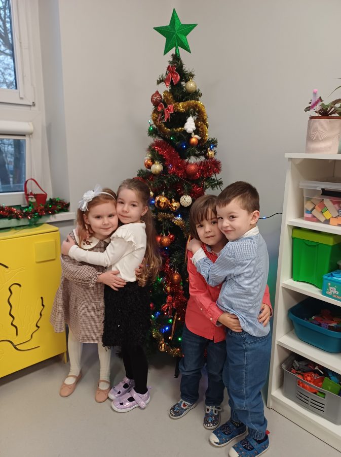 Nasze przedszkolaki zanim rozpoczęły święta w rodzinnym gronie to zasiadły do uroczystej Wigilii w przedszkolu. Najpierw odbyło się wspólne kolędowanie, później obiad – zupa grzybowa i rybka. Dzieci podzieliły się opłatkiem, ucząc się przy tym składać życzenia.
