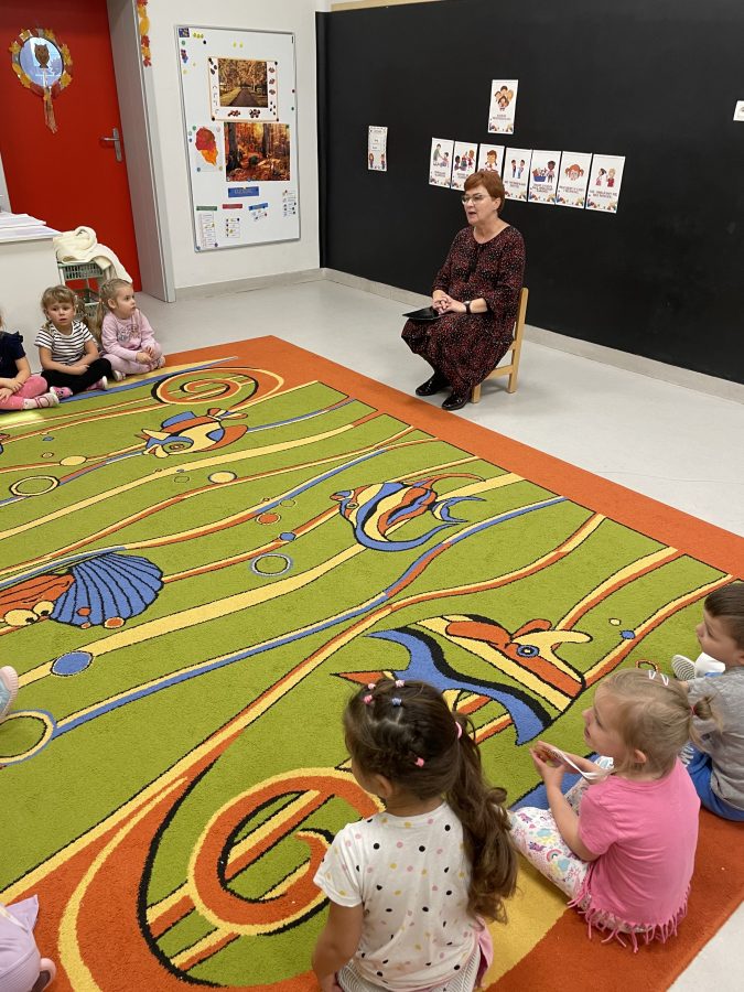 W ubiegły czwartek odwiedziła nas Pani Miecia z biblioteki, która przybliżyła dzieciom temat poezji dziecięcej. Nie było to tylko słuchanie, gdyż okazało się, że wiersze można również połączyć z muzyką. I taka forma podobała się przedszkolakom najbardziej. Serdecznie dziękujemy za wizytę Pani Mieczysławie oraz poświęcony czas.