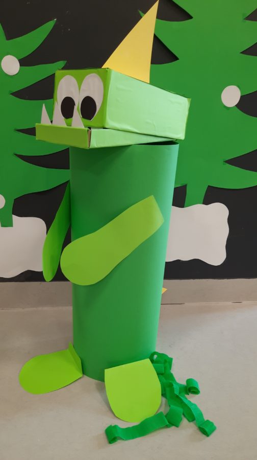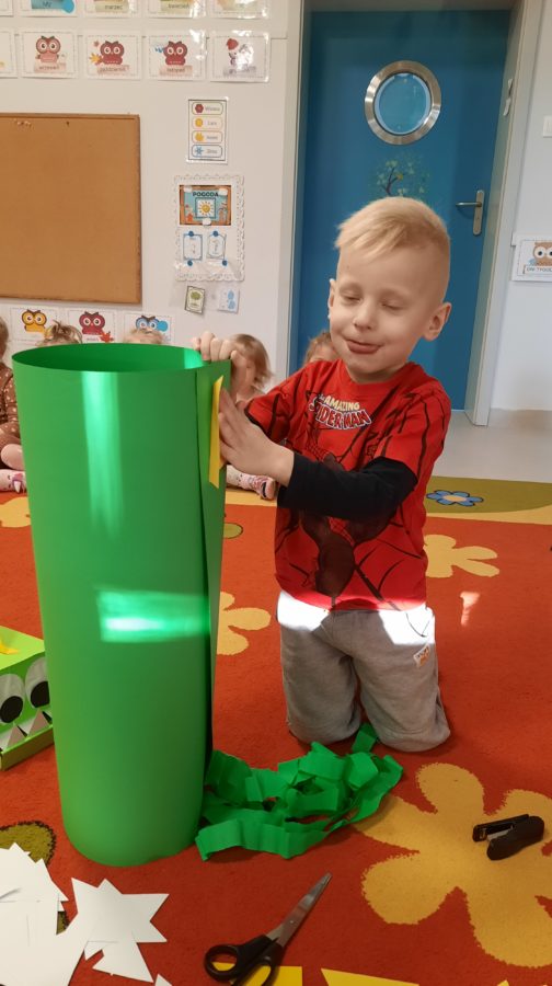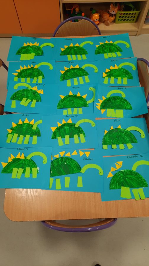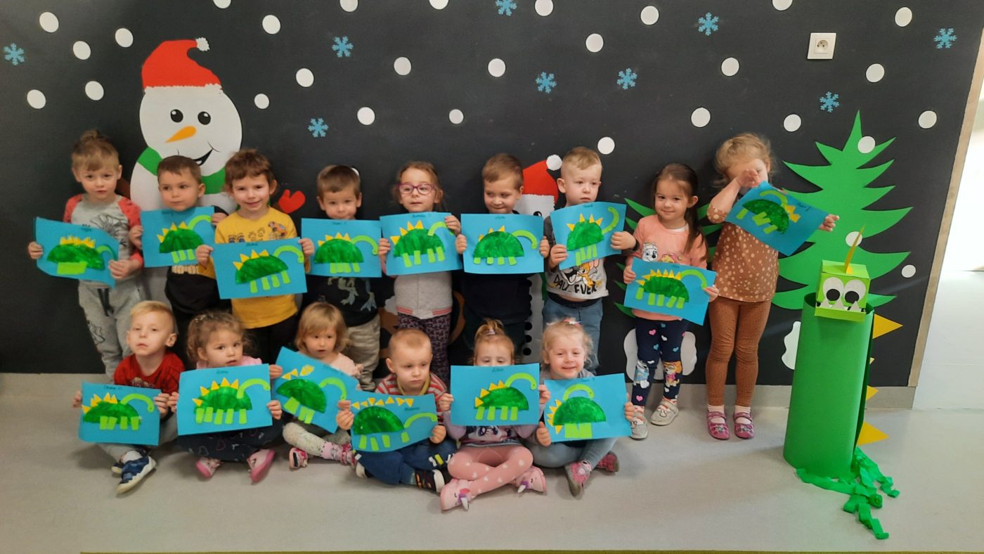 Ponadto wykona艂y du偶ego,聽 grupowego Dinozaura,聽 jak r贸wnie偶 skonstruowa艂y swojego na kartce papieru 馃