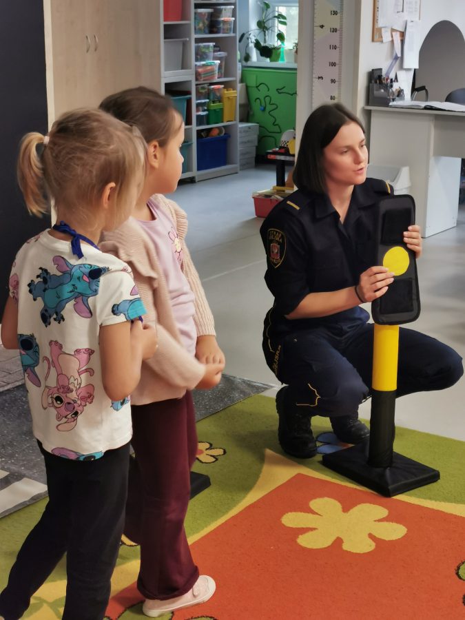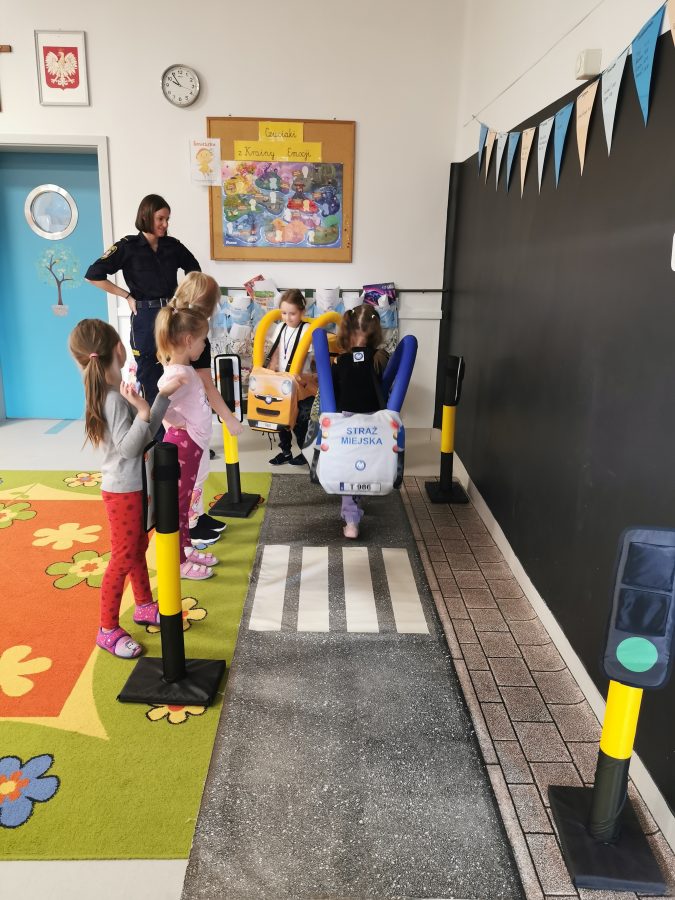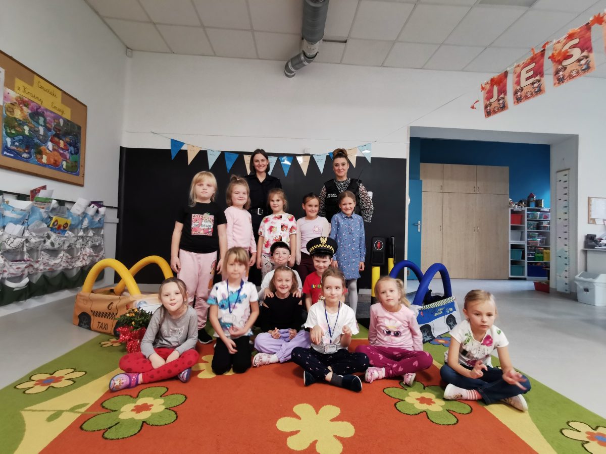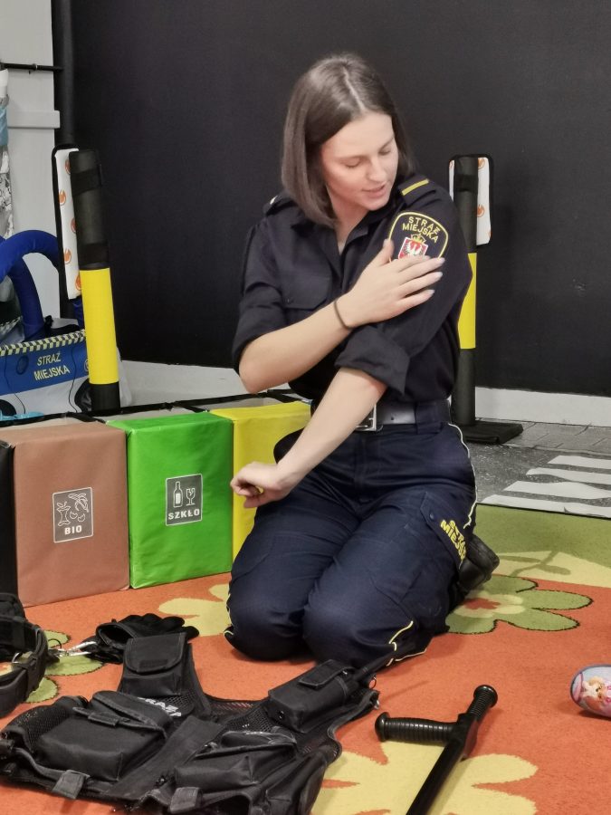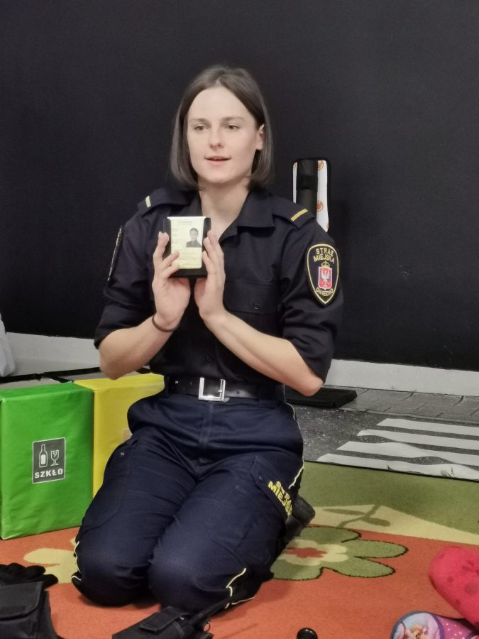 „Bezpieczny Przedszkolak” to temat warsztatów jakie zorganizowane zostały dla naszej grupy przez Panią Agatę, funkcjonariuszkę Straży Miejskiej. Dzieci miały okazję dowiedzieć się jak wygląda praca strażnika miejskiego, poznać elementy umundurowania oraz wziąć udział w zabawach związanych z bezpieczeństwem w ruchu publicznym. Przypomniane zostały także zasady segregacji śmieci i oznakowania kontenerów.