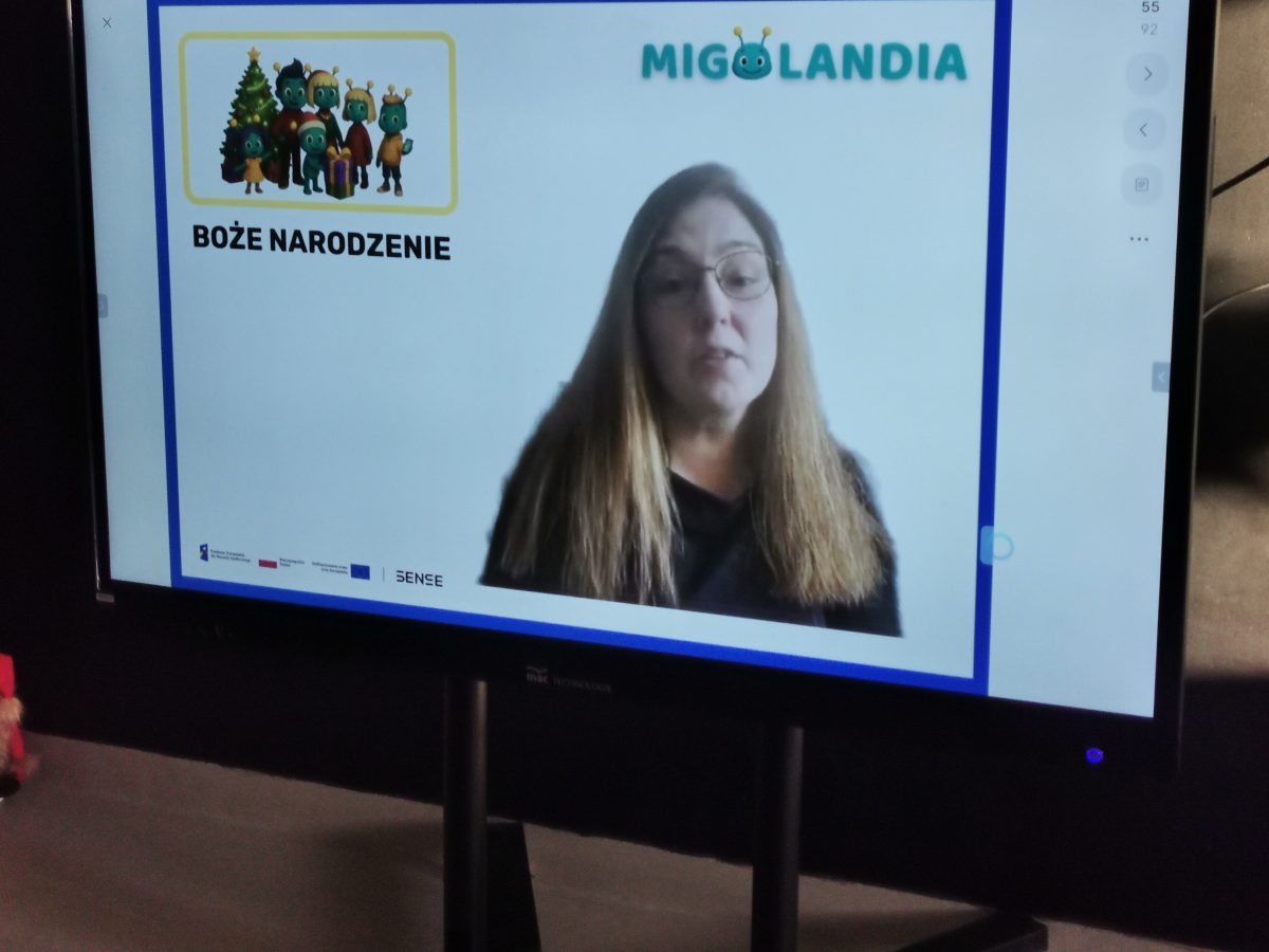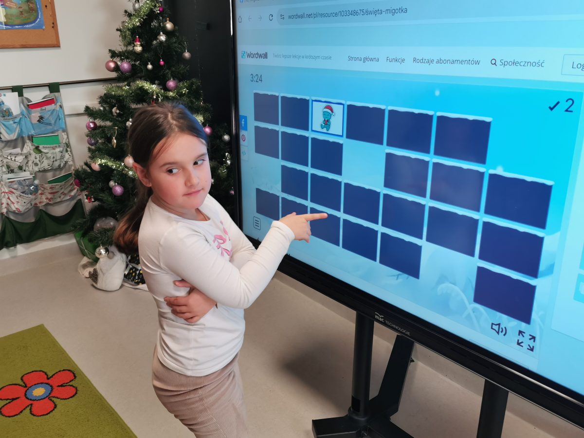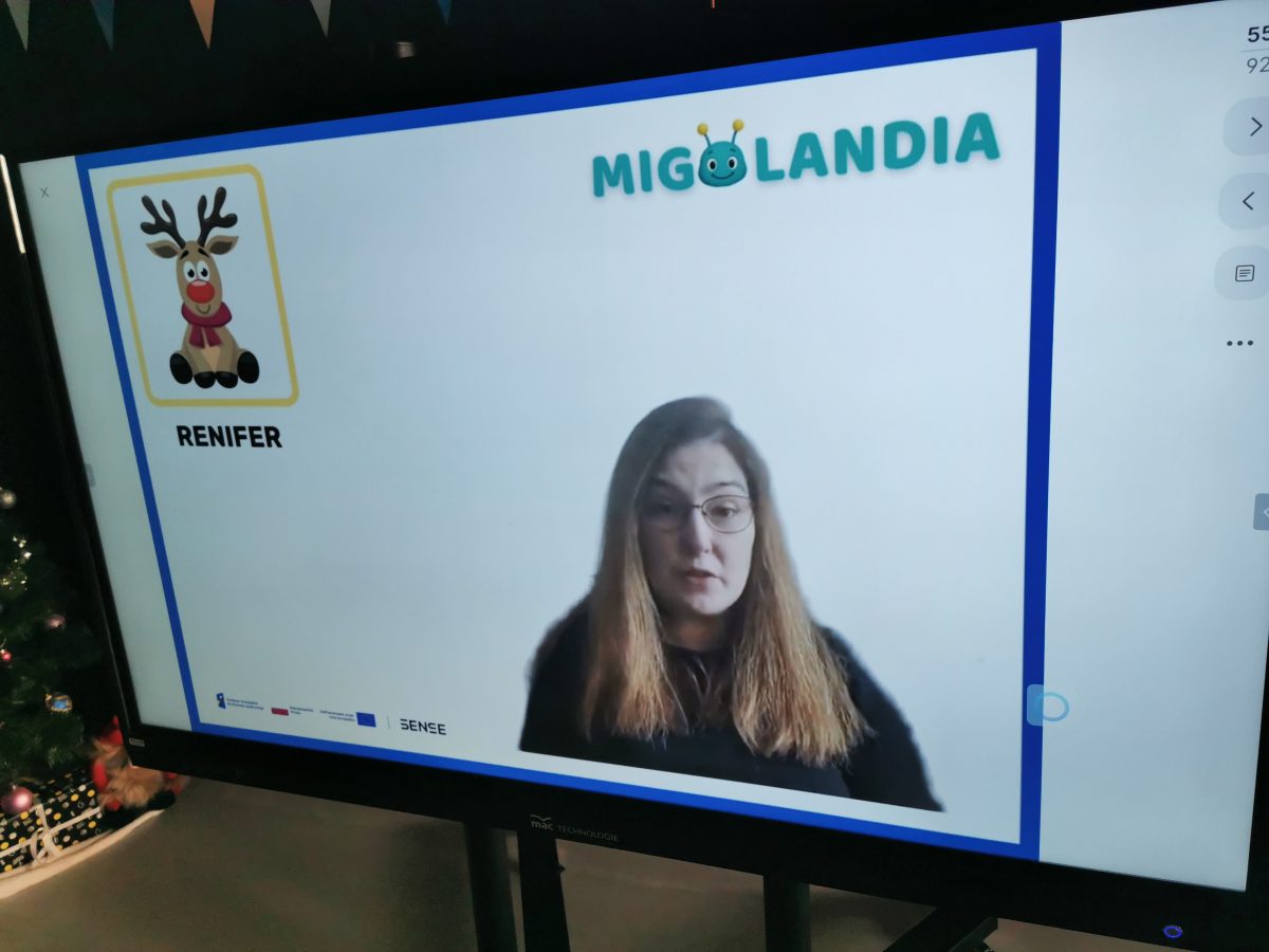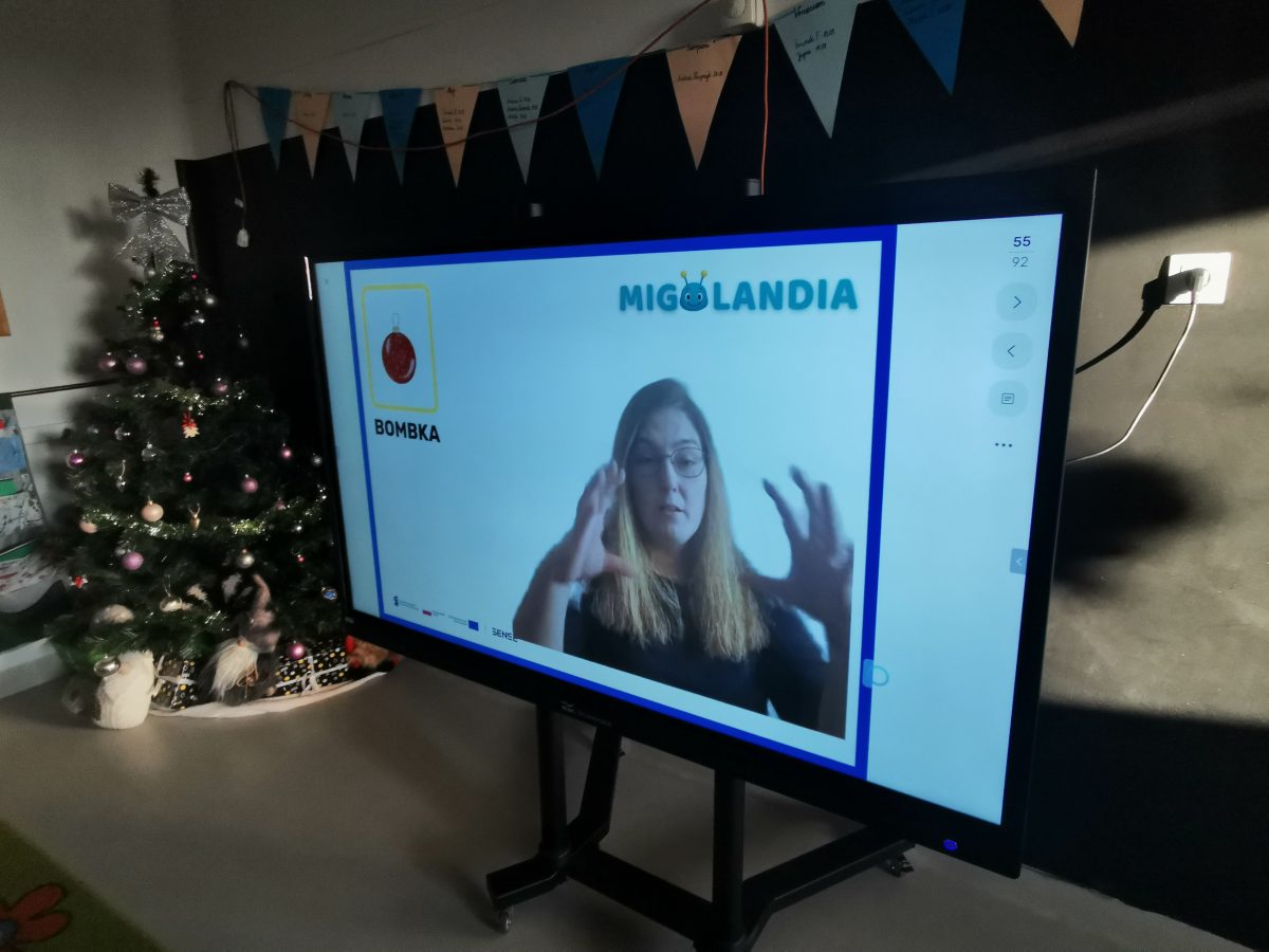 Świąteczne zabawy z Migotkiem i językiem migowym Świąteczne zabawy z Migotkiem z Krainy Migolandia oraz z językiem migowym. Grupa poznała kolejne znaki stosowane w komunikacji alternatywnej, uczyła się piosenki o Migotku a także rozwiązywała rebusy przy pomocy tablicy interaktywnej 🙂