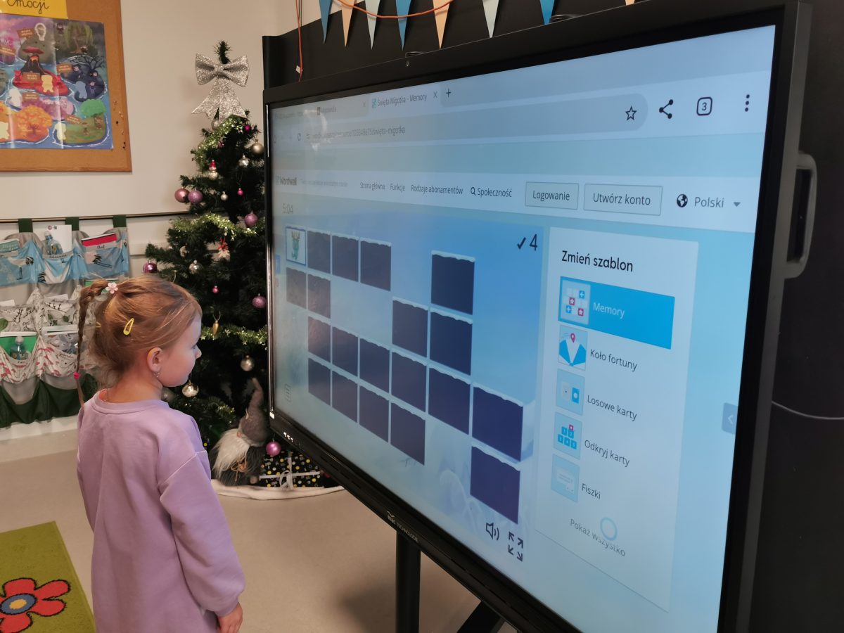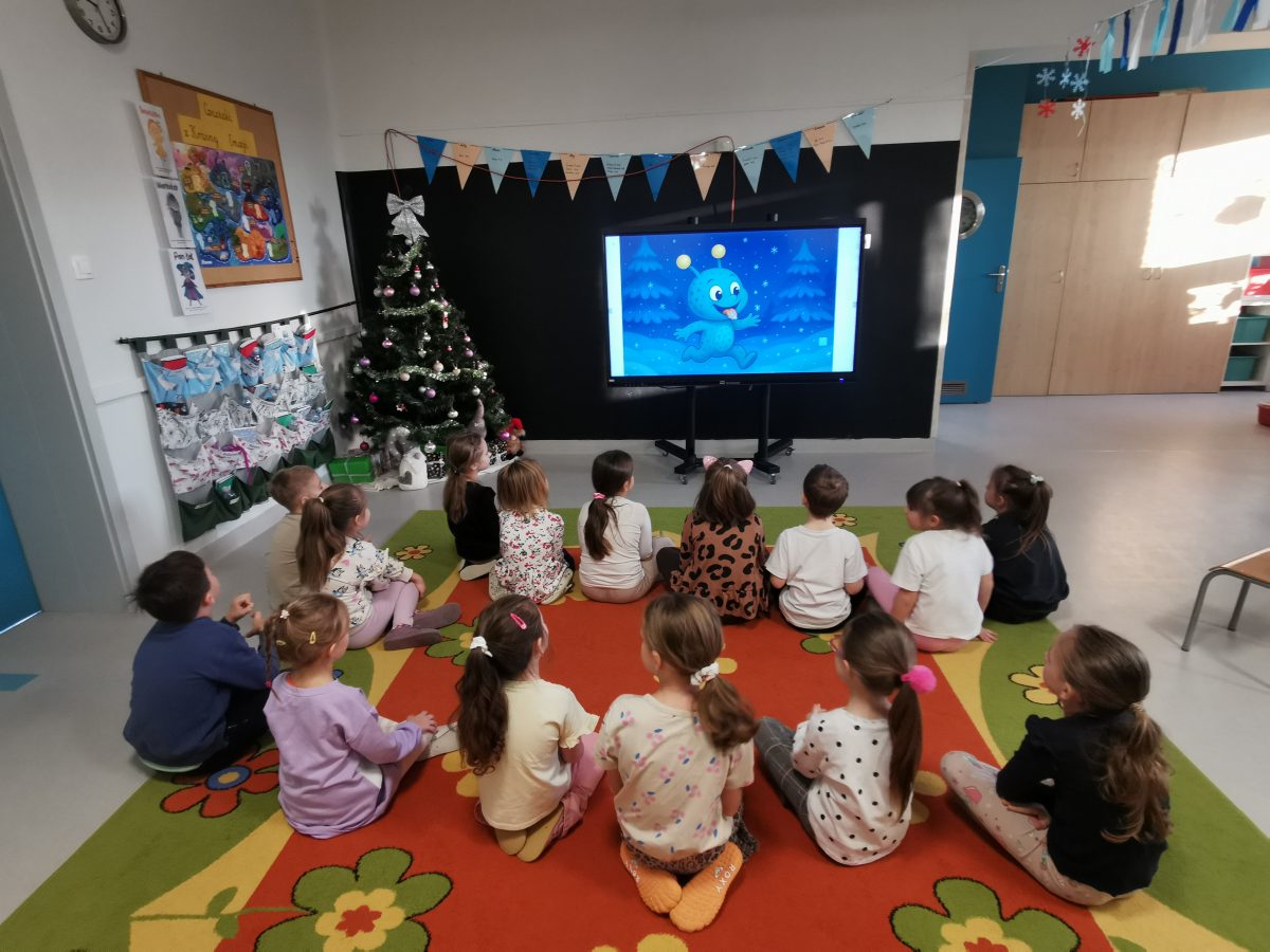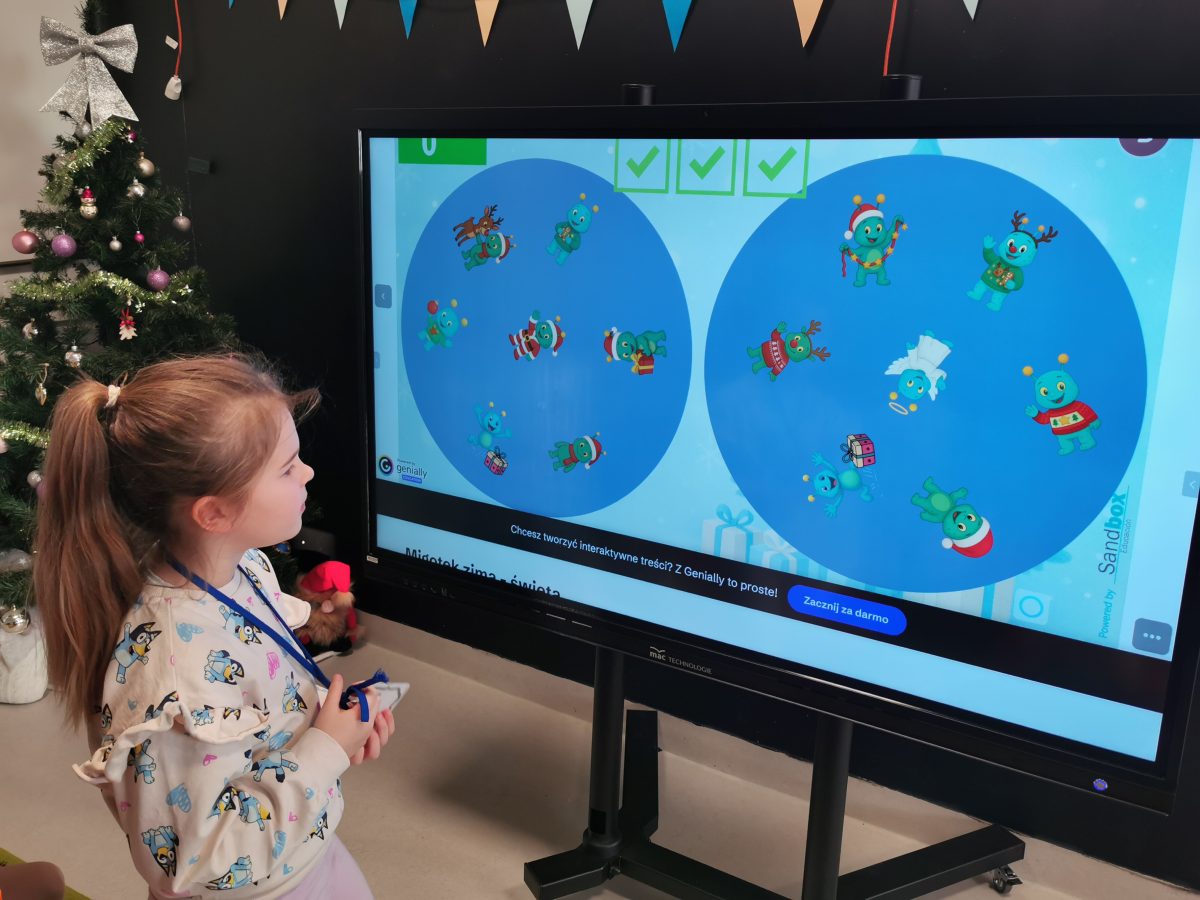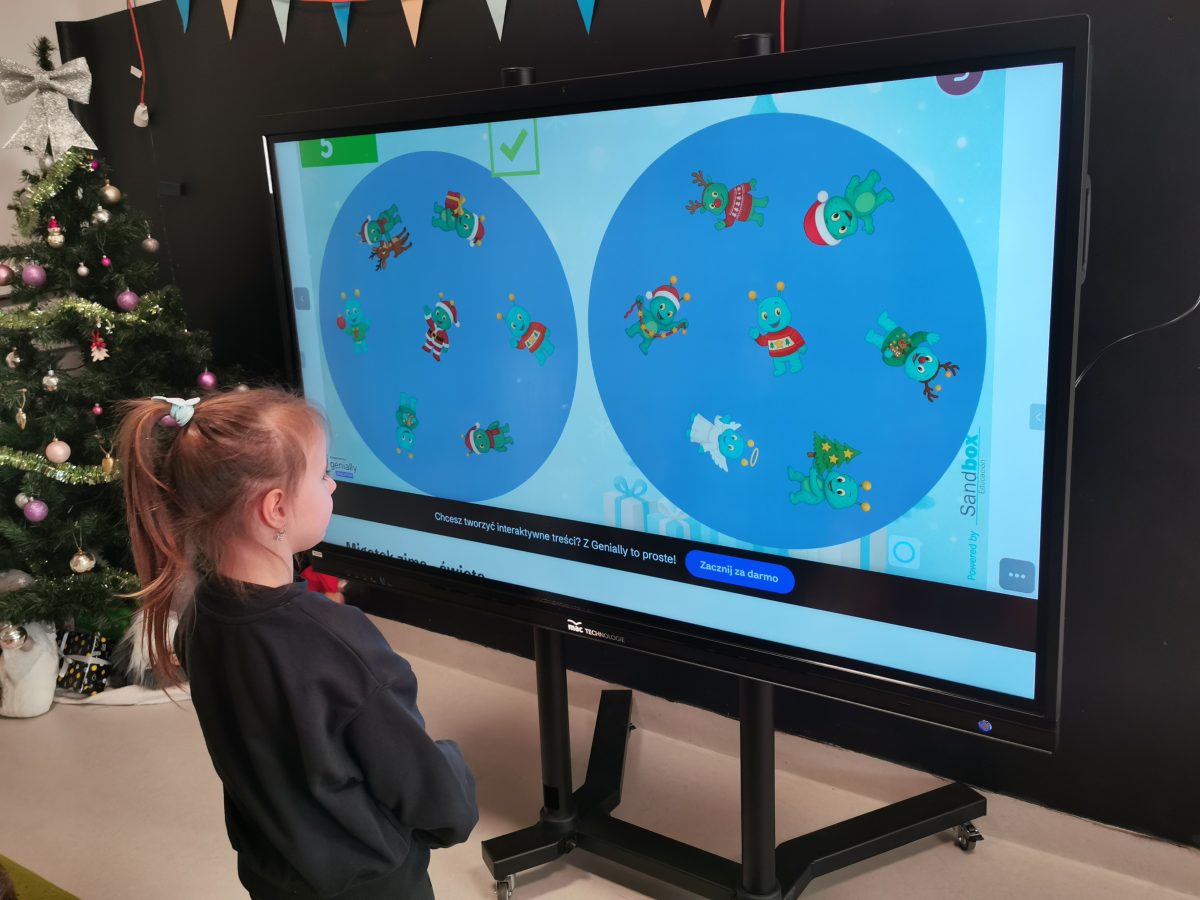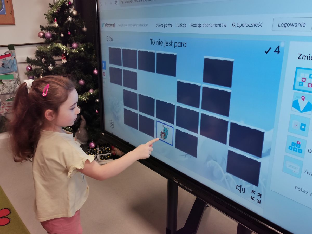 Świąteczne zabawy z Migotkiem i językiem migowym Świąteczne zabawy z Migotkiem z Krainy Migolandia oraz z językiem migowym. Grupa poznała kolejne znaki stosowane w komunikacji alternatywnej, uczyła się piosenki o Migotku a także rozwiązywała rebusy przy pomocy tablicy interaktywnej 🙂