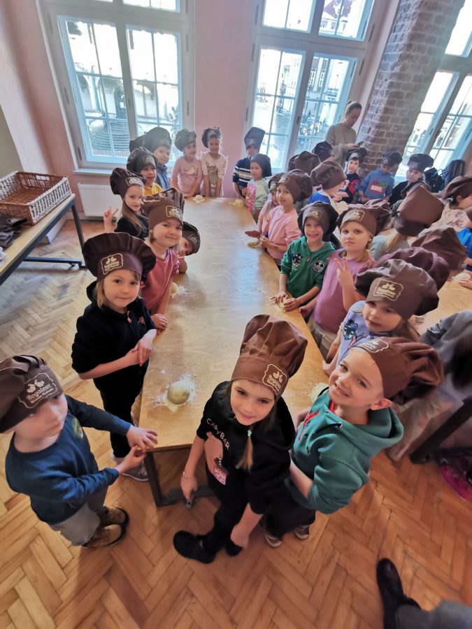 Dzis udaliśmy się na warsztaty cukiernicze do Muzeum Rogala w Poznaniu. Dzieci poznały historie miasta oraz tradycje związaną z rogalem marcińskim. Miały także okazję samodzielnie przygotować do wypieku słodkie przysmaki . Wszystko odbywało się pod czujnym okiem wykwalifikowanych cukierników.