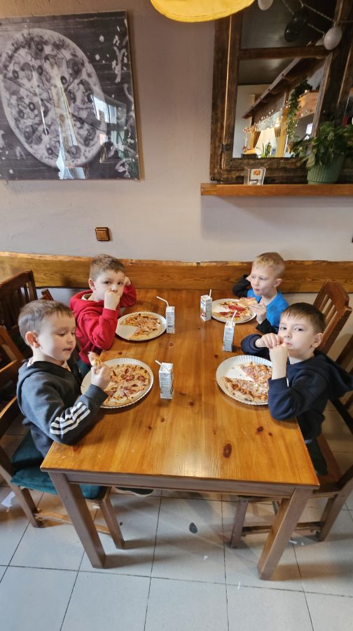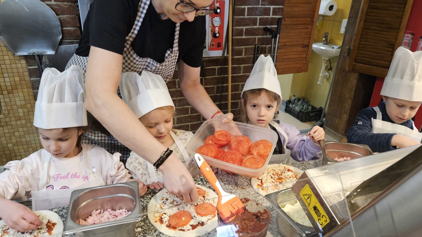 Dziś, realizując program „Kreatywne Dni Nietypowe”, odwiedziliśmy „Pizzerię Twoja” przy ulicy Tulipanowej. Przywitała nas tam bardzo pozytywna ekipa pracowników, którzy z ogromnym poczuciem humoru i fantastycznym podejściem do dzieci wprowadziła nas w świat pizzy. Dowiedzieliśmy się ciekawych rzeczy, zaprojektowaliśmy papierową pizze marzeń i każde z dzieci samodzielnie wykonało pizzę ze swoimi ulubionymi dodatkami, którą ostatecznie ze smakiem zjadły. DZIĘKUJEMY !!!