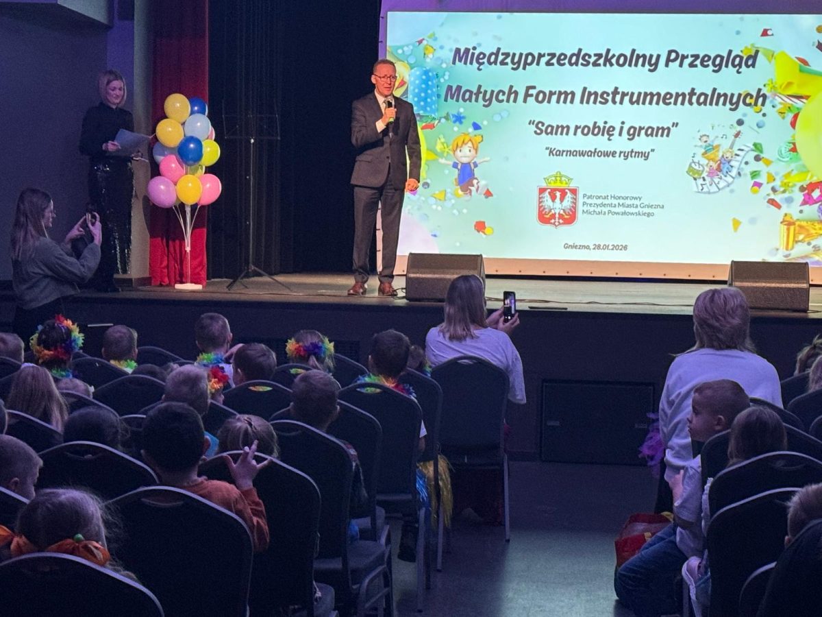 Dnia 28 stycznia nasza grupa brała udział w Przeglądzie Małych Form Instrumentalnych „Sam robię i gram”, który odbył się pod patronatem Prezydenta miasta w Miejskim Ośrodku Kultury w Gnieźnie. Nasza grupa zaprezentowała się niezwykle barwnie i energetycznie.