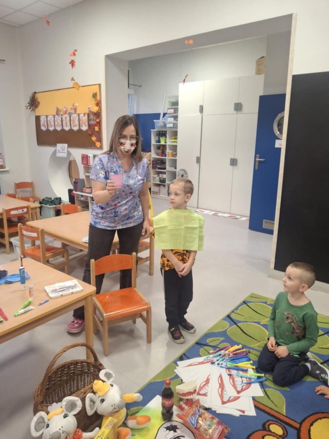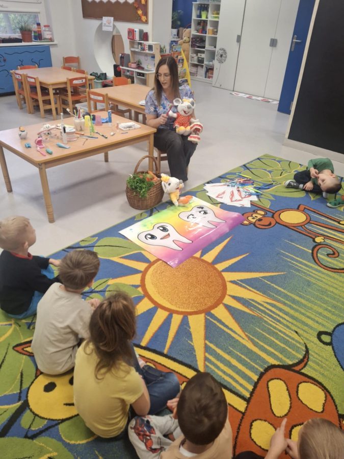 WIZYTA STOMATOLOGA W NASZEJ GRUPIE „Czyste zęby ważna rzecz, bo bakterie pójdą precz. Zęby co dzień myj dokładnie, a wyglądać będziesz ładnie.”