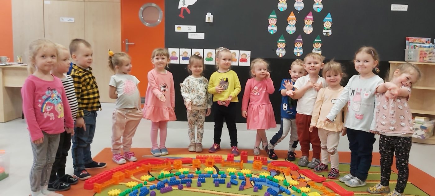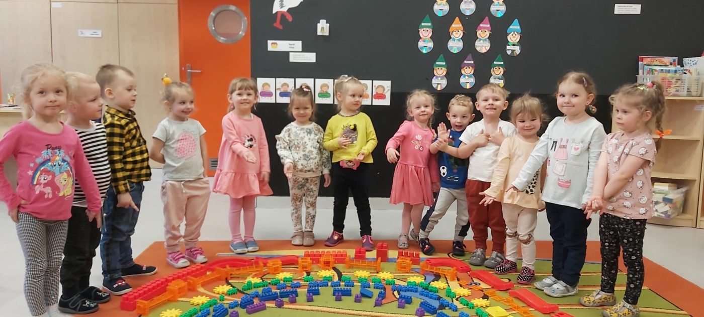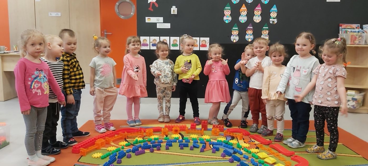 Tęcza „Kwiecień plecień poprzeplata, trochę zimy, trochę lata”. Mimo tego, iż pogoda płata nam figle dzieci postanowiły wykorzystać różnego rodzaju klocki tworząc kolorową tęczę:)