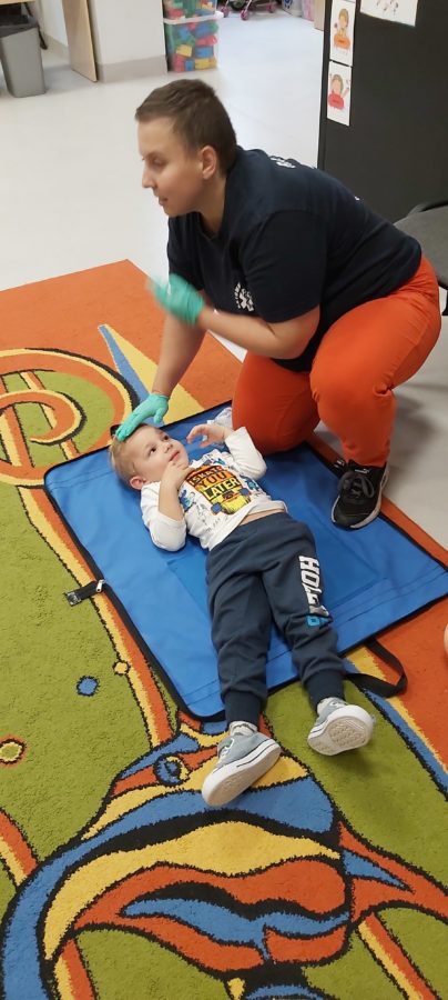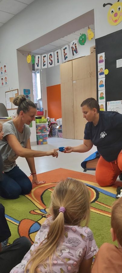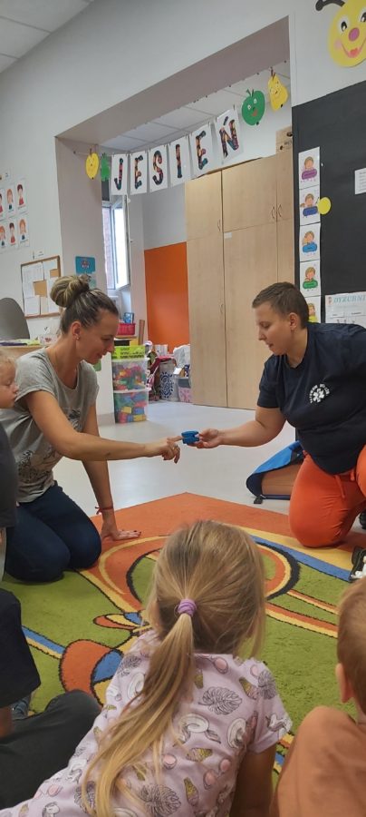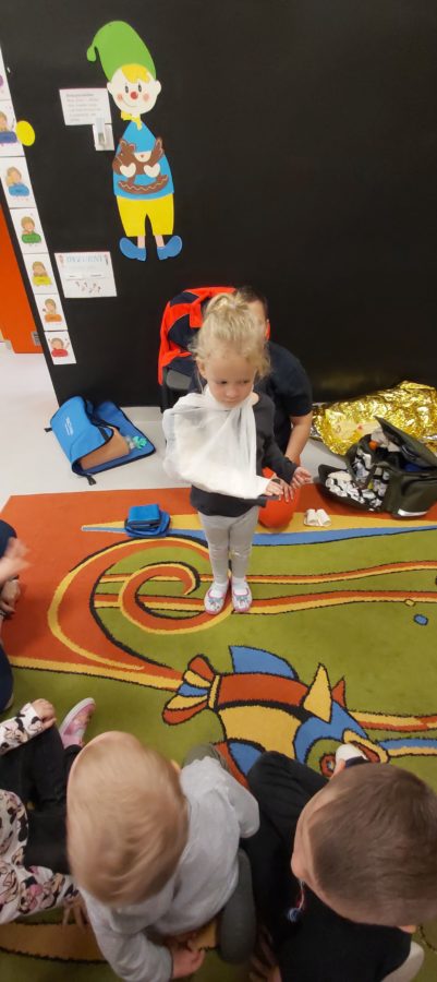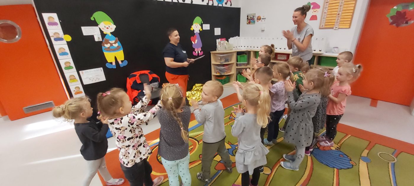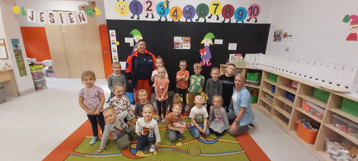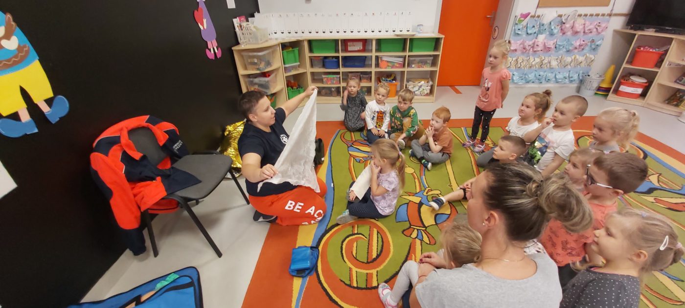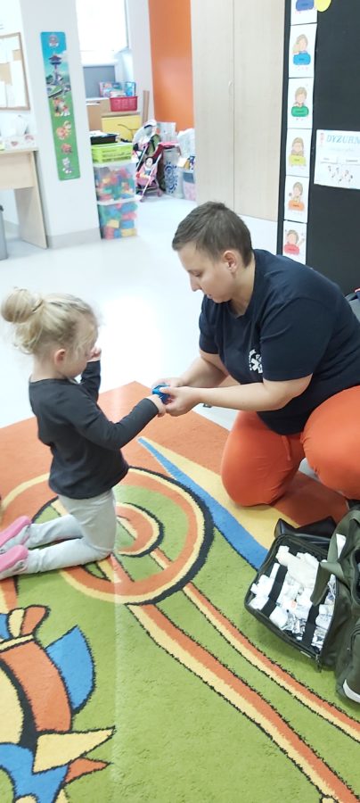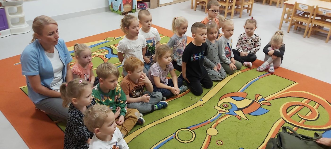 27 października nasze Przedszkole odwiedziła Pani Monika Bąk. Dzieci najpierw miały okazję obejrzeć strój ratownika i wysłuchać informacji na temat udzielania pierwszej pomocy; w jaki sposób można komuś pomóc zanim przyjedzie pogotowie ratunkowe, jak należy sprawdzać przytomność osoby poszkodowanej oraz w jaki sposób wzywać pomoc czyli jak rozmawiać przez telefon z dyspozytorką ( trzeba się przedstawić, powiedzieć ile ma się lat, powiedzieć gdzie się znajduje, co się stało i dlaczego potrzebujemy pomocy). Następnie z wielką uwagą przyglądały się jak pani ratownik demonstrowała sztuczne oddychanie i masaż serca na przywiezionych przez siebie fantomach. Później najdzielniejsze przedszkolaki próbowały same udzielać pierwszej pomocy pod bacznym okiem instruktorki. Dzieci miały też okazję przypomnieć i utrwalić sobie numery telefonów alarmowych.  Podczas tego spotkania dzieci nauczyły się wielu ważnych rzeczy, które w przyszłości być może przyczynią się do uratowania komuś życia. DZIĘKUJEMY ! To była dla nas wszystkich bardzo cenna lekcja.