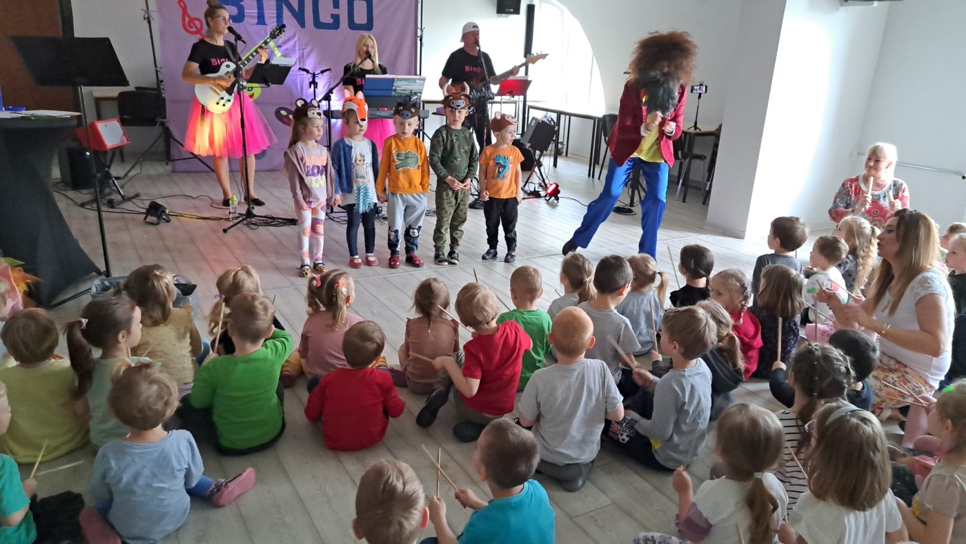 Nasze przedszkole miało przyjemność uczestniczyć w kolejnych muzycznych warsztatach z zespołem BINGO : ) . Zabawa była znakomita: tańce, wspólny śpiew, utrwalanie nazw instrumentów. Dzieci z ogromnym zainteresowaniem słuchały opowieści Pana Kleksa o jego wyjątkowej akademii 🙂 Dziękujemy za świetną zabawę 🙂🥁
