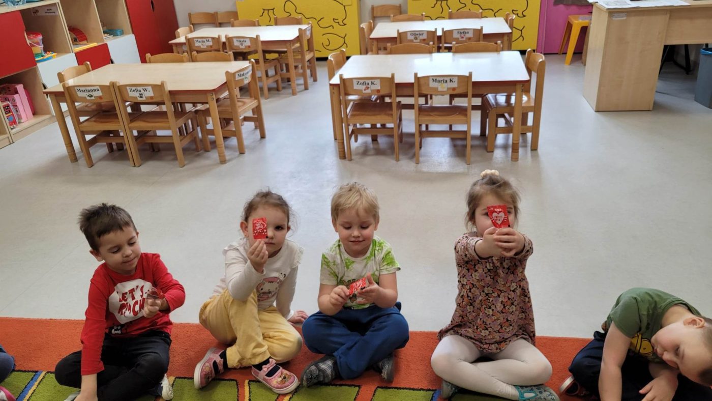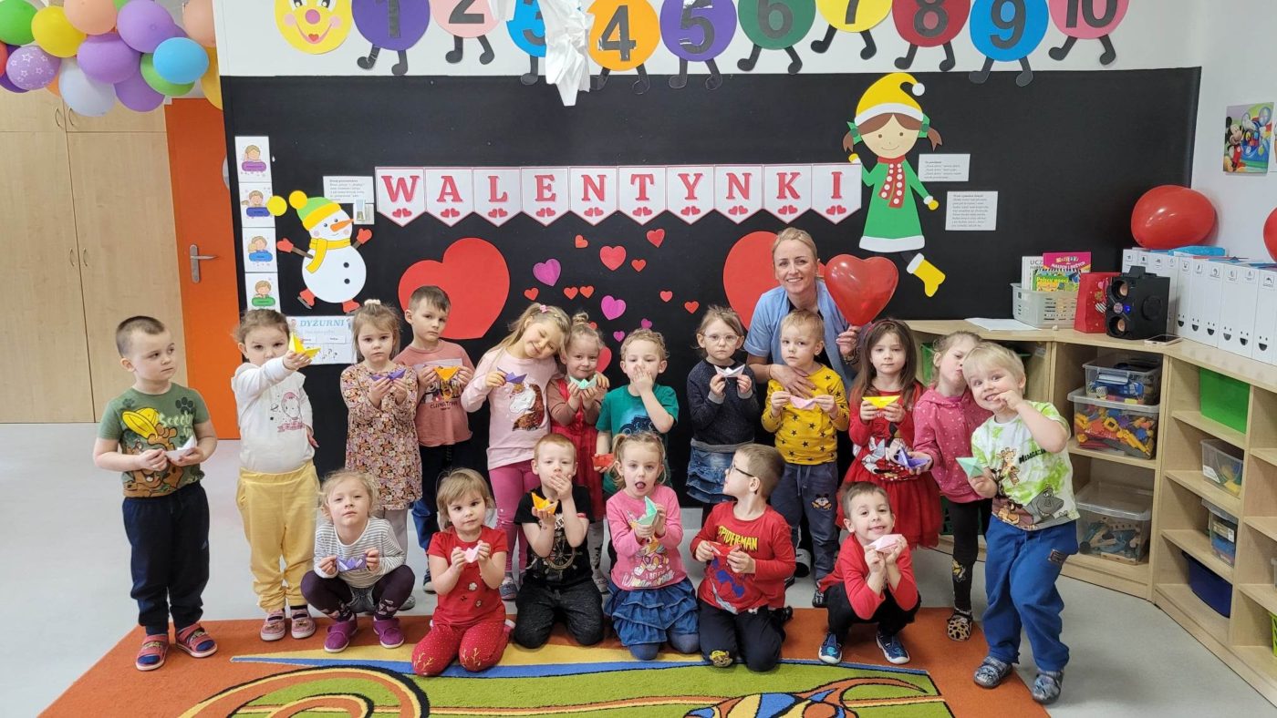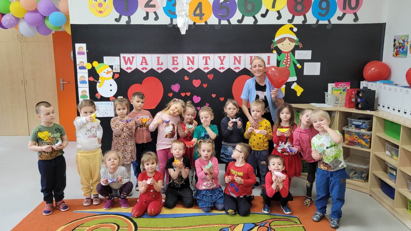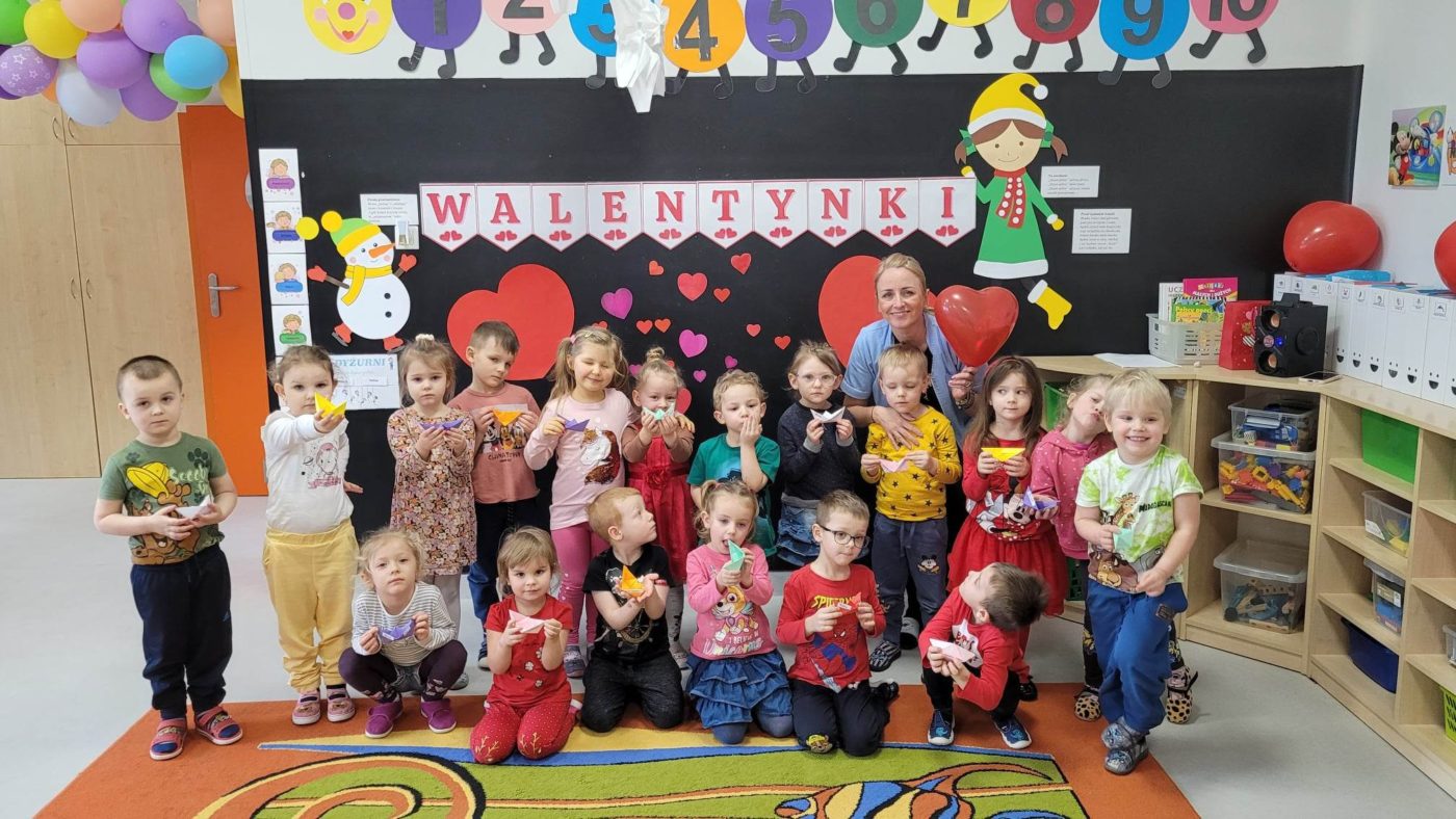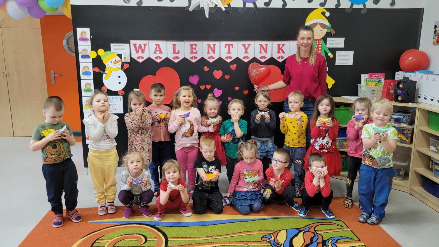 We wtorek 14 lutego obchodziliśmy w naszym przedszkolu Walentynki. W tym dniu dzieci uczestniczyły w Walentynkowej lekcji ciszy , a dzień przepełniony był atrakcjami oraz pogadankami na temat znaczenia miłości i przyjaźni w naszym życiu. Dzieci dowiedziały się jak ważne jest okazywanie uczuć przyjaźni i sympatii. Wyklejały, rysowały i kolorowały serduszka, wykonały też wspólną prace plastyczną. Dzień upłynął nam wszystkim w bardzo miłej atmosferze!