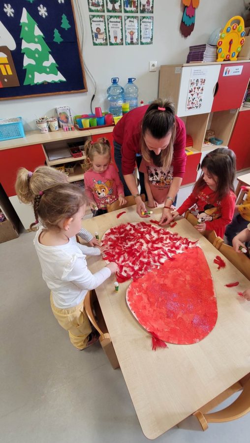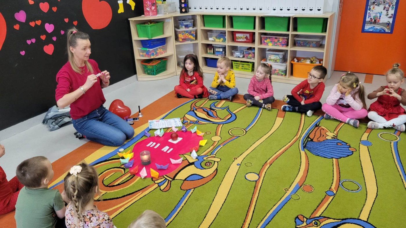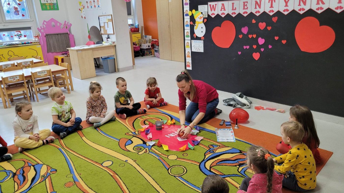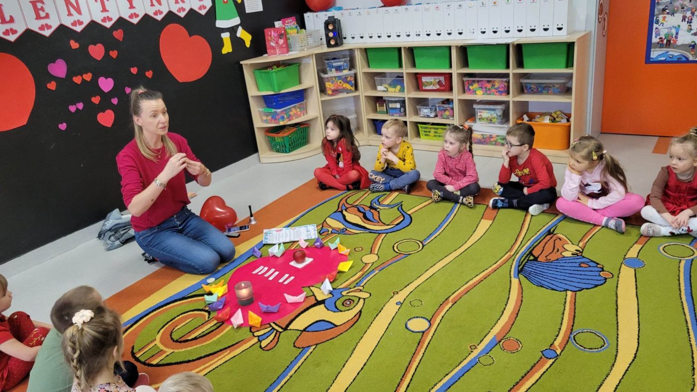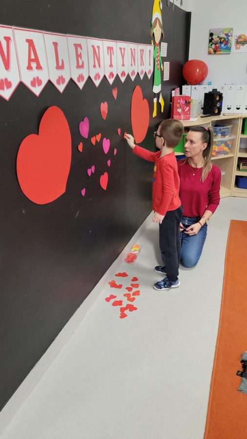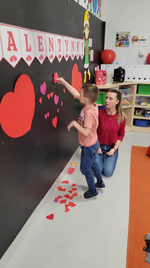 We wtorek 14 lutego obchodziliśmy w naszym przedszkolu Walentynki. W tym dniu dzieci uczestniczyły w Walentynkowej lekcji ciszy , a dzień przepełniony był atrakcjami oraz pogadankami na temat znaczenia miłości i przyjaźni w naszym życiu. Dzieci dowiedziały się jak ważne jest okazywanie uczuć przyjaźni i sympatii. Wyklejały, rysowały i kolorowały serduszka, wykonały też wspólną prace plastyczną. Dzień upłynął nam wszystkim w bardzo miłej atmosferze!