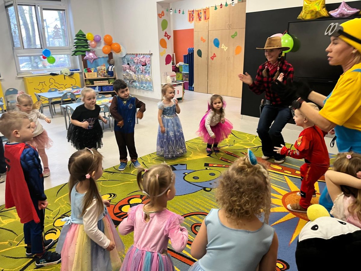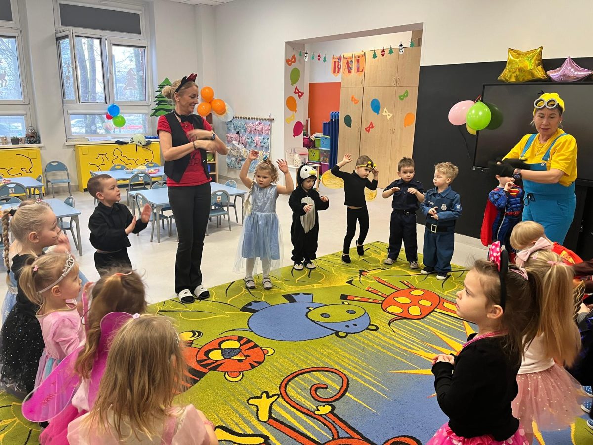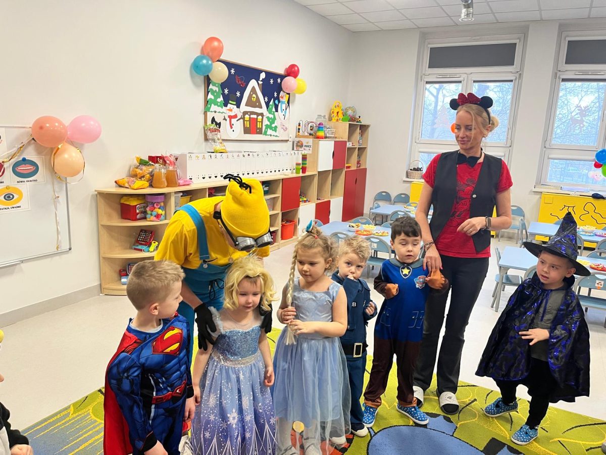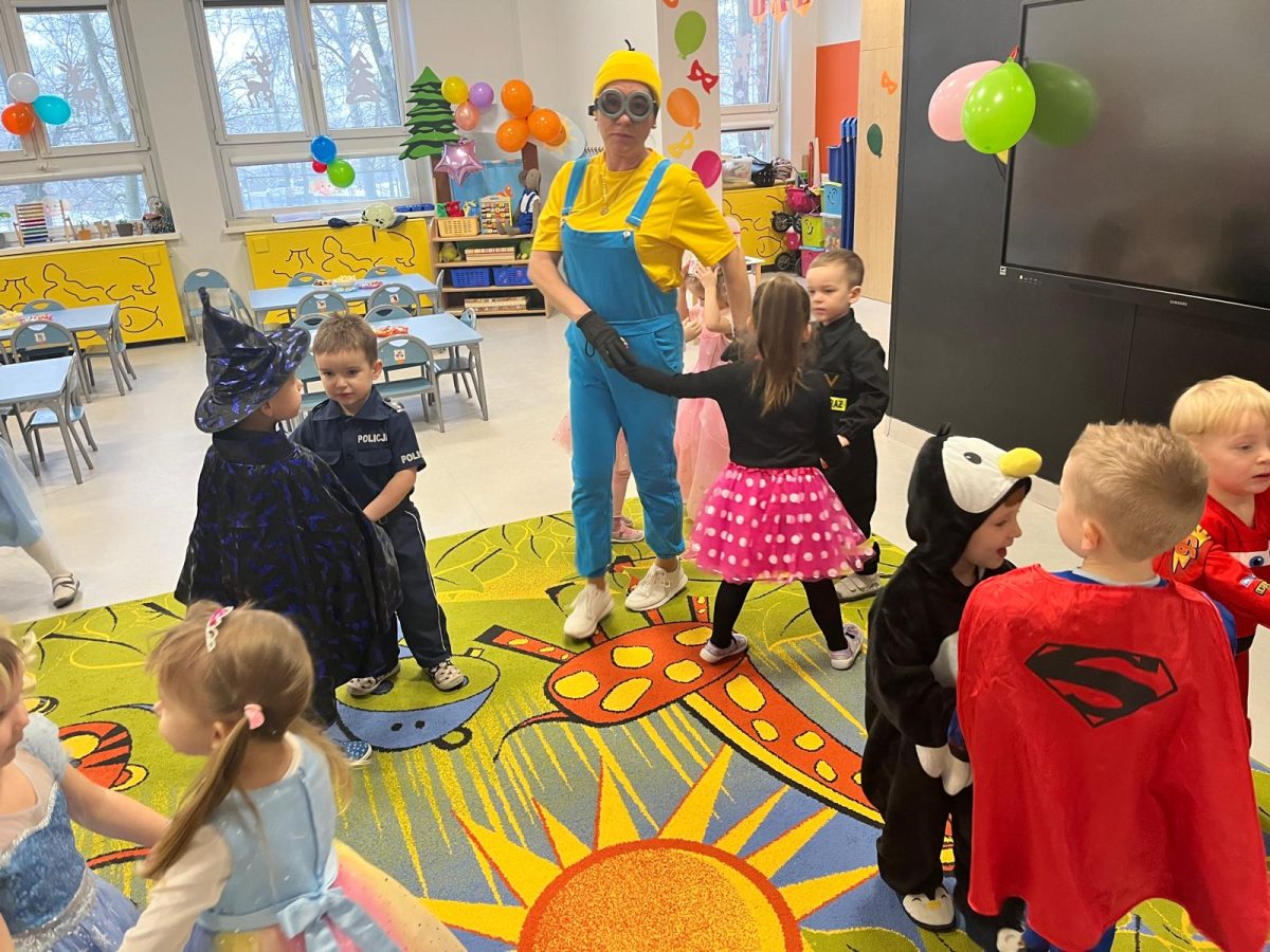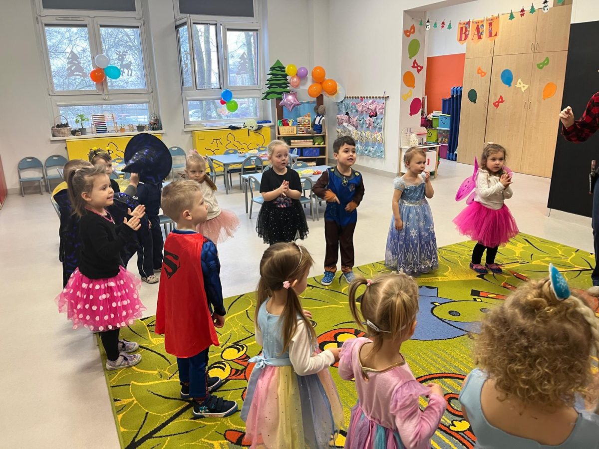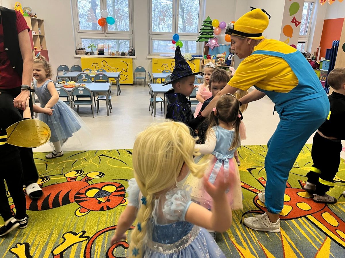 W piątek w naszym przedszkolu odbył się radosny bal karnawałowy. Tego dnia sala wypełniła się kolorowymi postaciami – były księżniczki, superbohaterowie, zwierzątka i bajkowe postacie. Nie zabrakło wesołych tańców i zabaw przy muzyce, podczas których dzieci z dumą prezentowały swoje stroje. Przedszkolaki bawiły się znakomicie, uczestnicząc w różnych zabawach ruchowych i tanecznych. Po szalonej zabawie czekał na dzieci poczęstunek, który pozwolił wszystkim nabrać sił do dalszej zabawy. Bal karnawałowy dostarczył dzieciom wielu radosnych przeżyć, uśmiechów i niezapomnianych wrażeń. To był dzień pełen kolorów, muzyki i dobrej zabawy! 🎉👑🦸♀️