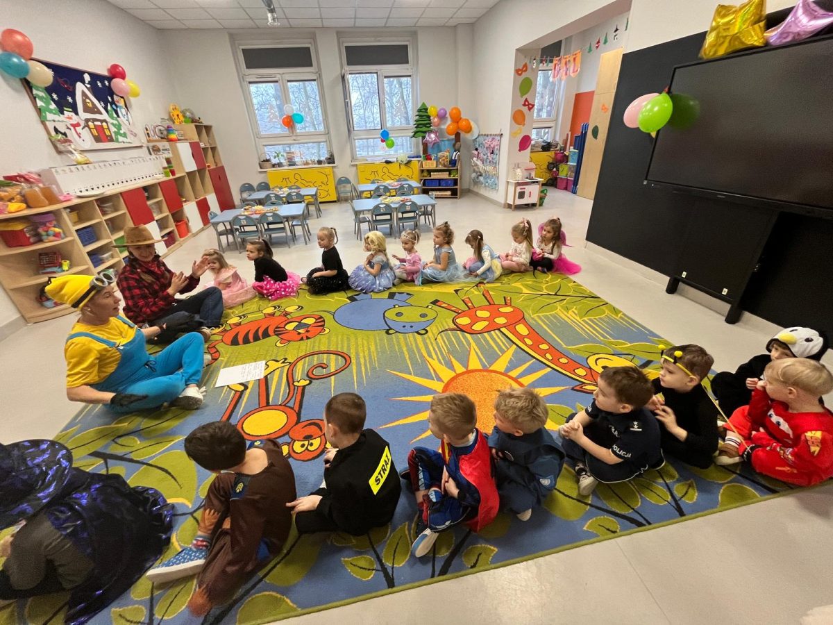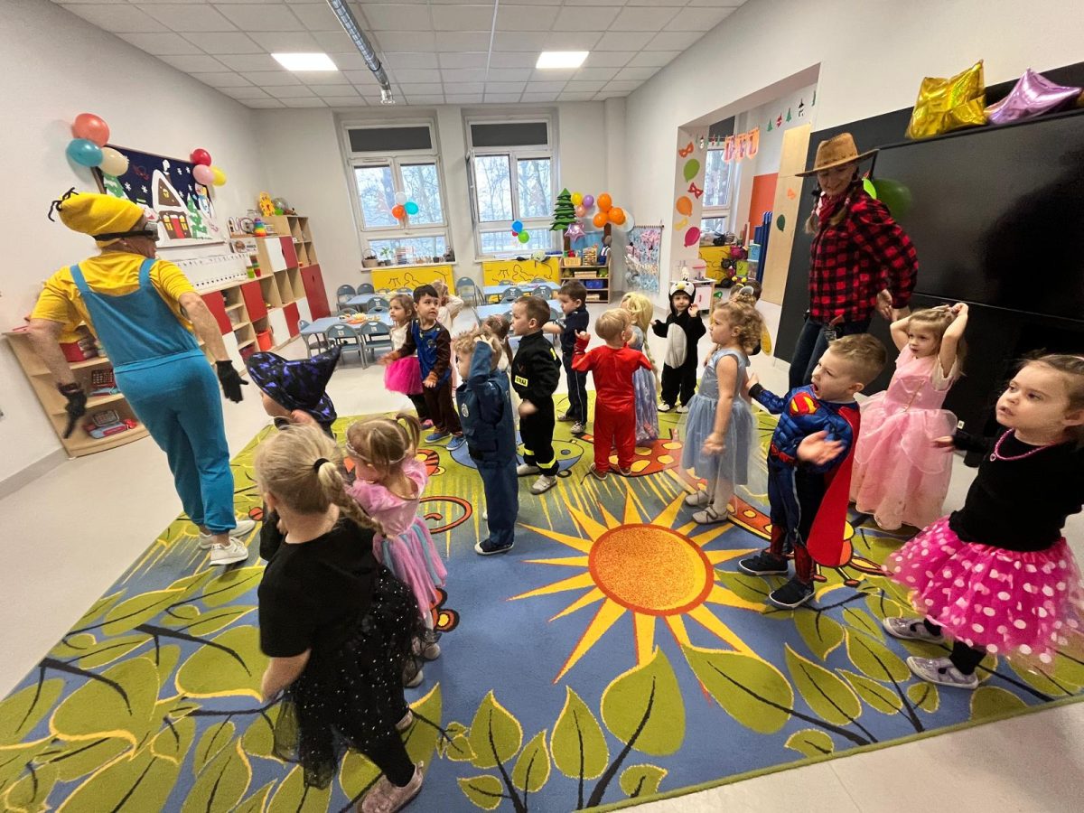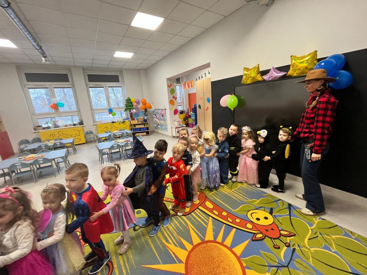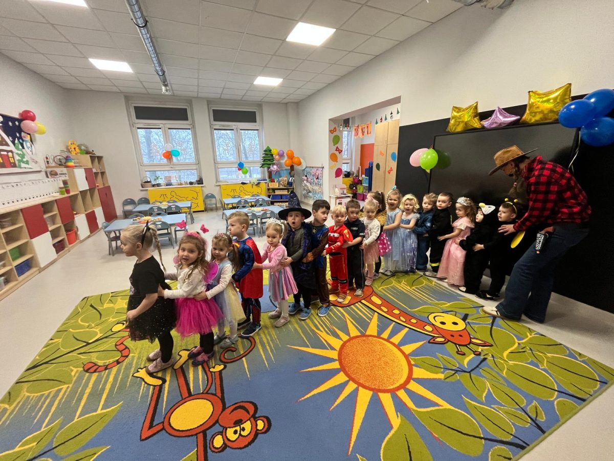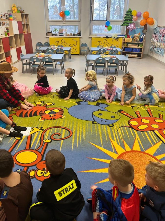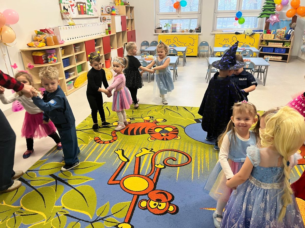 W piątek w naszym przedszkolu odbył się radosny bal karnawałowy. Tego dnia sala wypełniła się kolorowymi postaciami – były księżniczki, superbohaterowie, zwierzątka i bajkowe postacie. Nie zabrakło wesołych tańców i zabaw przy muzyce, podczas których dzieci z dumą prezentowały swoje stroje. Przedszkolaki bawiły się znakomicie, uczestnicząc w różnych zabawach ruchowych i tanecznych. Po szalonej zabawie czekał na dzieci poczęstunek, który pozwolił wszystkim nabrać sił do dalszej zabawy. Bal karnawałowy dostarczył dzieciom wielu radosnych przeżyć, uśmiechów i niezapomnianych wrażeń. To był dzień pełen kolorów, muzyki i dobrej zabawy! 🎉👑🦸♀️