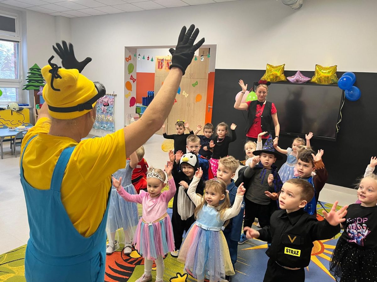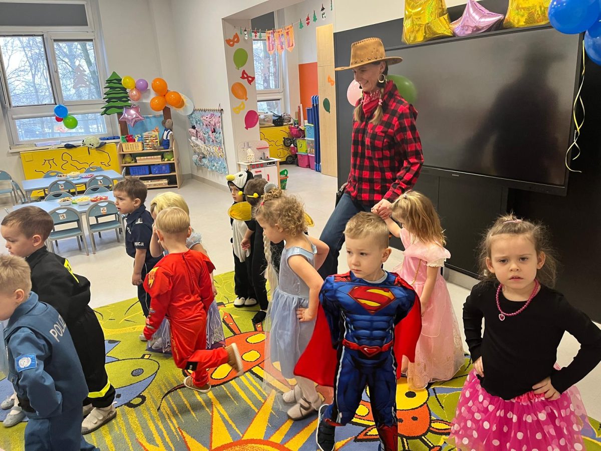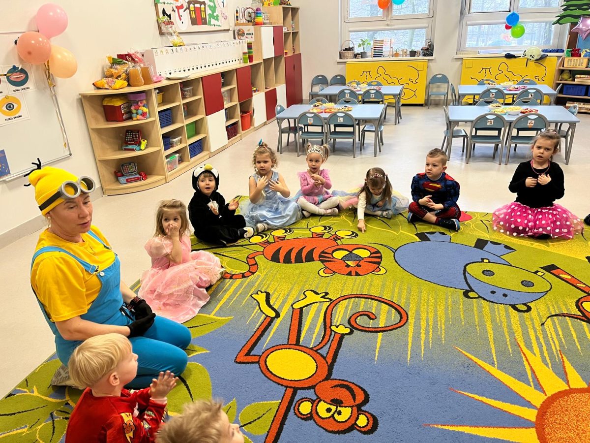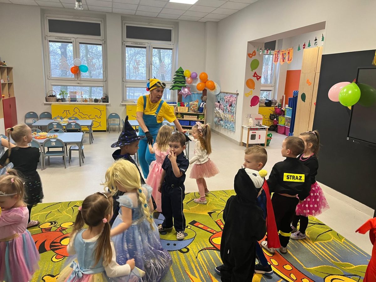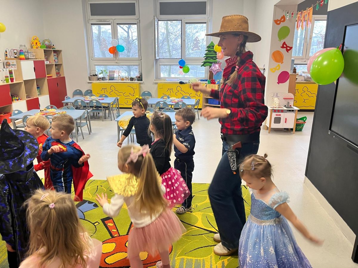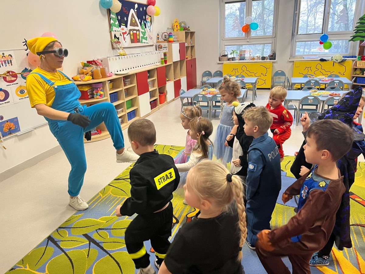 W piątek w naszym przedszkolu odbył się radosny bal karnawałowy. Tego dnia sala wypełniła się kolorowymi postaciami – były księżniczki, superbohaterowie, zwierzątka i bajkowe postacie. Nie zabrakło wesołych tańców i zabaw przy muzyce, podczas których dzieci z dumą prezentowały swoje stroje. Przedszkolaki bawiły się znakomicie, uczestnicząc w różnych zabawach ruchowych i tanecznych. Po szalonej zabawie czekał na dzieci poczęstunek, który pozwolił wszystkim nabrać sił do dalszej zabawy. Bal karnawałowy dostarczył dzieciom wielu radosnych przeżyć, uśmiechów i niezapomnianych wrażeń. To był dzień pełen kolorów, muzyki i dobrej zabawy! 🎉👑🦸♀️