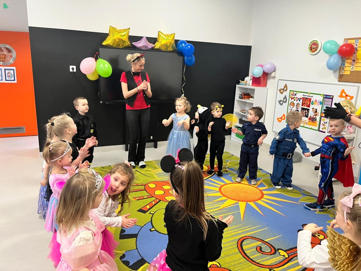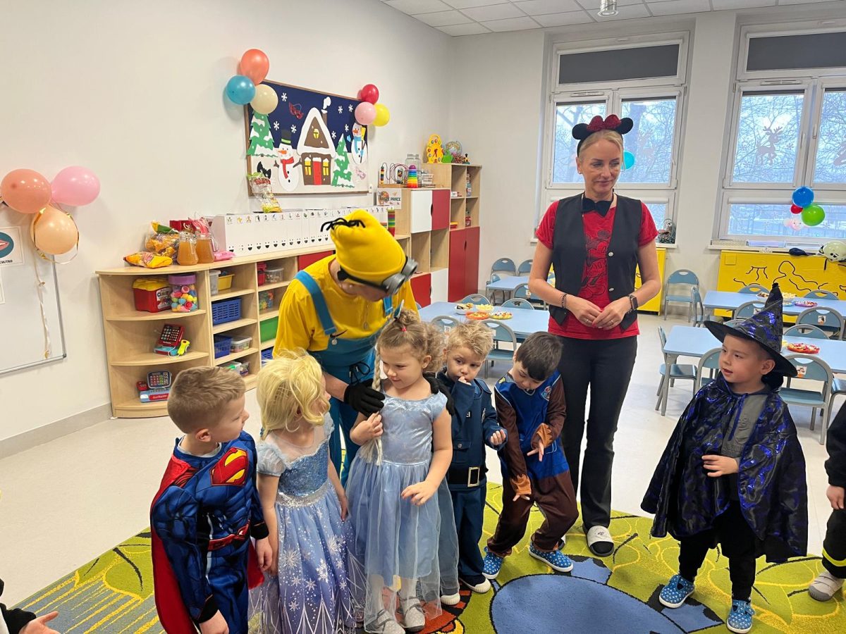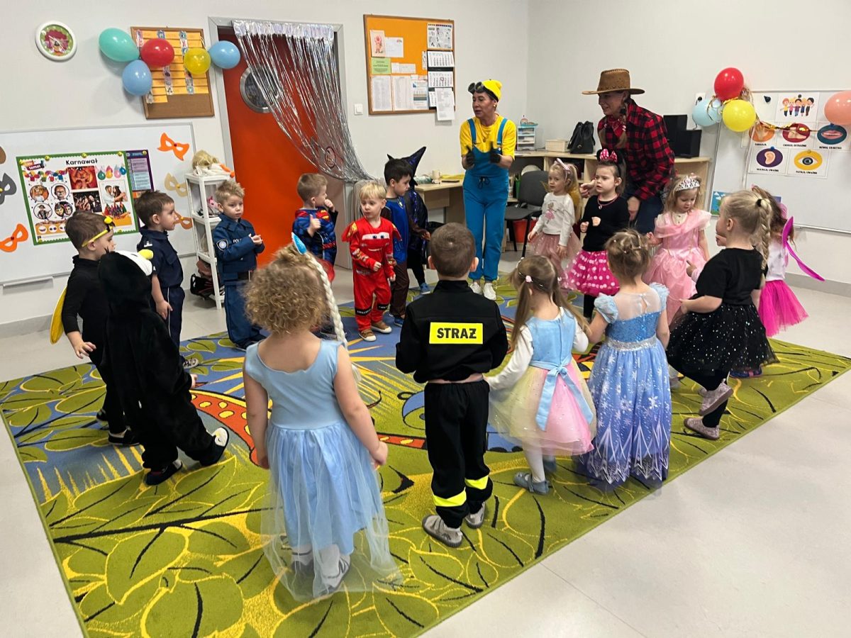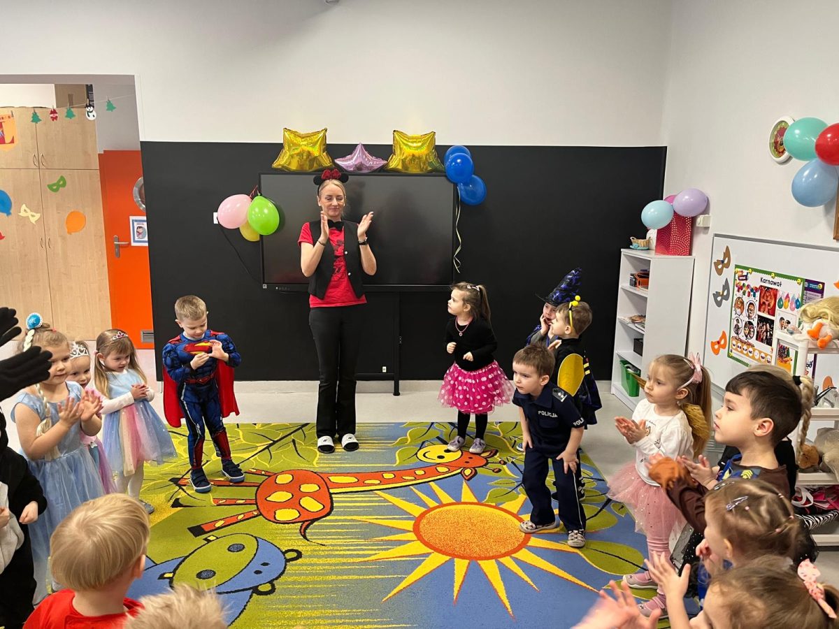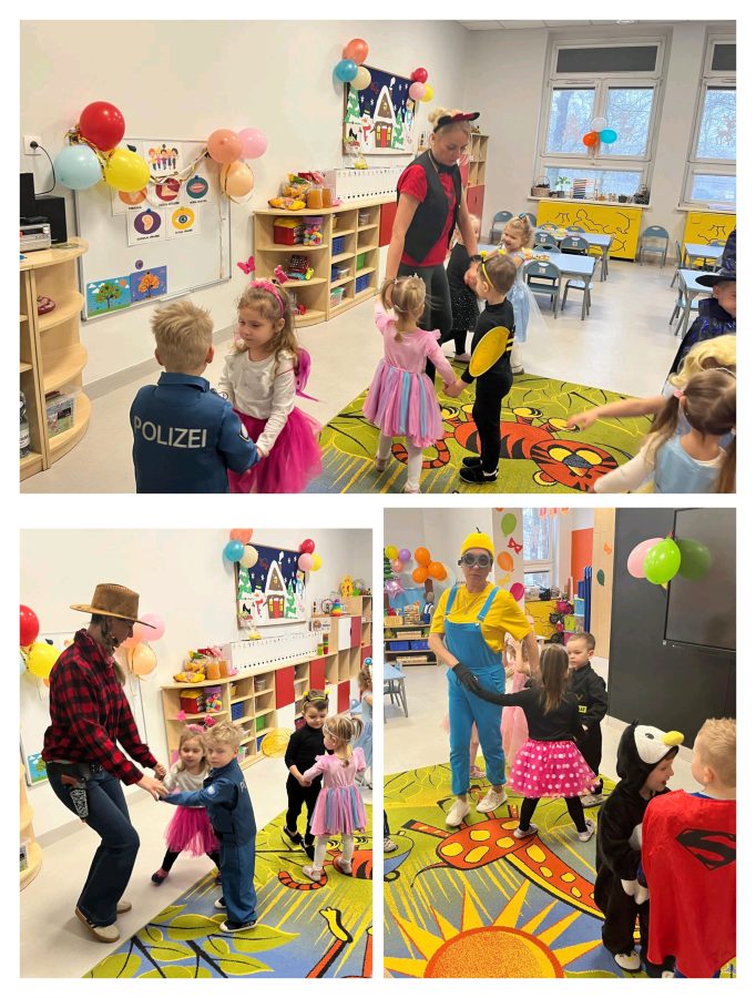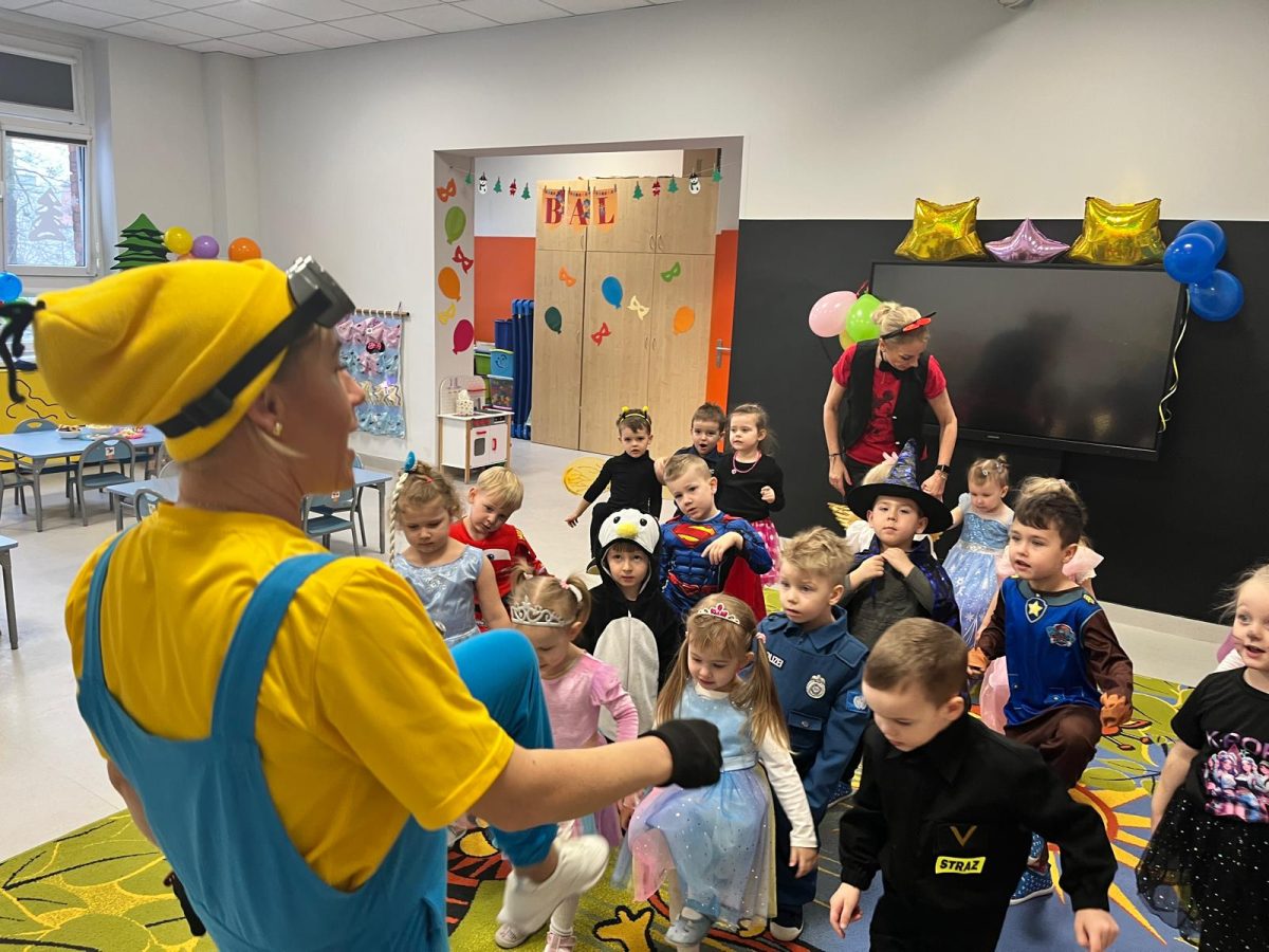 W piątek w naszym przedszkolu odbył się radosny bal karnawałowy. Tego dnia sala wypełniła się kolorowymi postaciami – były księżniczki, superbohaterowie, zwierzątka i bajkowe postacie. Nie zabrakło wesołych tańców i zabaw przy muzyce, podczas których dzieci z dumą prezentowały swoje stroje. Przedszkolaki bawiły się znakomicie, uczestnicząc w różnych zabawach ruchowych i tanecznych. Po szalonej zabawie czekał na dzieci poczęstunek, który pozwolił wszystkim nabrać sił do dalszej zabawy. Bal karnawałowy dostarczył dzieciom wielu radosnych przeżyć, uśmiechów i niezapomnianych wrażeń. To był dzień pełen kolorów, muzyki i dobrej zabawy! 🎉👑🦸♀️