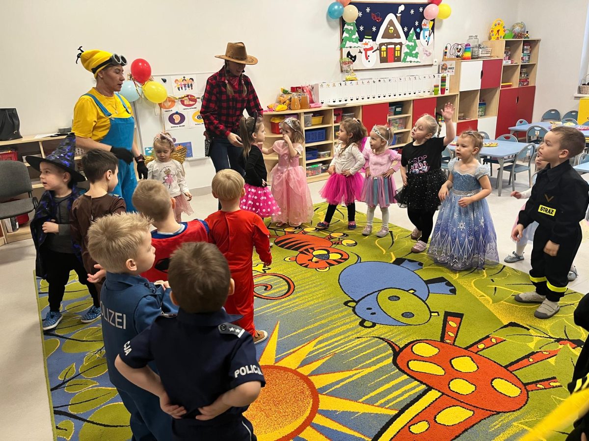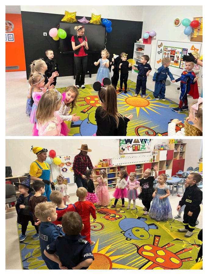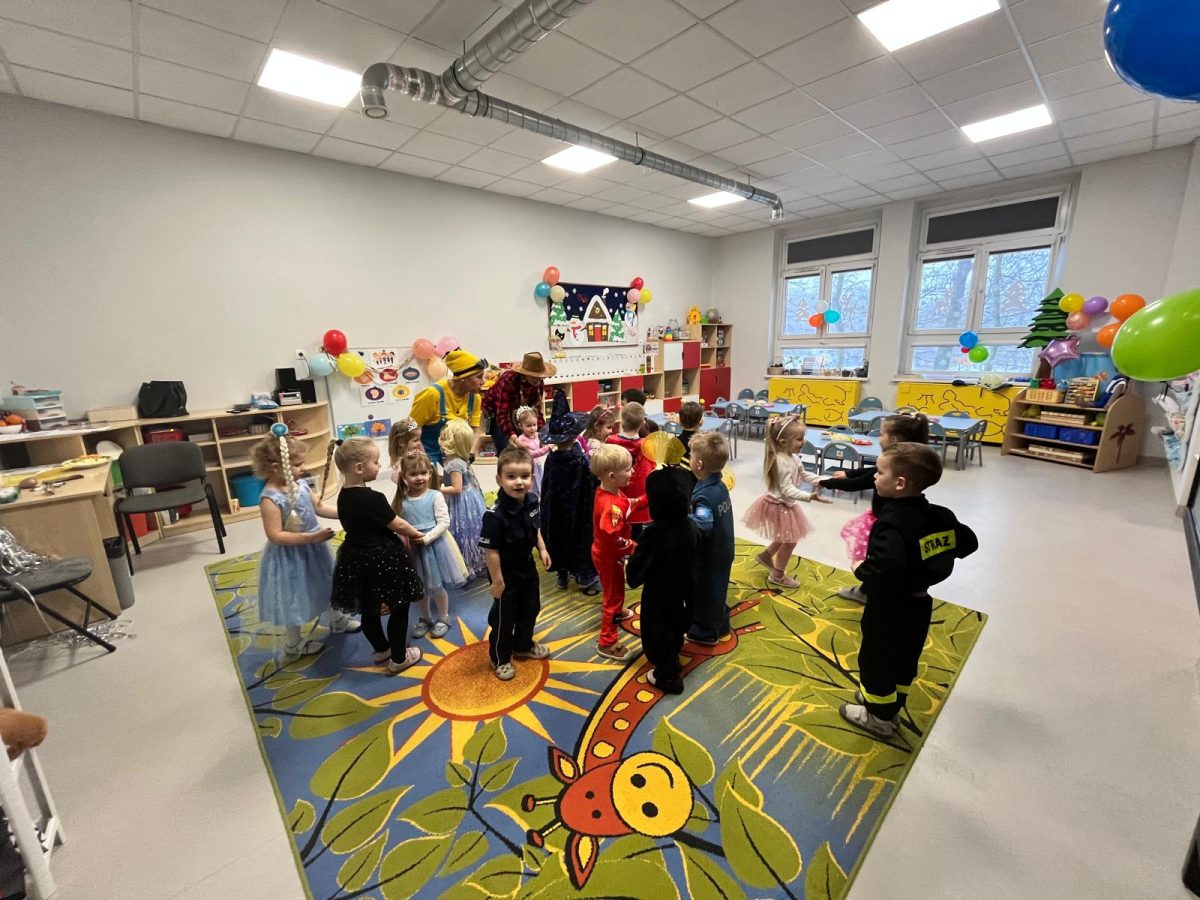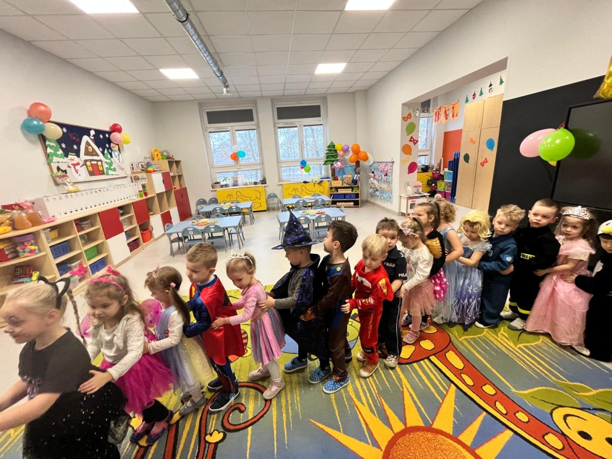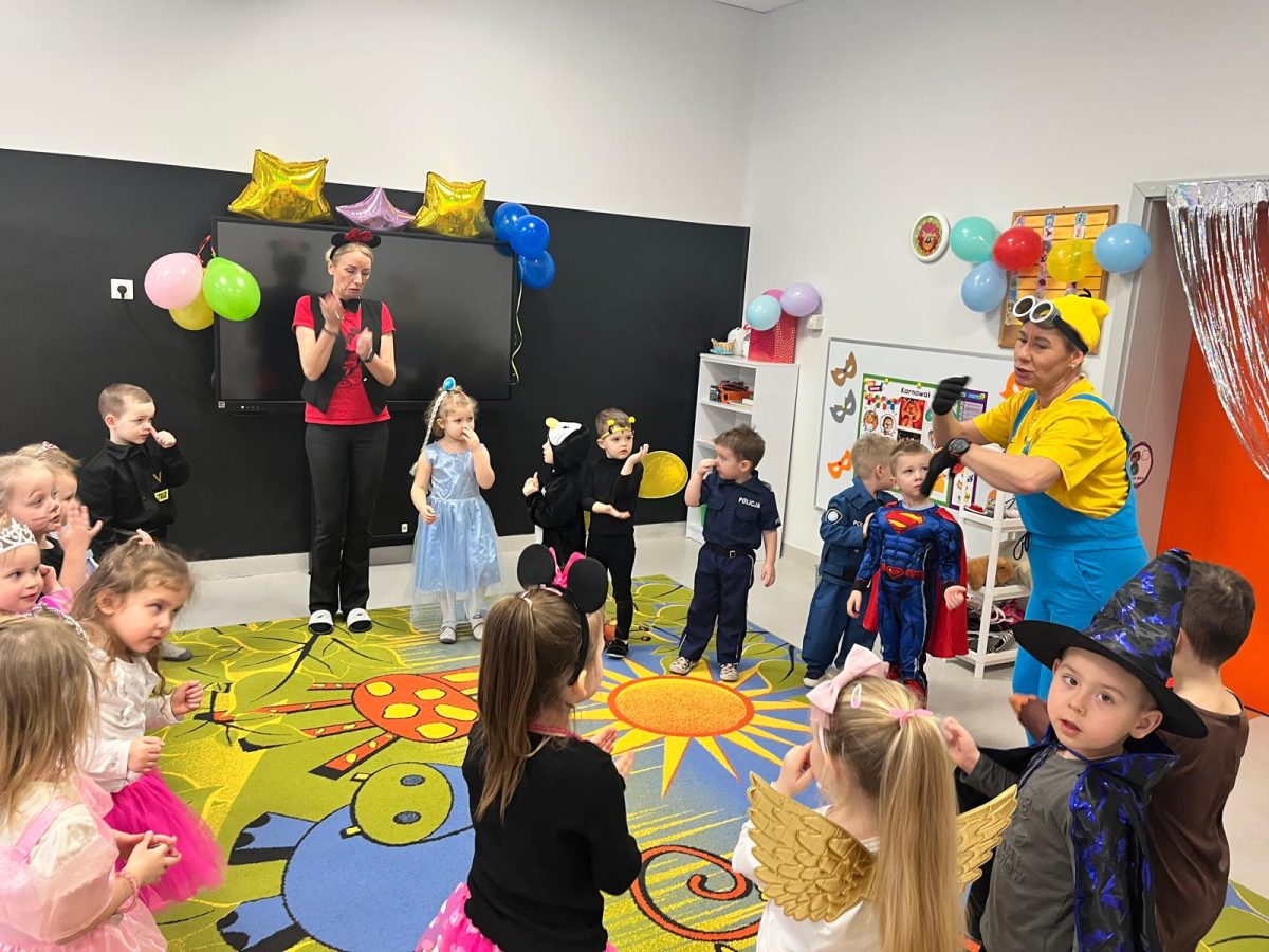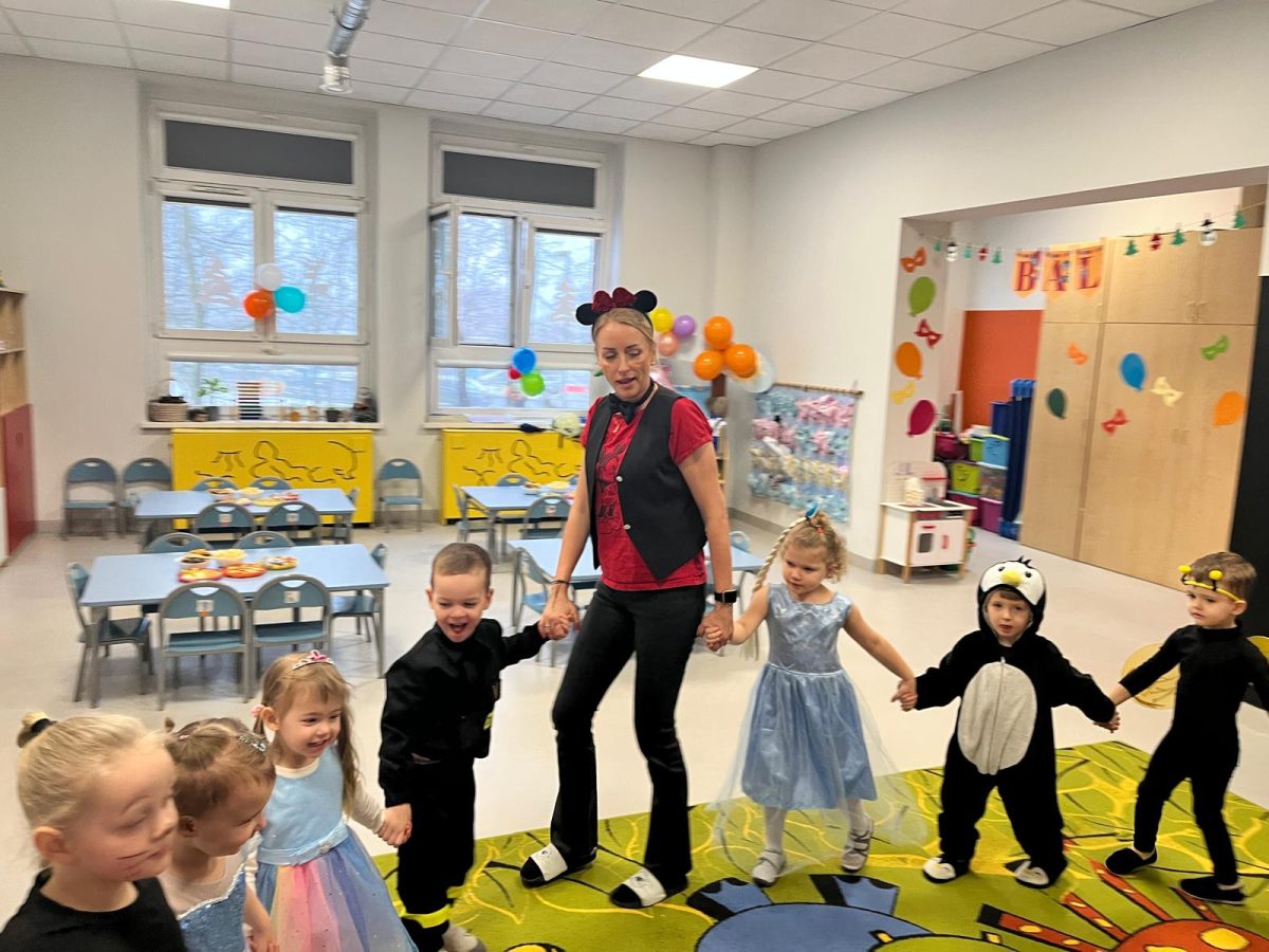 W piątek w naszym przedszkolu odbył się radosny bal karnawałowy. Tego dnia sala wypełniła się kolorowymi postaciami – były księżniczki, superbohaterowie, zwierzątka i bajkowe postacie. Nie zabrakło wesołych tańców i zabaw przy muzyce, podczas których dzieci z dumą prezentowały swoje stroje. Przedszkolaki bawiły się znakomicie, uczestnicząc w różnych zabawach ruchowych i tanecznych. Po szalonej zabawie czekał na dzieci poczęstunek, który pozwolił wszystkim nabrać sił do dalszej zabawy. Bal karnawałowy dostarczył dzieciom wielu radosnych przeżyć, uśmiechów i niezapomnianych wrażeń. To był dzień pełen kolorów, muzyki i dobrej zabawy! 🎉👑🦸♀️