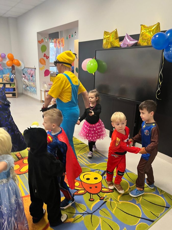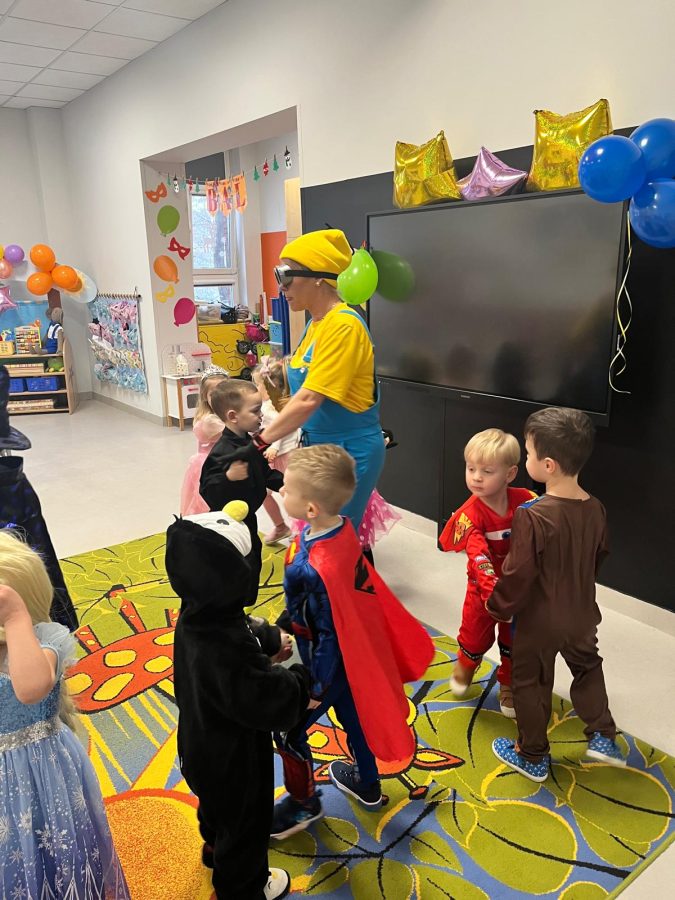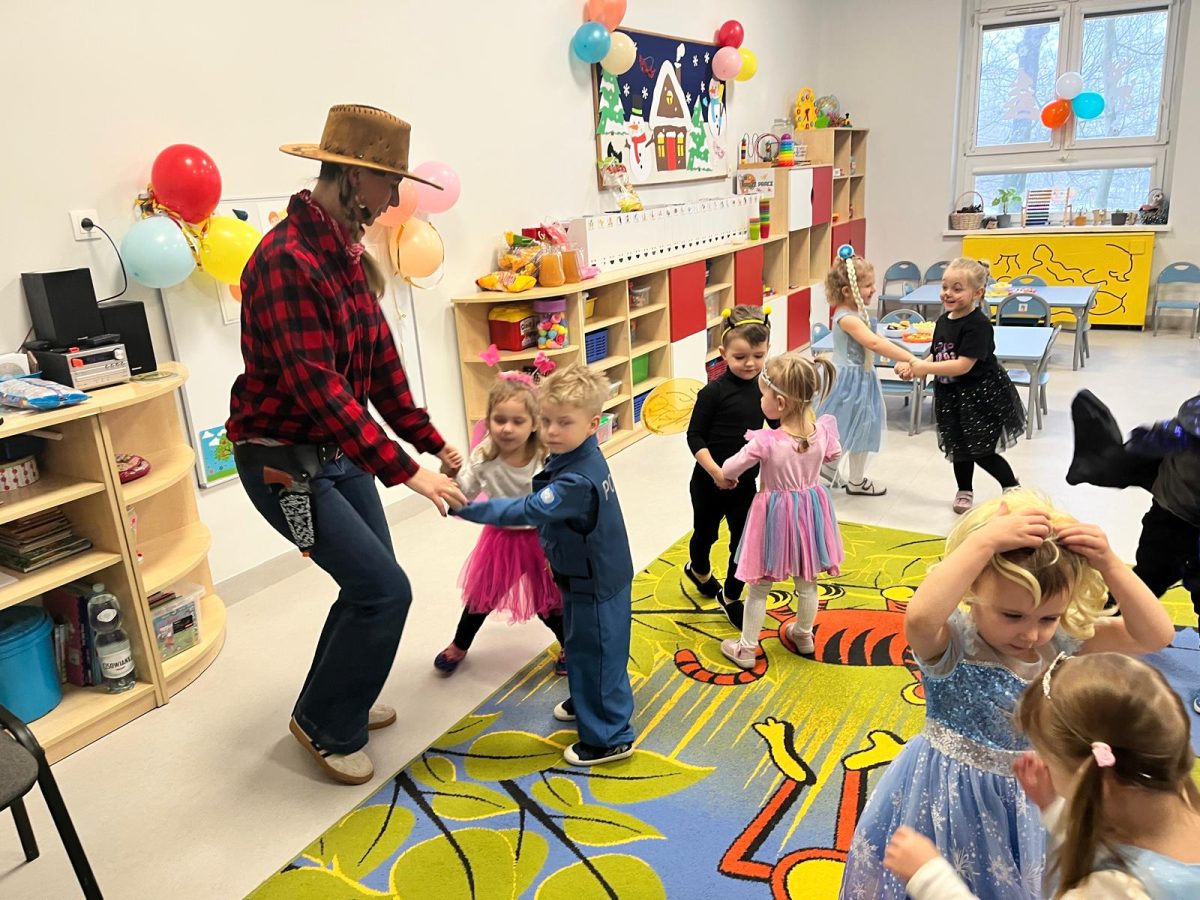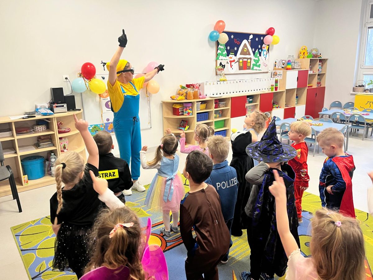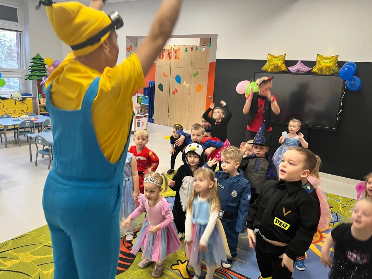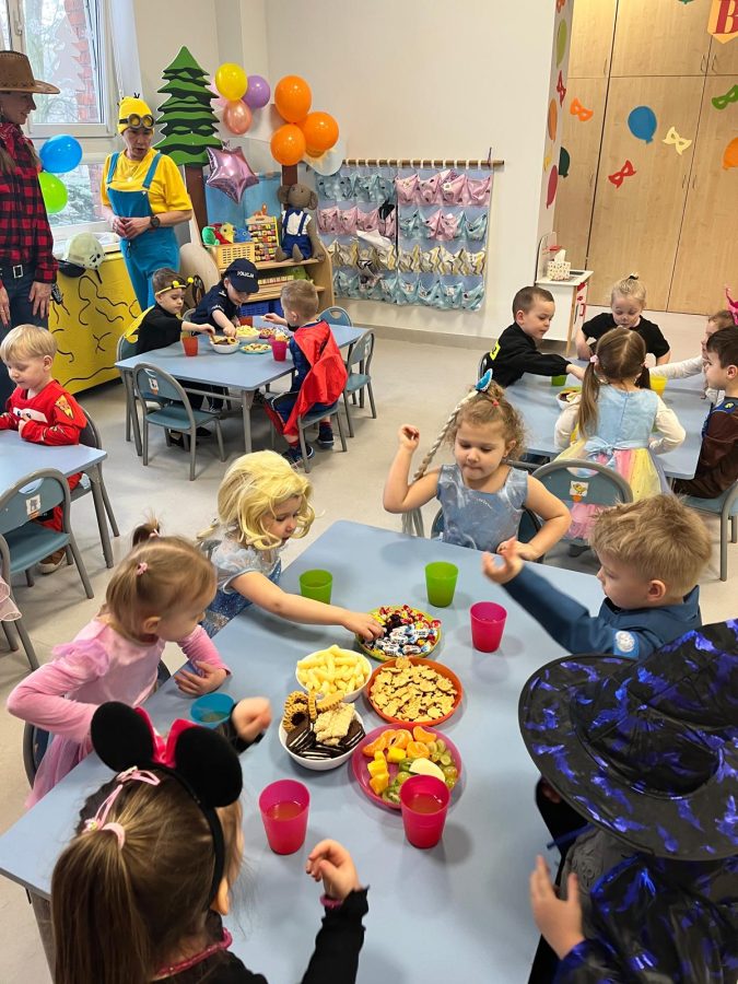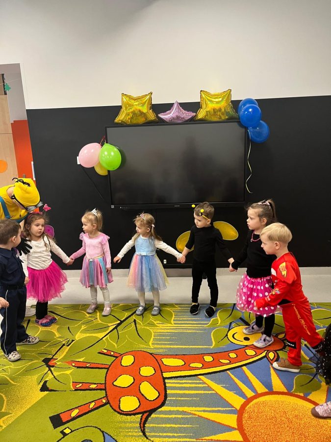 W piątek w naszym przedszkolu odbył się radosny bal karnawałowy. Tego dnia sala wypełniła się kolorowymi postaciami – były księżniczki, superbohaterowie, zwierzątka i bajkowe postacie. Nie zabrakło wesołych tańców i zabaw przy muzyce, podczas których dzieci z dumą prezentowały swoje stroje. Przedszkolaki bawiły się znakomicie, uczestnicząc w różnych zabawach ruchowych i tanecznych. Po szalonej zabawie czekał na dzieci poczęstunek, który pozwolił wszystkim nabrać sił do dalszej zabawy. Bal karnawałowy dostarczył dzieciom wielu radosnych przeżyć, uśmiechów i niezapomnianych wrażeń. To był dzień pełen kolorów, muzyki i dobrej zabawy! 🎉👑🦸♀️