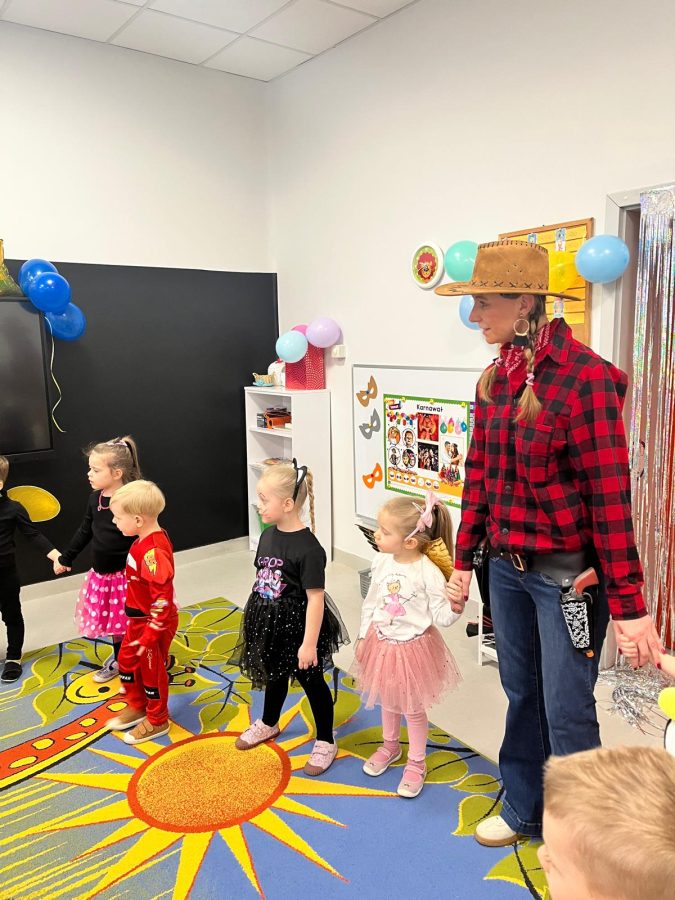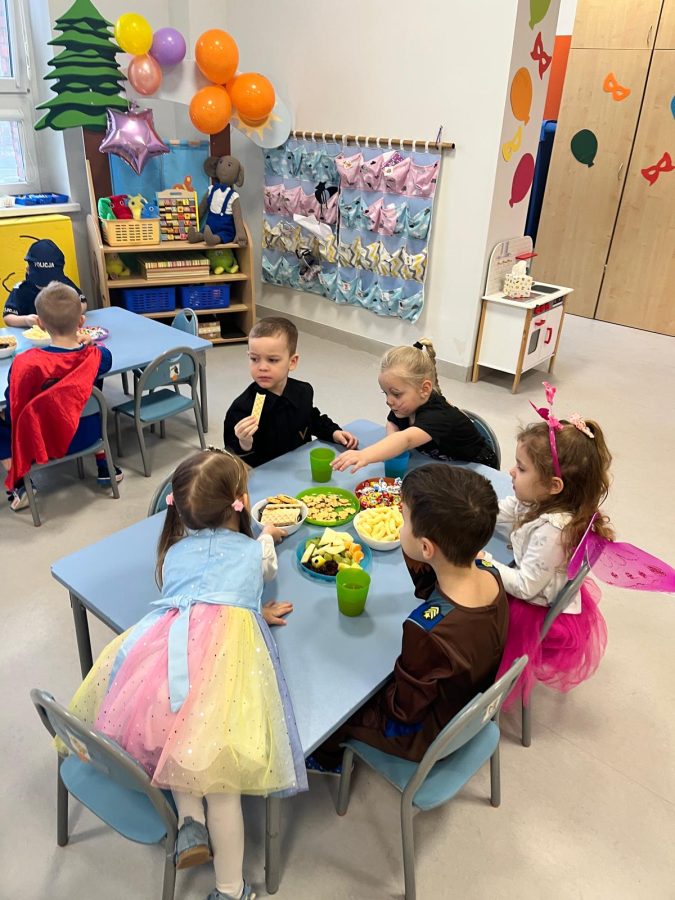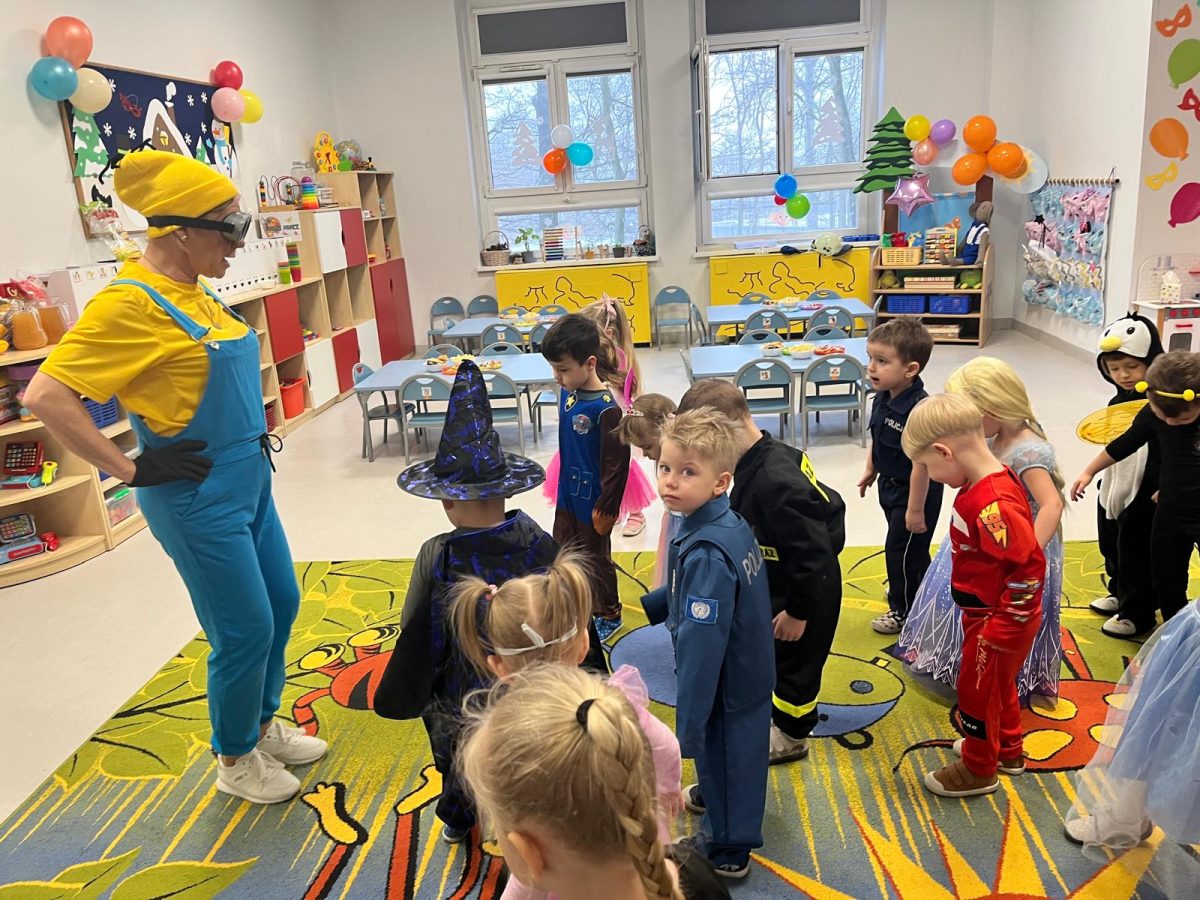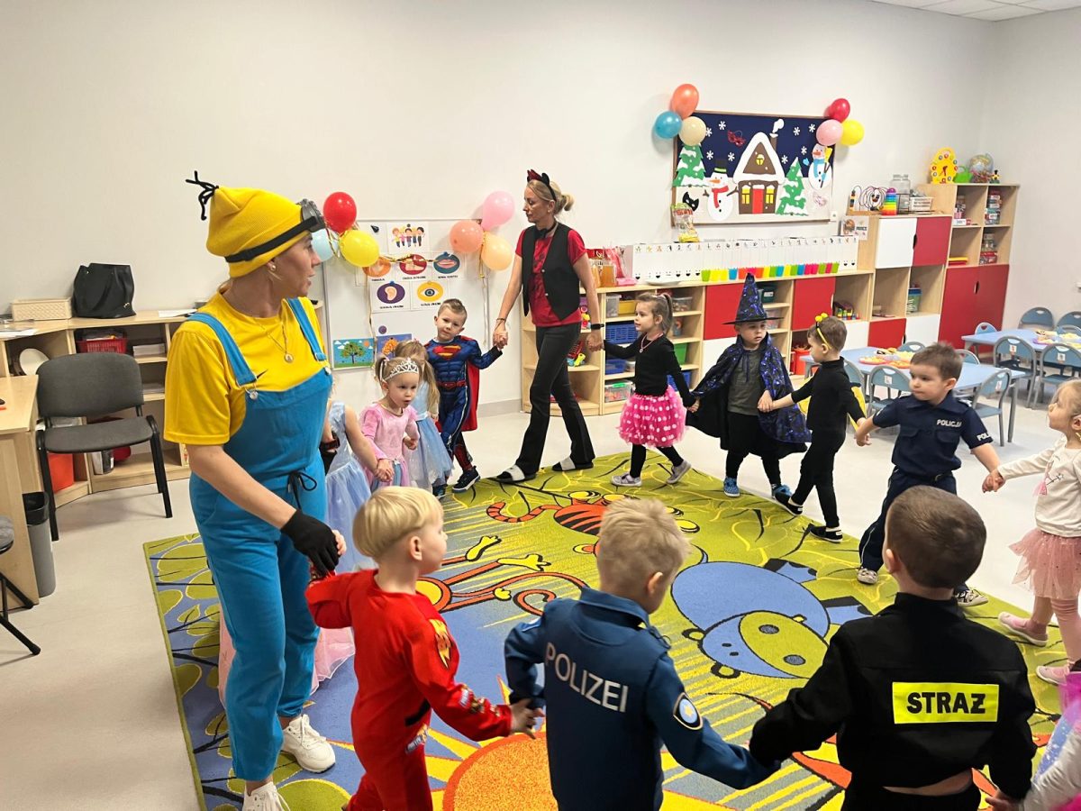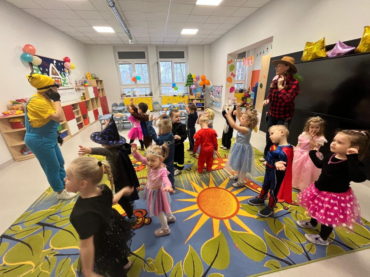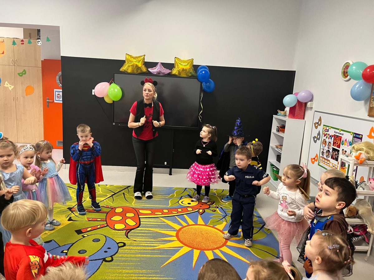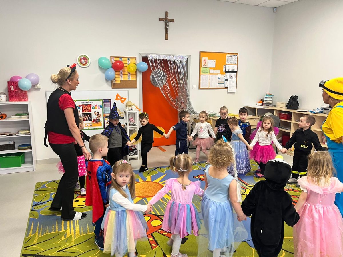 W piątek w naszym przedszkolu odbył się radosny bal karnawałowy. Tego dnia sala wypełniła się kolorowymi postaciami – były księżniczki, superbohaterowie, zwierzątka i bajkowe postacie. Nie zabrakło wesołych tańców i zabaw przy muzyce, podczas których dzieci z dumą prezentowały swoje stroje. Przedszkolaki bawiły się znakomicie, uczestnicząc w różnych zabawach ruchowych i tanecznych. Po szalonej zabawie czekał na dzieci poczęstunek, który pozwolił wszystkim nabrać sił do dalszej zabawy. Bal karnawałowy dostarczył dzieciom wielu radosnych przeżyć, uśmiechów i niezapomnianych wrażeń. To był dzień pełen kolorów, muzyki i dobrej zabawy! 🎉👑🦸♀️