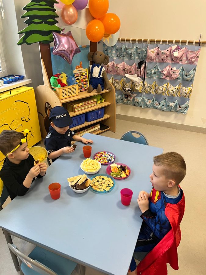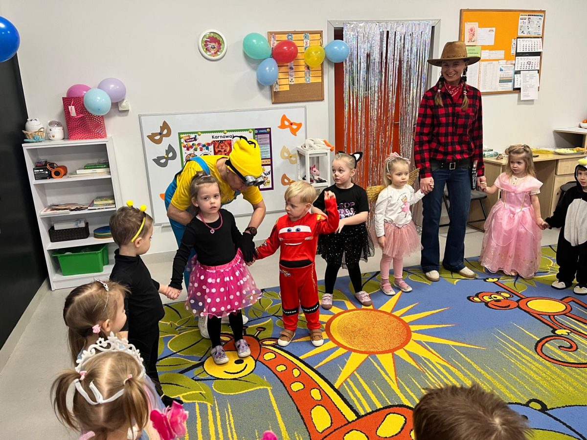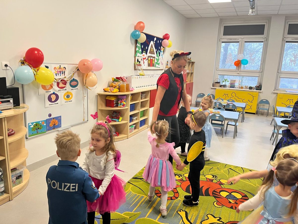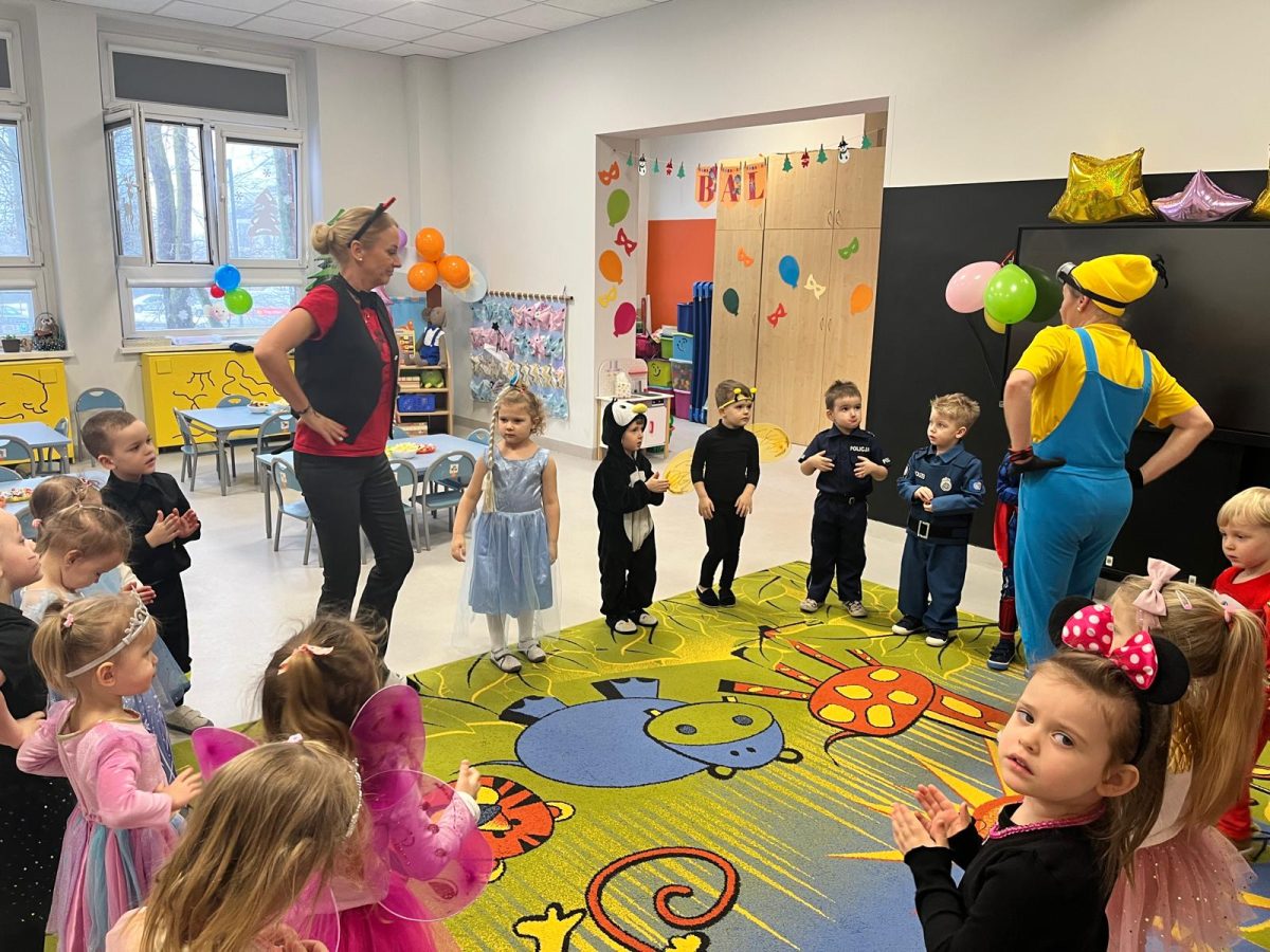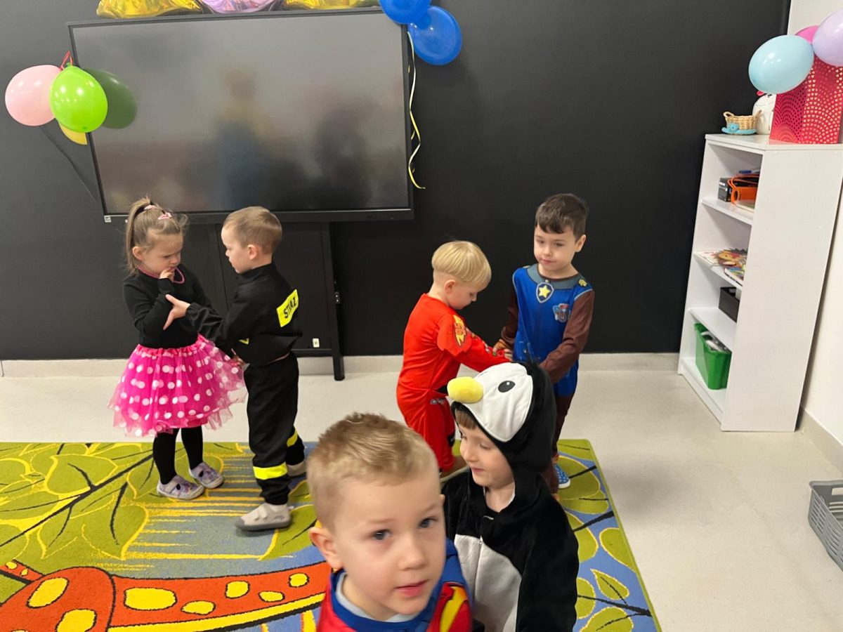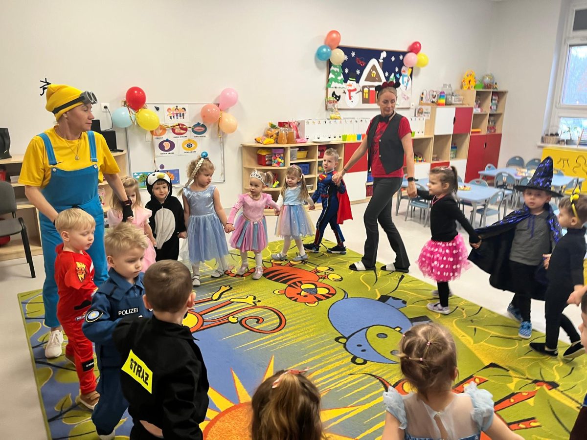 W piątek w naszym przedszkolu odbył się radosny bal karnawałowy. Tego dnia sala wypełniła się kolorowymi postaciami – były księżniczki, superbohaterowie, zwierzątka i bajkowe postacie. Nie zabrakło wesołych tańców i zabaw przy muzyce, podczas których dzieci z dumą prezentowały swoje stroje. Przedszkolaki bawiły się znakomicie, uczestnicząc w różnych zabawach ruchowych i tanecznych. Po szalonej zabawie czekał na dzieci poczęstunek, który pozwolił wszystkim nabrać sił do dalszej zabawy. Bal karnawałowy dostarczył dzieciom wielu radosnych przeżyć, uśmiechów i niezapomnianych wrażeń. To był dzień pełen kolorów, muzyki i dobrej zabawy! 🎉👑🦸♀️