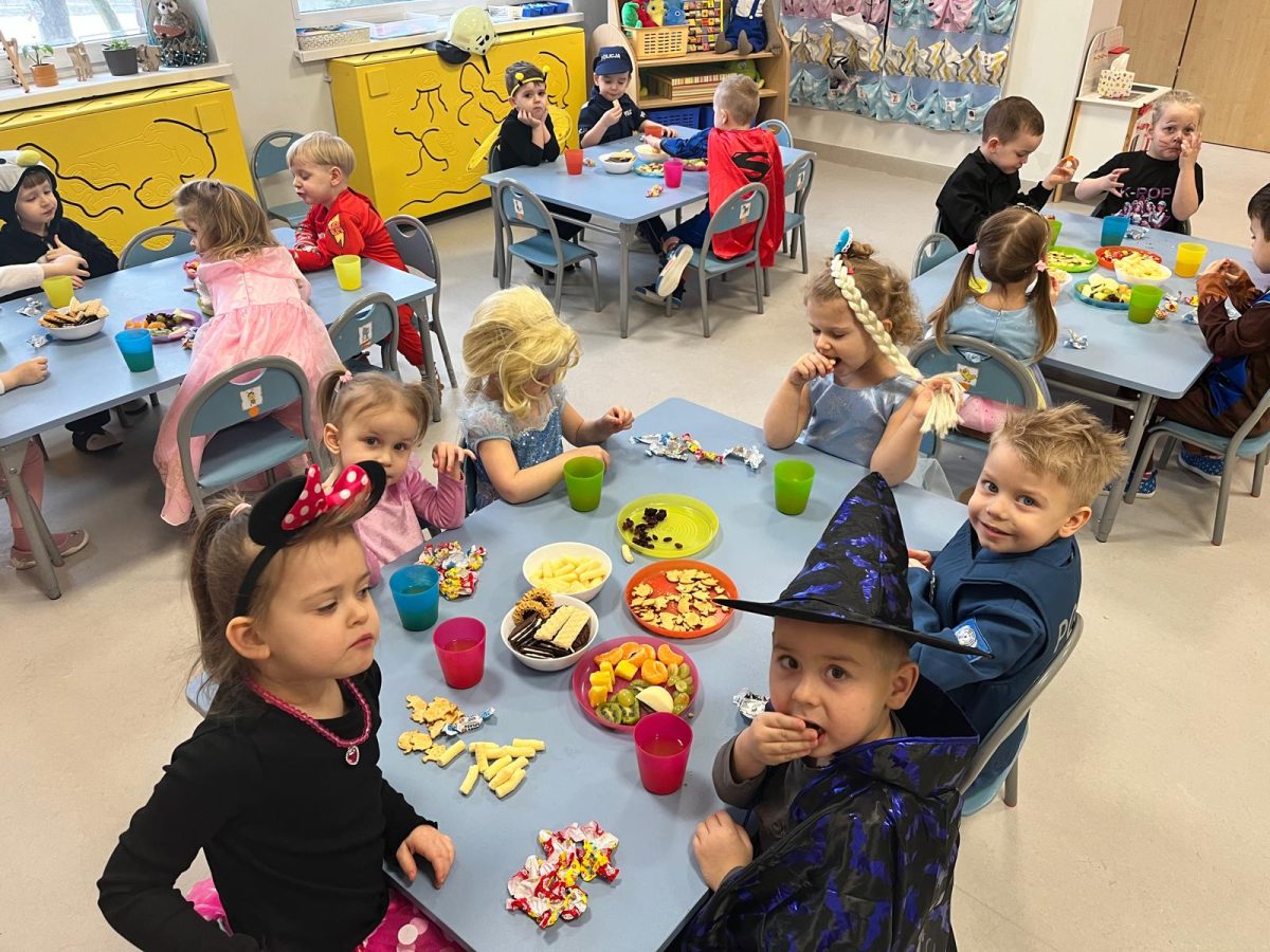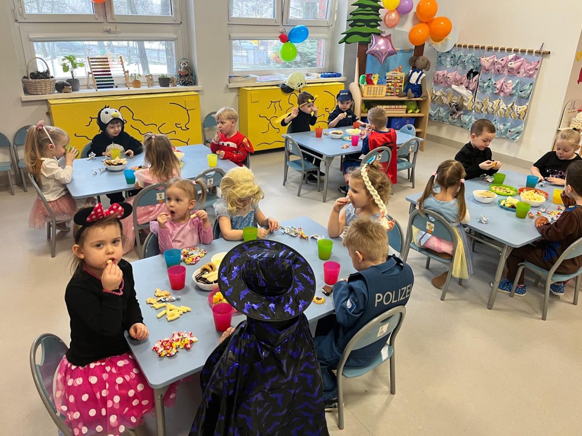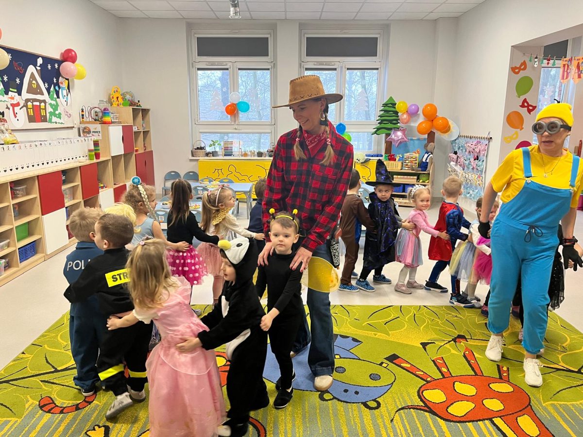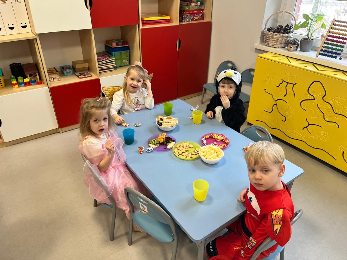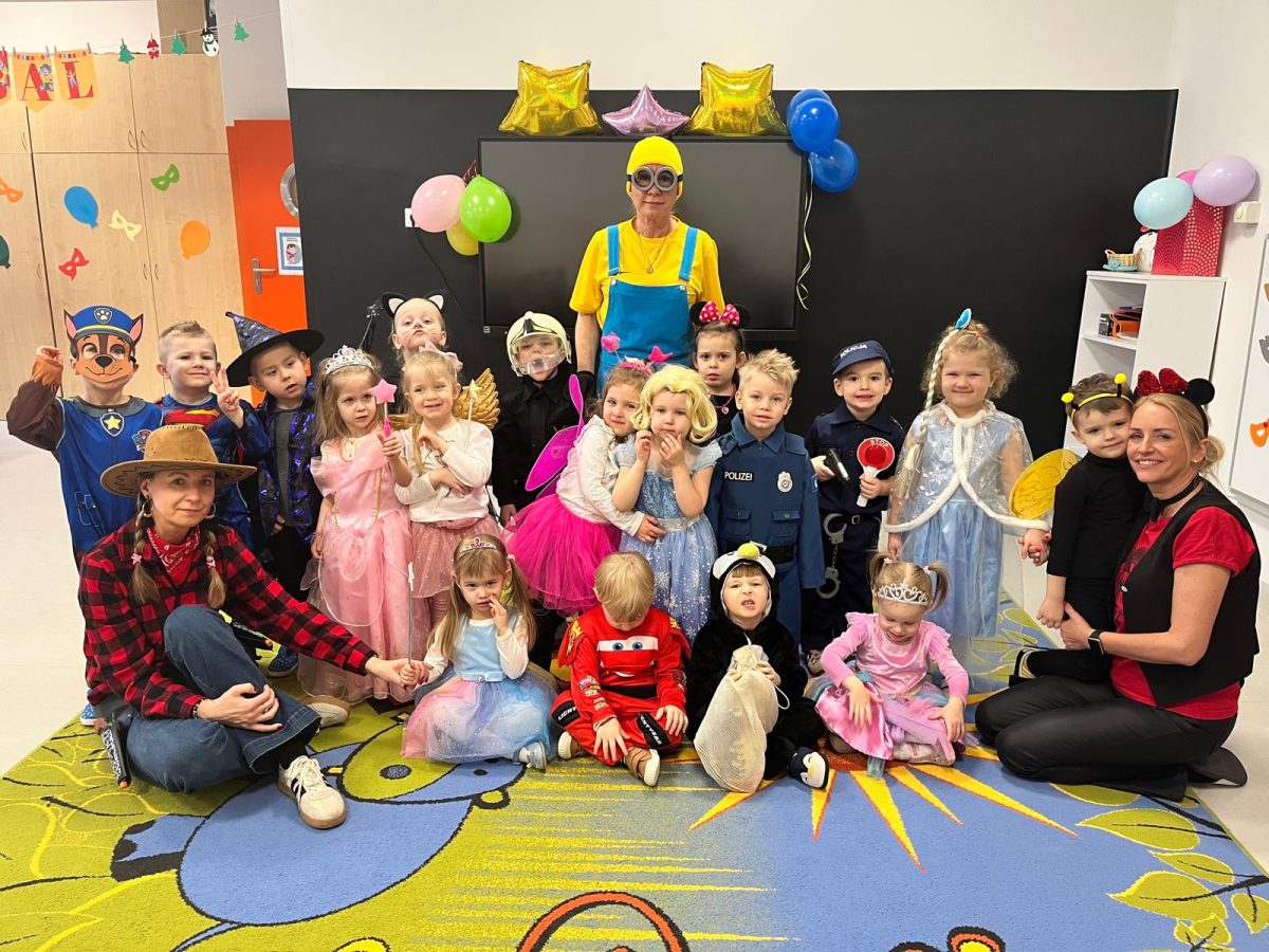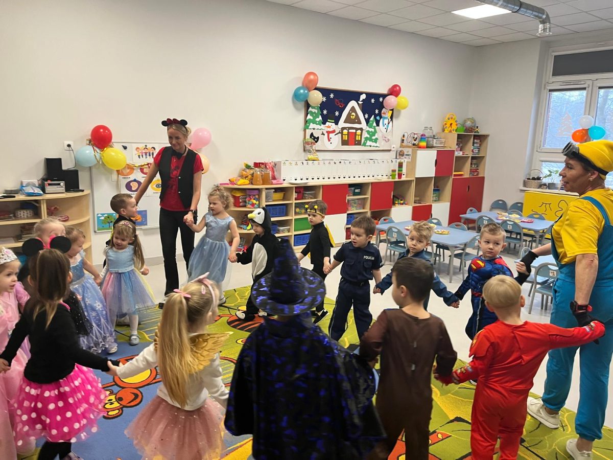 W piątek w naszym przedszkolu odbył się radosny bal karnawałowy. Tego dnia sala wypełniła się kolorowymi postaciami – były księżniczki, superbohaterowie, zwierzątka i bajkowe postacie. Nie zabrakło wesołych tańców i zabaw przy muzyce, podczas których dzieci z dumą prezentowały swoje stroje. Przedszkolaki bawiły się znakomicie, uczestnicząc w różnych zabawach ruchowych i tanecznych. Po szalonej zabawie czekał na dzieci poczęstunek, który pozwolił wszystkim nabrać sił do dalszej zabawy. Bal karnawałowy dostarczył dzieciom wielu radosnych przeżyć, uśmiechów i niezapomnianych wrażeń. To był dzień pełen kolorów, muzyki i dobrej zabawy! 🎉👑🦸♀️