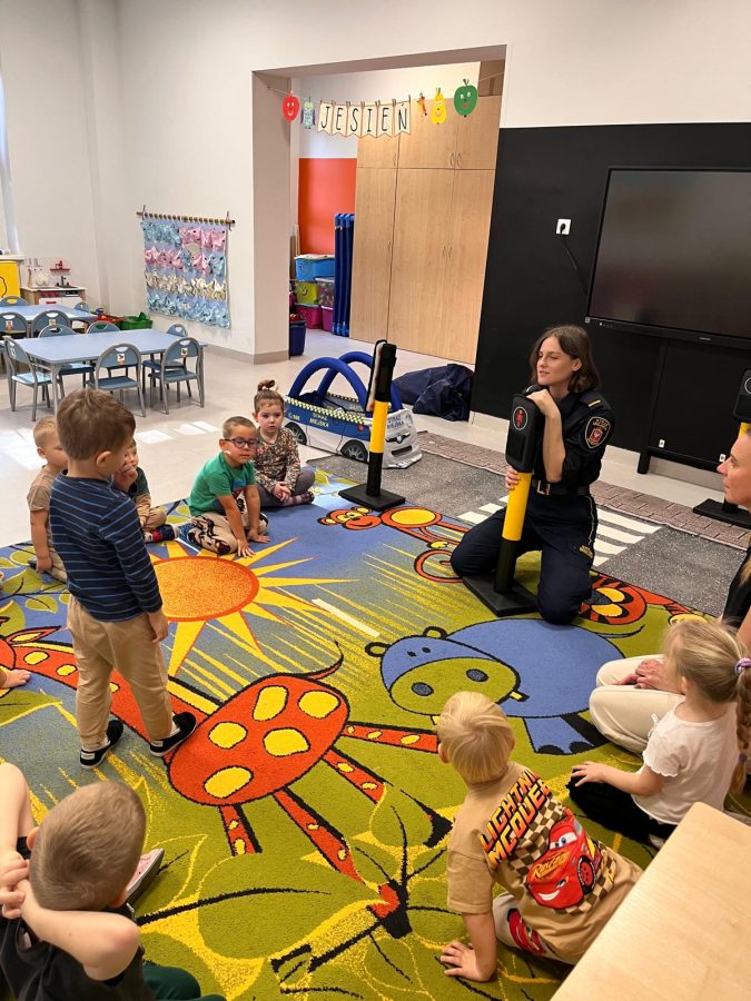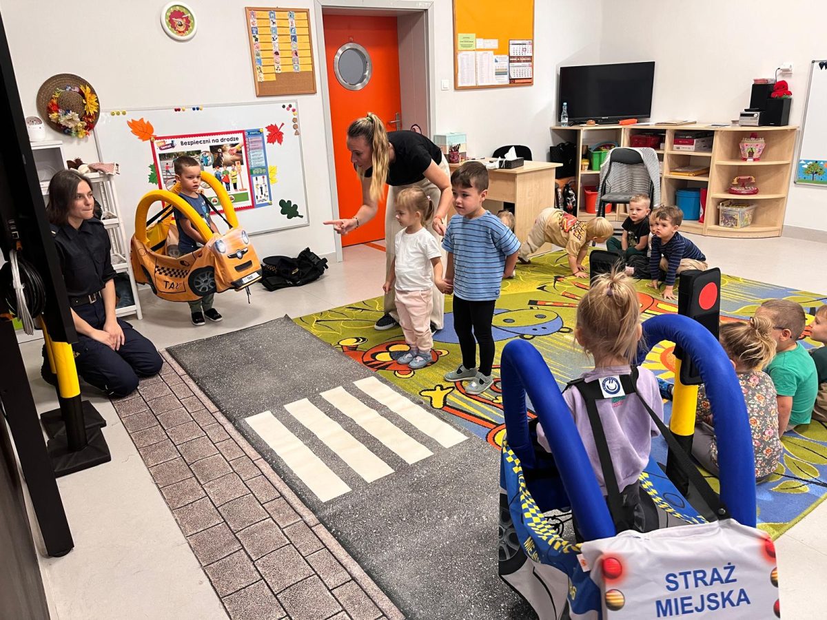 Dziś w naszej najmłodszej grupie odbyło się wyjątkowe spotkanie ze Strażniczką Miejską. Nasza gościni opowiedziała dzieciom o swojej codziennej pracy i o tym, jak dba o porządek oraz bezpieczeństwo mieszkańców. Przedszkolaki dowiedziały się, jak należy bezpiecznie poruszać się po drodze, jak zachować się w sytuacjach niebezpiecznych i do kogo zwrócić się o pomoc. Dzieci z dużym zainteresowaniem oglądały umundurowanie i wyposażenie strażniczki oraz chętnie odpowiadały na pytania.🚔 Serdecznie dziękujemy naszej Strażniczce Miejskiej za odwiedziny, ciepłe spotkanie i cenną lekcję bezpieczeństwa! 💛