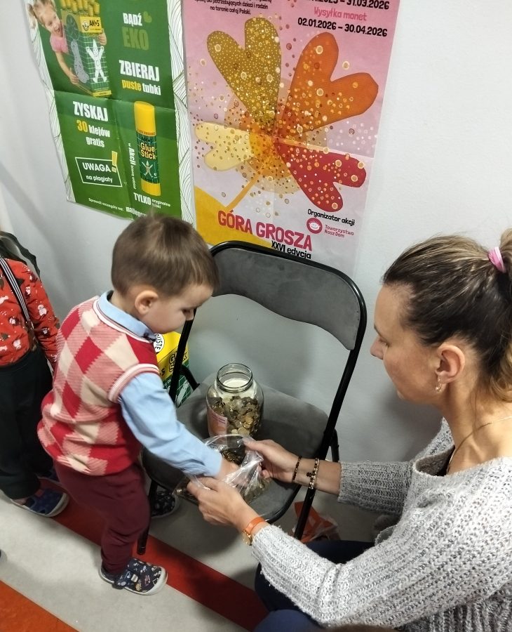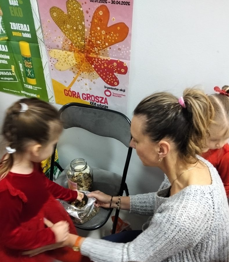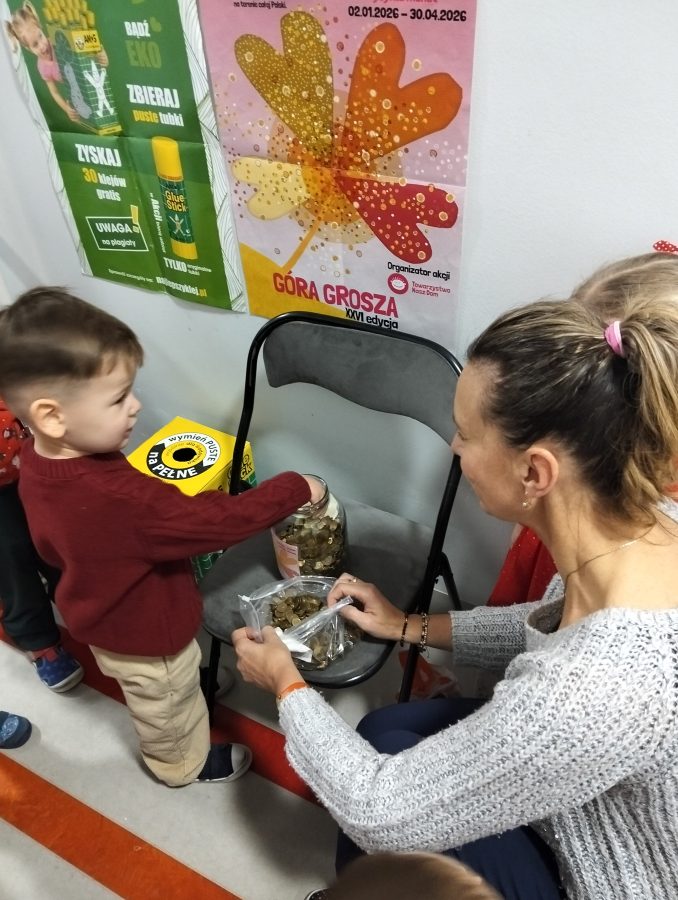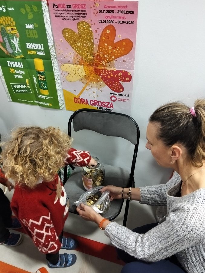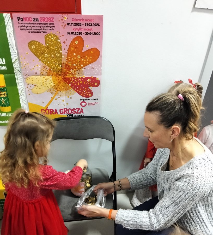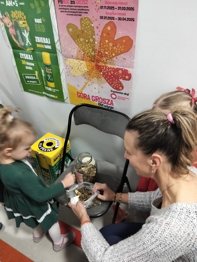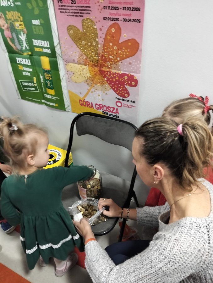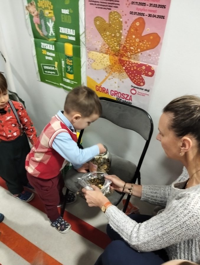 W naszym przedszkolu od 1 listopada rozpoczęła się akcja🪙 „Góra Grosza”🪙 polega ona na zbiórce monet, które dzieci, rodzice i pracownicy placówki wrzucają do specjalnie przygotowanych pojemników. Celem akcji jest pomoc dzieciom wychowującym się w pieczy zastępczej, czyli w domach dziecka, rodzinach zastępczych oraz rodzinach potrzebujących wsparcia. Każdy grosz ma znaczenie, dlatego nawet najmniejsza moneta jest cenna. Maluchy uczą się, czym jest dobroczynność, empatia i wspólne działanie. Dzieci chętnie wrzucają swoje monety do skarbonki, często z radością przynosząc je z domu. Zbiórka trwa zwykle kilka tygodni, a przedszkole prowadzi ją w atmosferze zabawy i współpracy🥰