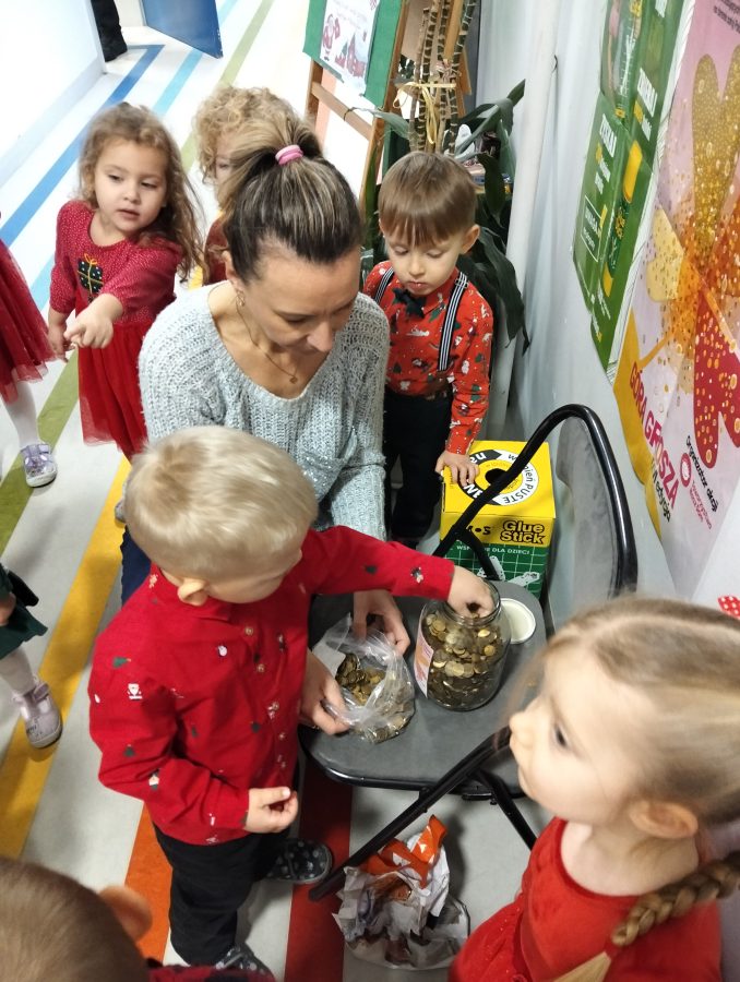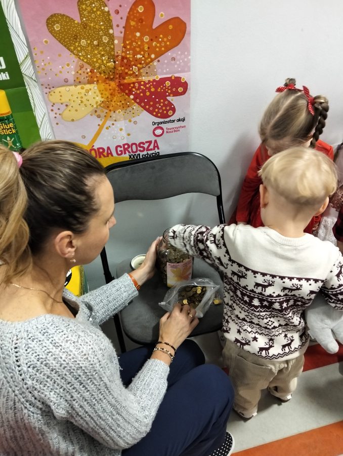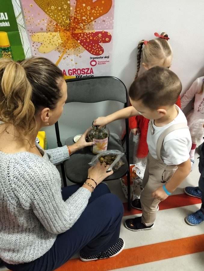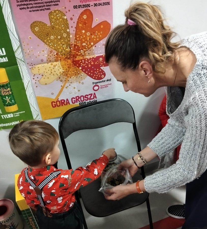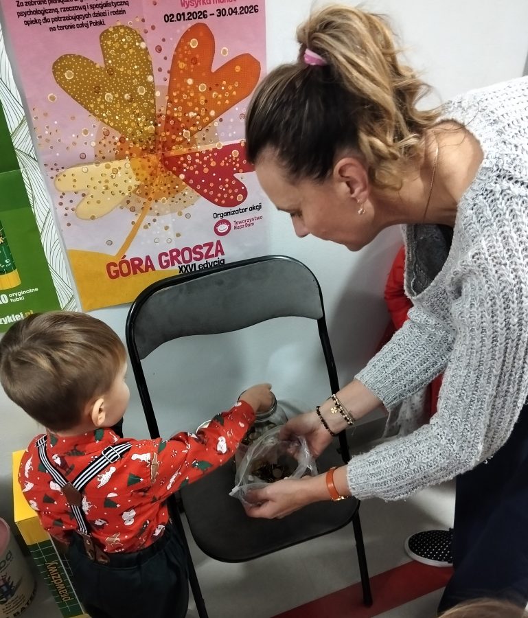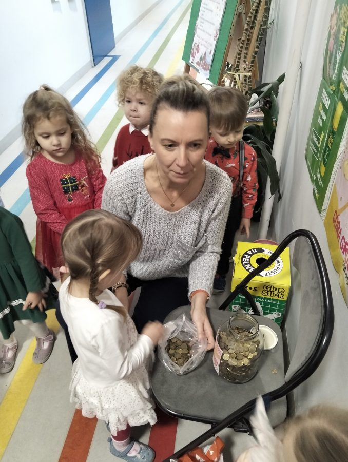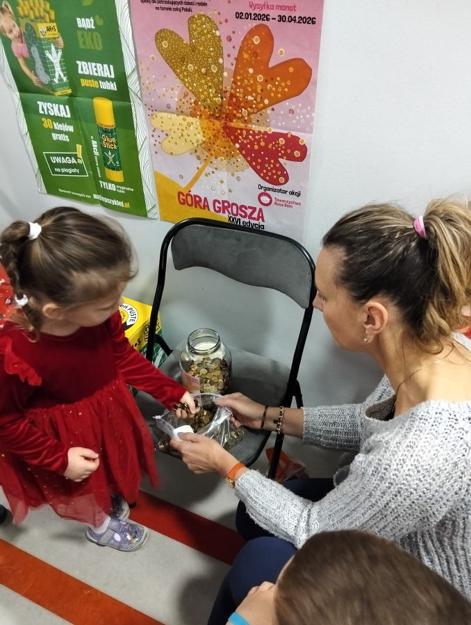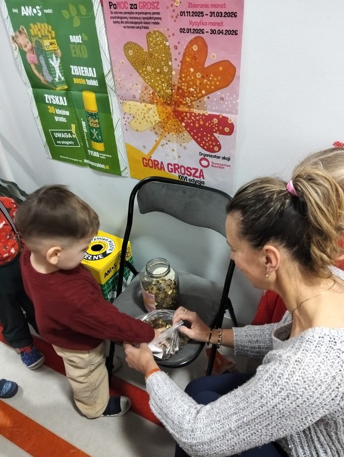 W naszym przedszkolu od 1 listopada rozpoczęła się akcja🪙 „Góra Grosza”🪙 polega ona na zbiórce monet, które dzieci, rodzice i pracownicy placówki wrzucają do specjalnie przygotowanych pojemników. Celem akcji jest pomoc dzieciom wychowującym się w pieczy zastępczej, czyli w domach dziecka, rodzinach zastępczych oraz rodzinach potrzebujących wsparcia. Każdy grosz ma znaczenie, dlatego nawet najmniejsza moneta jest cenna. Maluchy uczą się, czym jest dobroczynność, empatia i wspólne działanie. Dzieci chętnie wrzucają swoje monety do skarbonki, często z radością przynosząc je z domu. Zbiórka trwa zwykle kilka tygodni, a przedszkole prowadzi ją w atmosferze zabawy i współpracy🥰