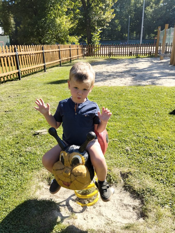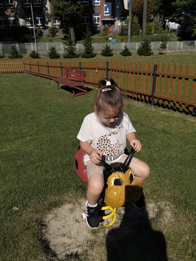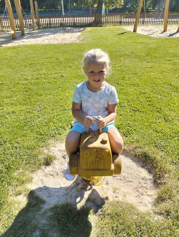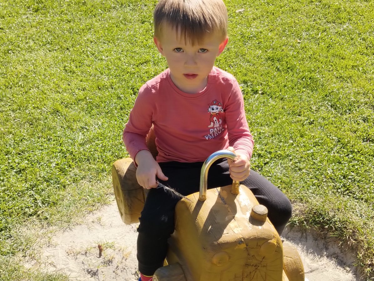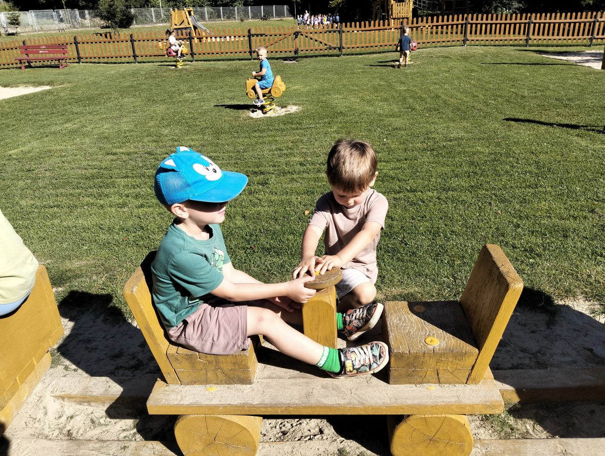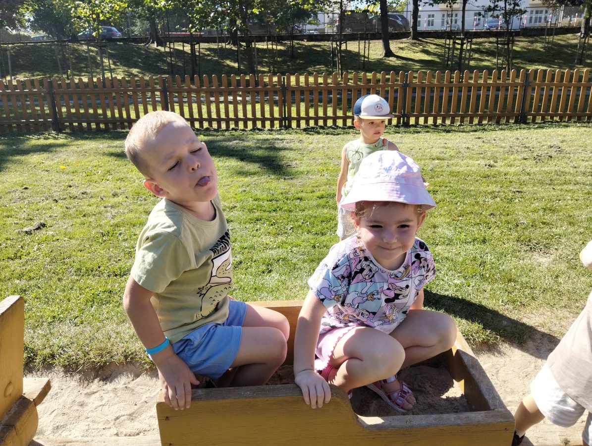 Nasze najmłodsze przedszkolaki po raz pierwszy wybrały się na plac zabaw. Największym zainteresowaniem cieszyła się drewniana ciuchcia, do której dzieci chętnie wsiadały i udawały małych maszynistów. Sporo radości sprawiły im także przejażdżki na bujakach – kolorowej biedronce i autku. Choć były to pierwsze chwile poza salą, dzieci od razu odnalazły się w nowych zabawach. Towarzyszyło im mnóstwo uśmiechu, radosnych okrzyków i pierwszych prób wspólnej integracji. To dopiero początek ich przygody na świeżym powietrzu, a my z radością będziemy obserwować, jak każdego dnia odkrywają coś nowego! 🌳✨
