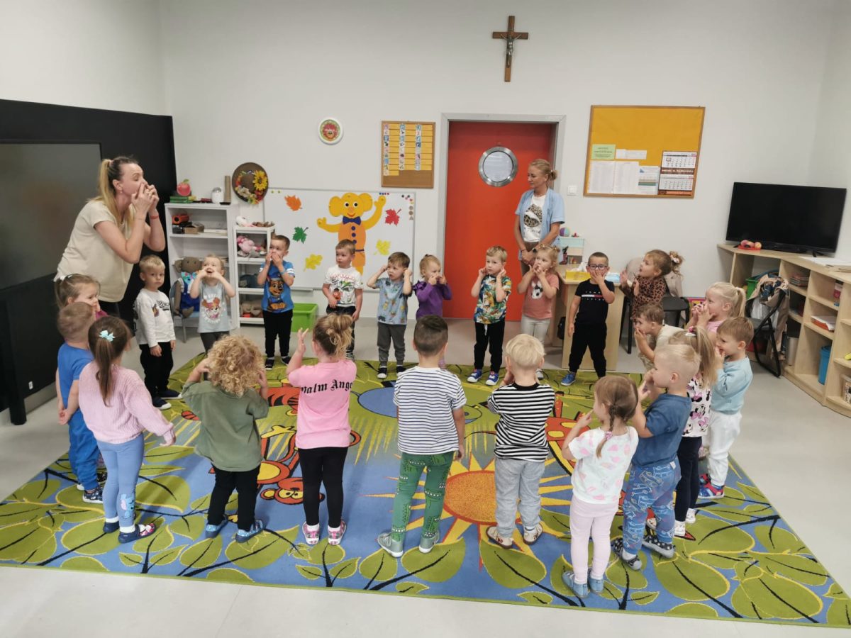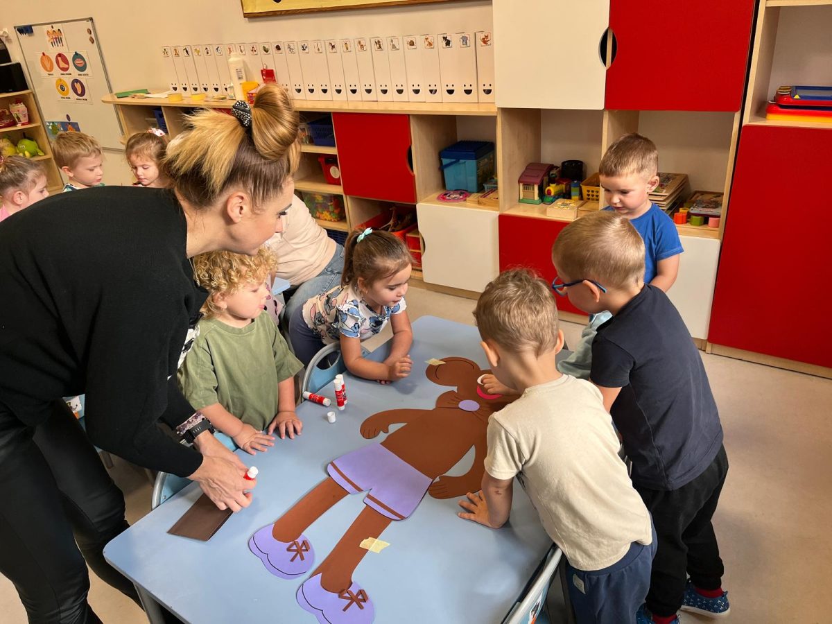 Podczas dzisiejszych zajęć razem z naszym przyjacielem Plastusiem utrwalaliśmy nazwy części ciała. Wspólnie śpiewaliśmy piosenki, wskazywaliśmy poszczególne części na sobie i na Plastusiu, a także bawiliśmy się w wesołe ruchowe zabawy. Dzieci z radością pokazywały, gdzie jest nos, uszy, ręce i nogi – a przy tym świetnie się bawiły! 😊