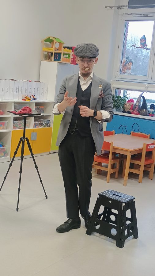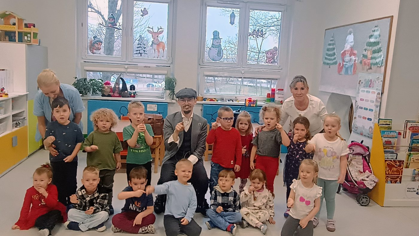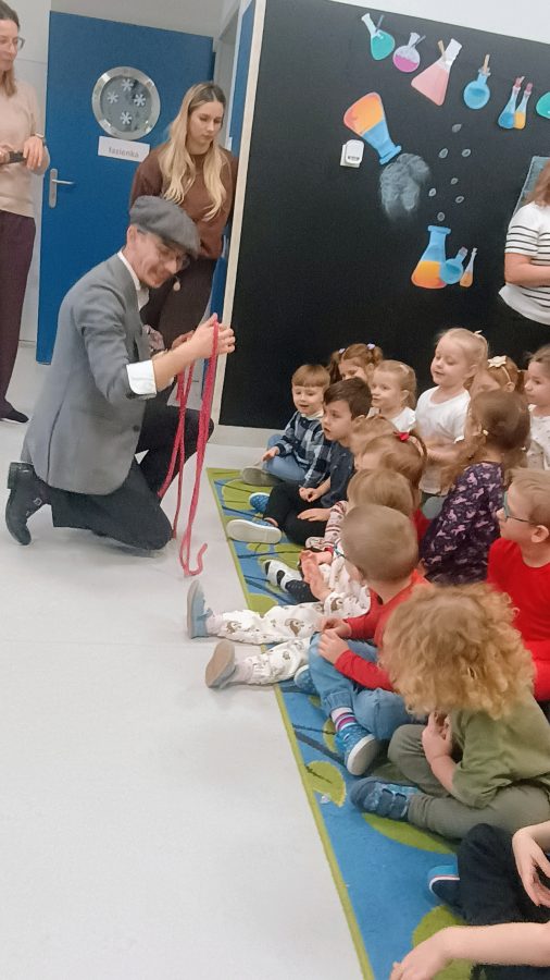 13 lutego nasze przedszkole odwiedził niezwykły gość. Ze swoim magicznym programem wystąpił prawdziwy iluzjonista. Magik zabrał nas do świata czarów i magii. Dzieci miały możliwość przeżycia czegoś niezwykłego, tym bardziej, że aktywnie uczestniczyły w przedstawieniu. Uczyły się tajemniczych zaklęć, a odważni ochotnicy pomagali mistrzowi w jego pokazie i sami czarowali. Wszystkim dzieciom bardzo podobały się niesamowite sztuczki oraz czary. Wyprawa do tajemniczego świata dostarczyła wszystkim sporo satysfakcji, wiele humoru i radości. Atmosfera była fantastyczna, a wszyscy świetnie się bawili. Było cudownie, magicznie i tajemniczo…
