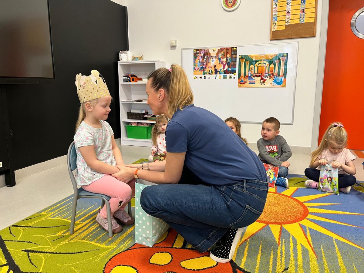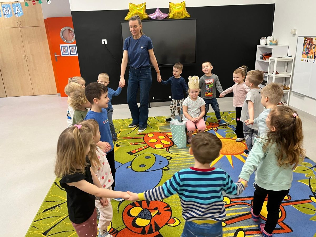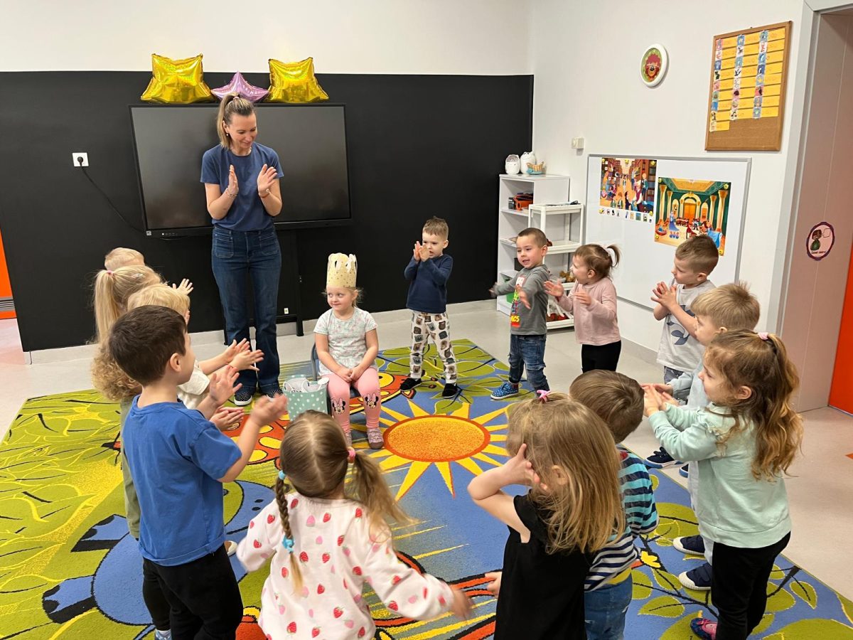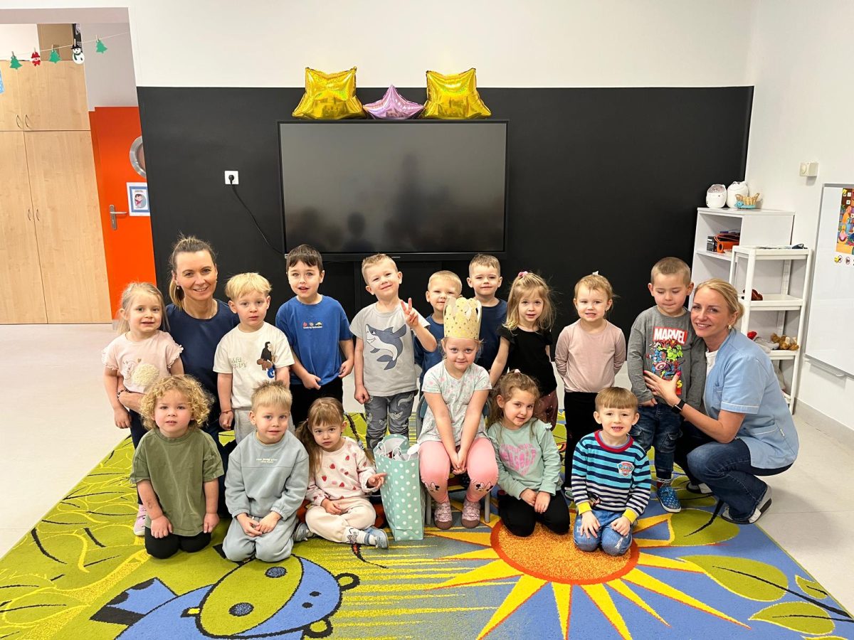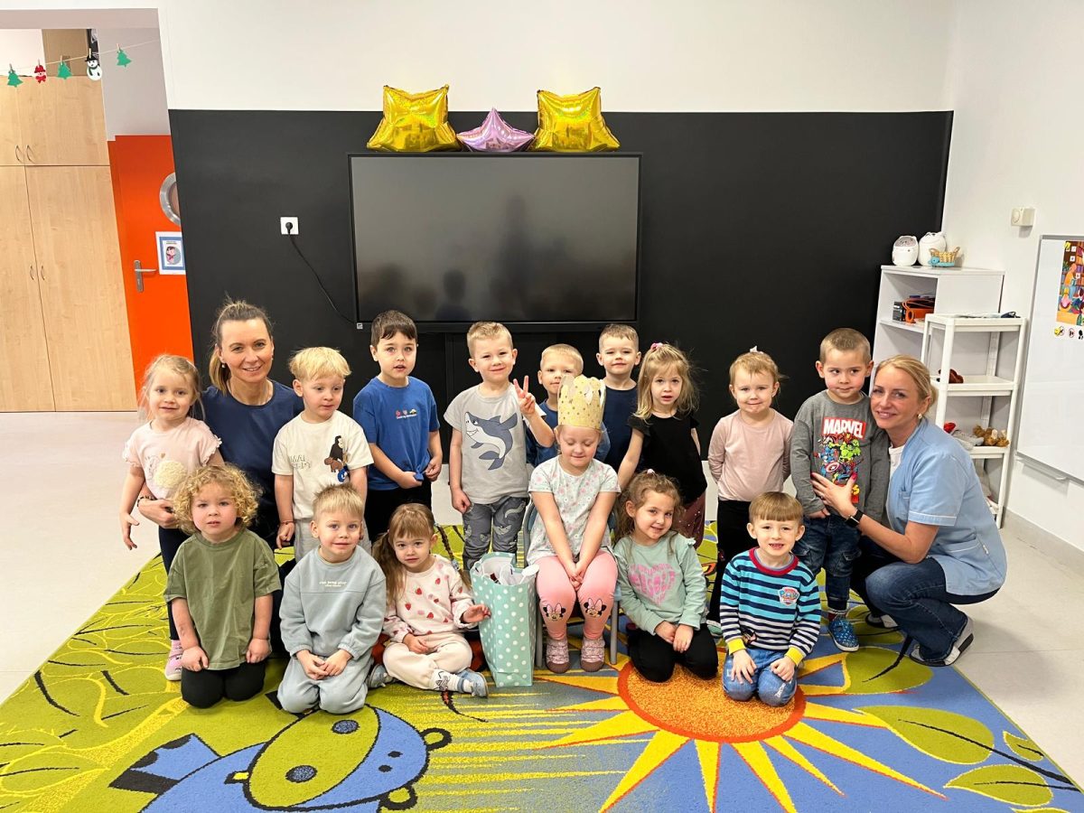 Dziś w naszej grupie świętowaliśmy urodzinki Julki 🎂 Były wspólne życzenia, radosne „Sto lat”, uśmiechy i małe przyjemności dla wszystkich dzieci. Julka była w centrum uwagi i promieniała radością 💖 Kochana, życzymy Ci dużo zdrowia, uśmiechu każdego dnia, spełnienia marzeń oraz samych wesołych chwil w przedszkolu 🎈🌟