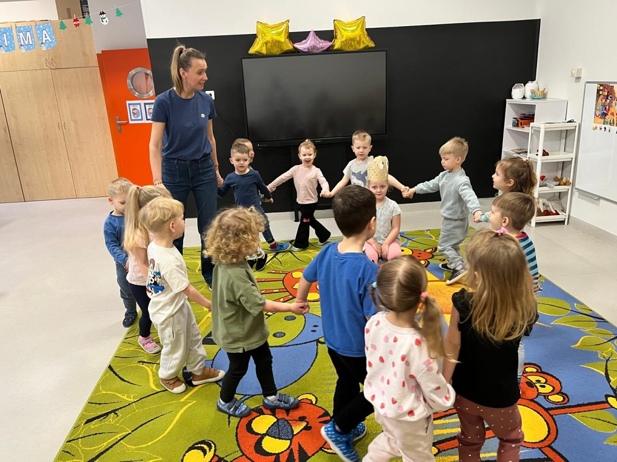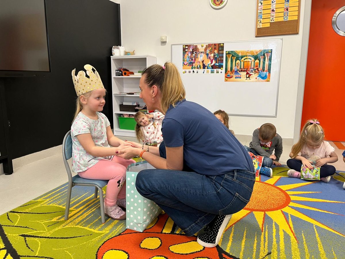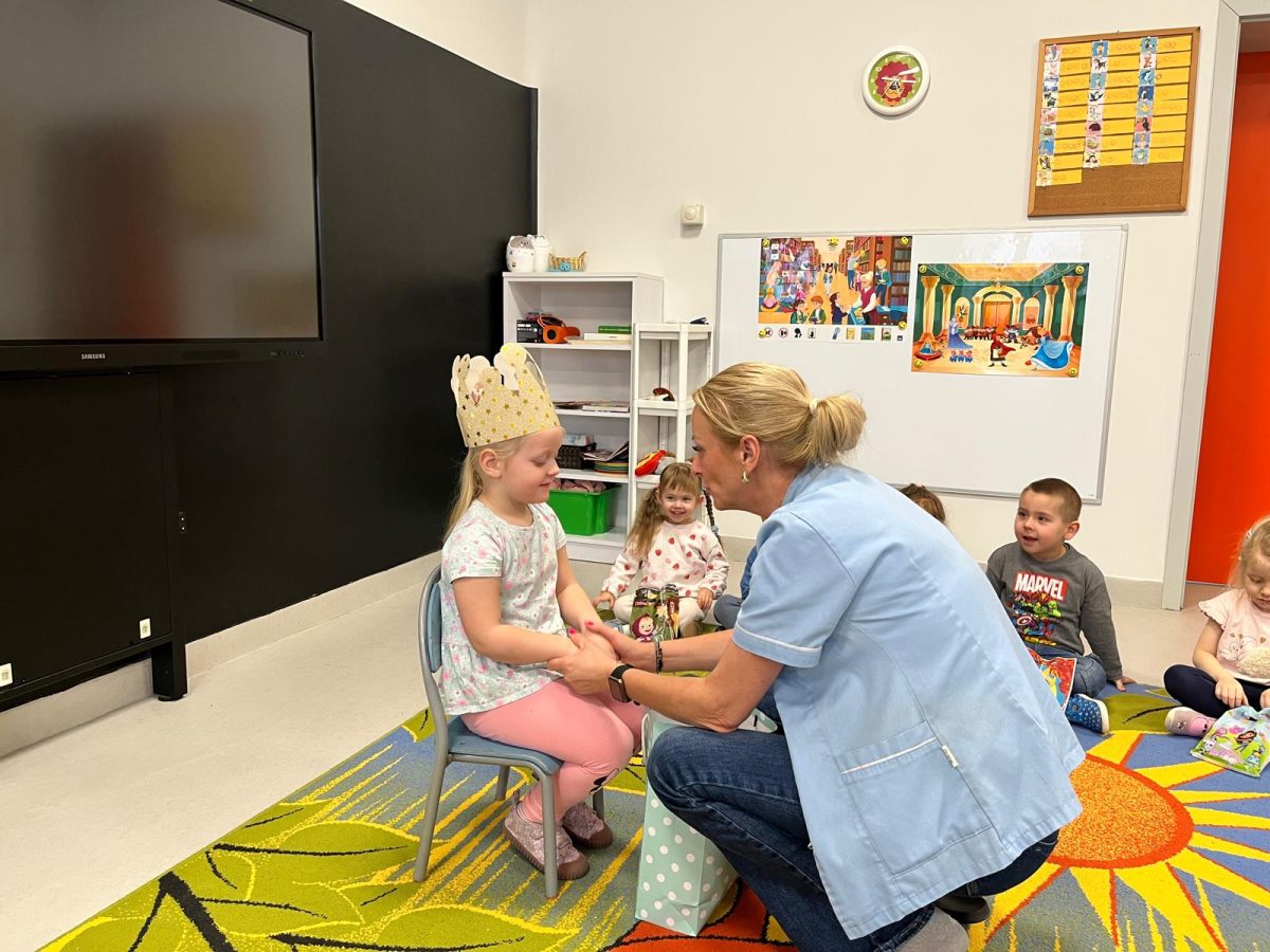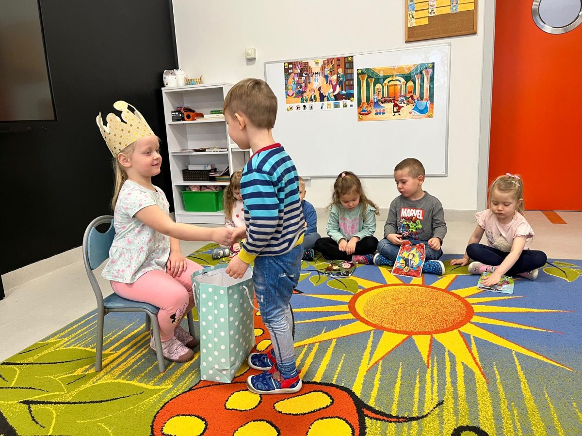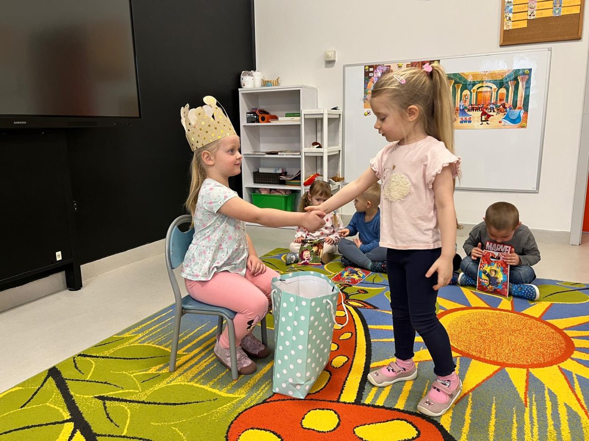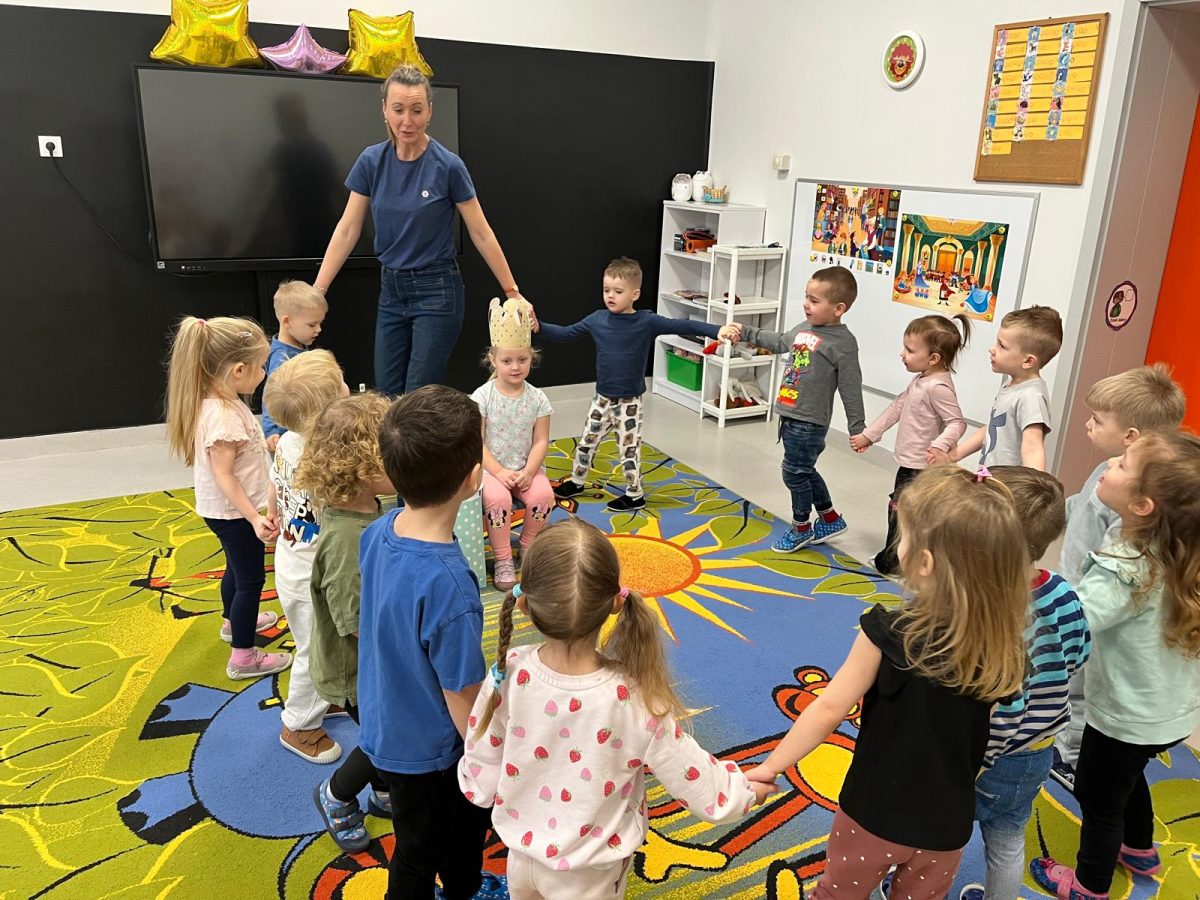 Dziś w naszej grupie świętowaliśmy urodzinki Julki 🎂 Były wspólne życzenia, radosne „Sto lat”, uśmiechy i małe przyjemności dla wszystkich dzieci. Julka była w centrum uwagi i promieniała radością 💖 Kochana, życzymy Ci dużo zdrowia, uśmiechu każdego dnia, spełnienia marzeń oraz samych wesołych chwil w przedszkolu 🎈🌟