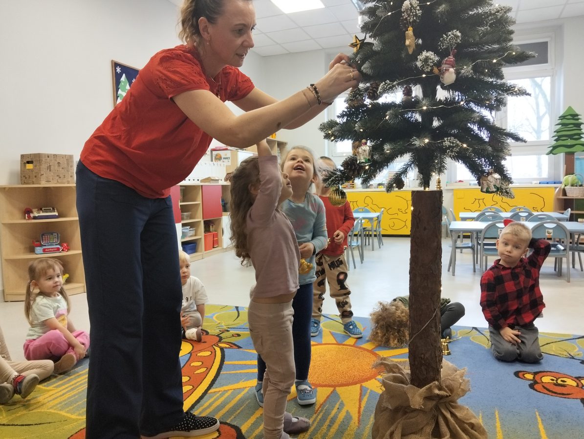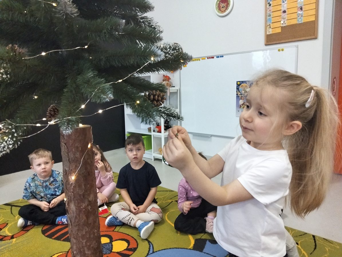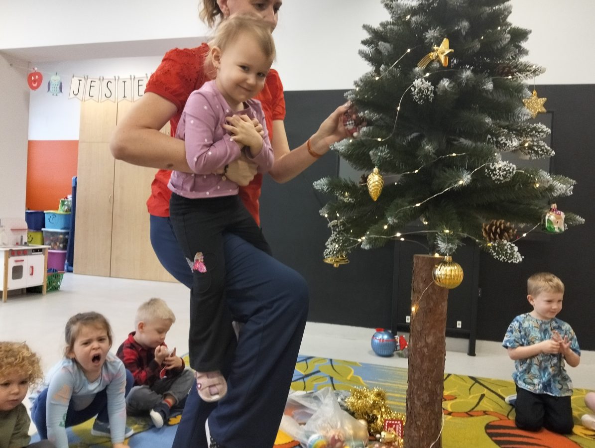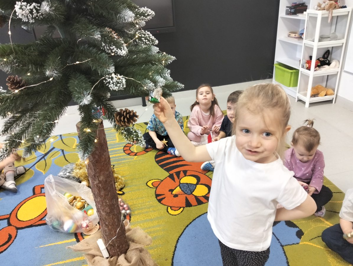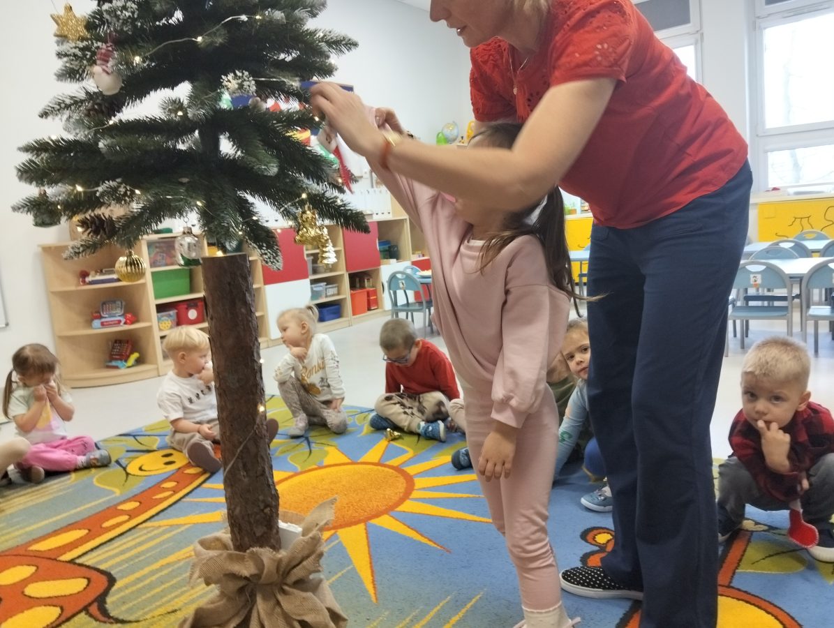 Dziś w naszej grupie wspólnie ubieraliśmy choinkę!🎄Trzylatki z ogromnym zaangażowaniem wybierały ozdoby i wieszały je na dolnych gałązkach, tworząc wyjątkowy, pełen dziecięcej radości świąteczny wystrój. Atmosfera była pełna uśmiechów i podekscytowania. Nasza choinka prezentuje się pięknie — dziękujemy dzieciom za wspaniałą współpracę!🥰 🎄✨
