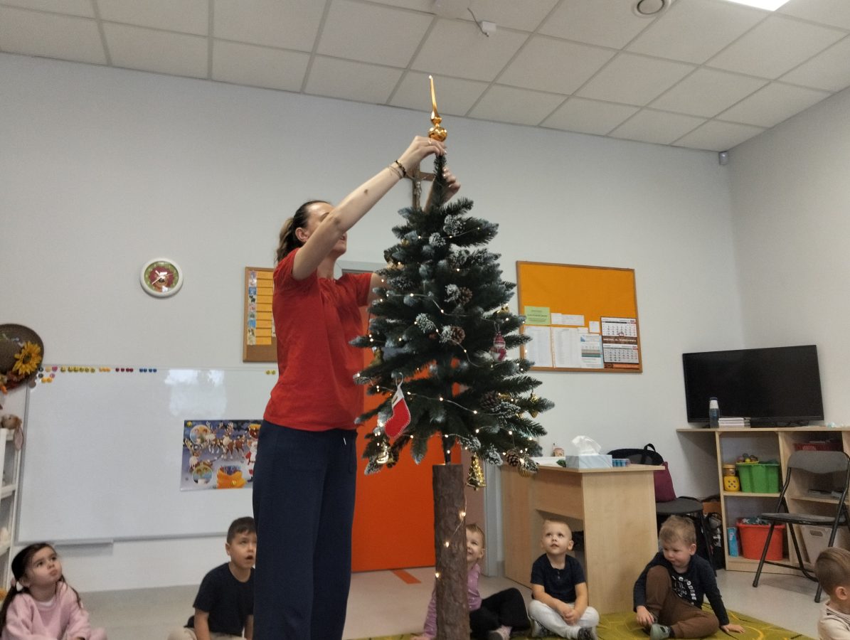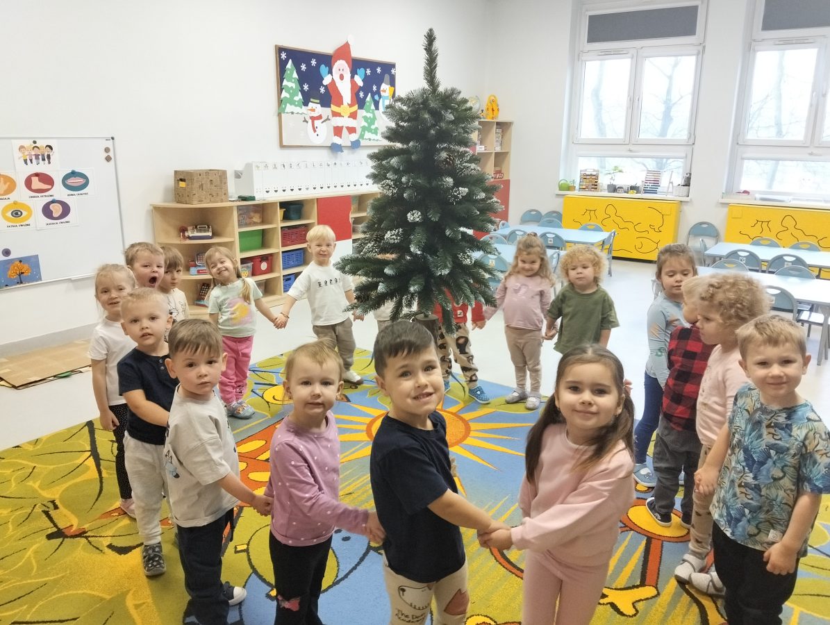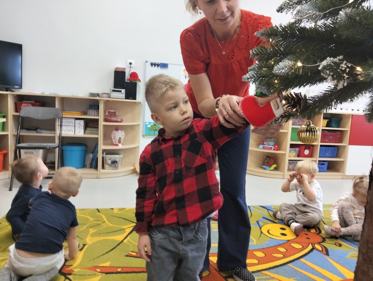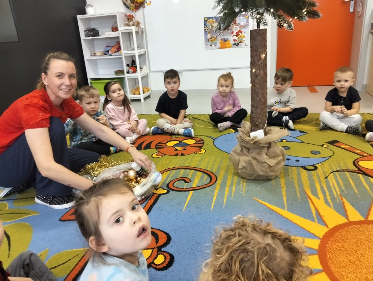 Dziś w naszej grupie wspólnie ubieraliśmy choinkę!🎄Trzylatki z ogromnym zaangażowaniem wybierały ozdoby i wieszały je na dolnych gałązkach, tworząc wyjątkowy, pełen dziecięcej radości świąteczny wystrój. Atmosfera była pełna uśmiechów i podekscytowania. Nasza choinka prezentuje się pięknie — dziękujemy dzieciom za wspaniałą współpracę!🥰 🎄✨