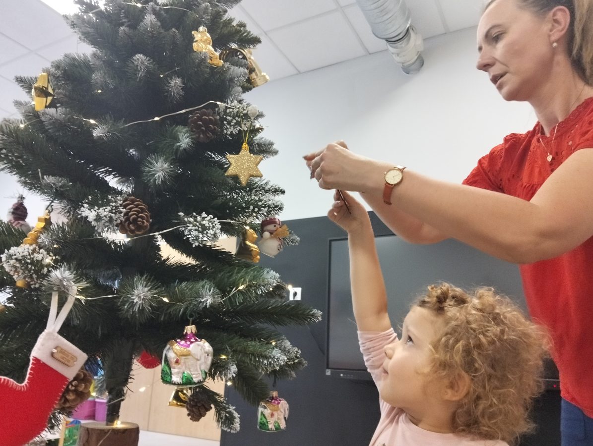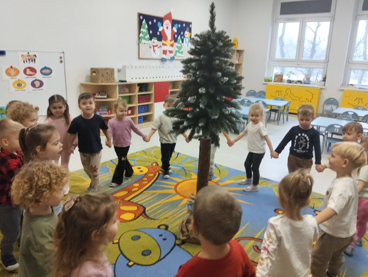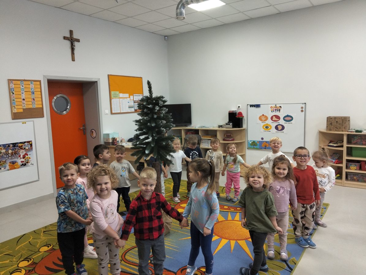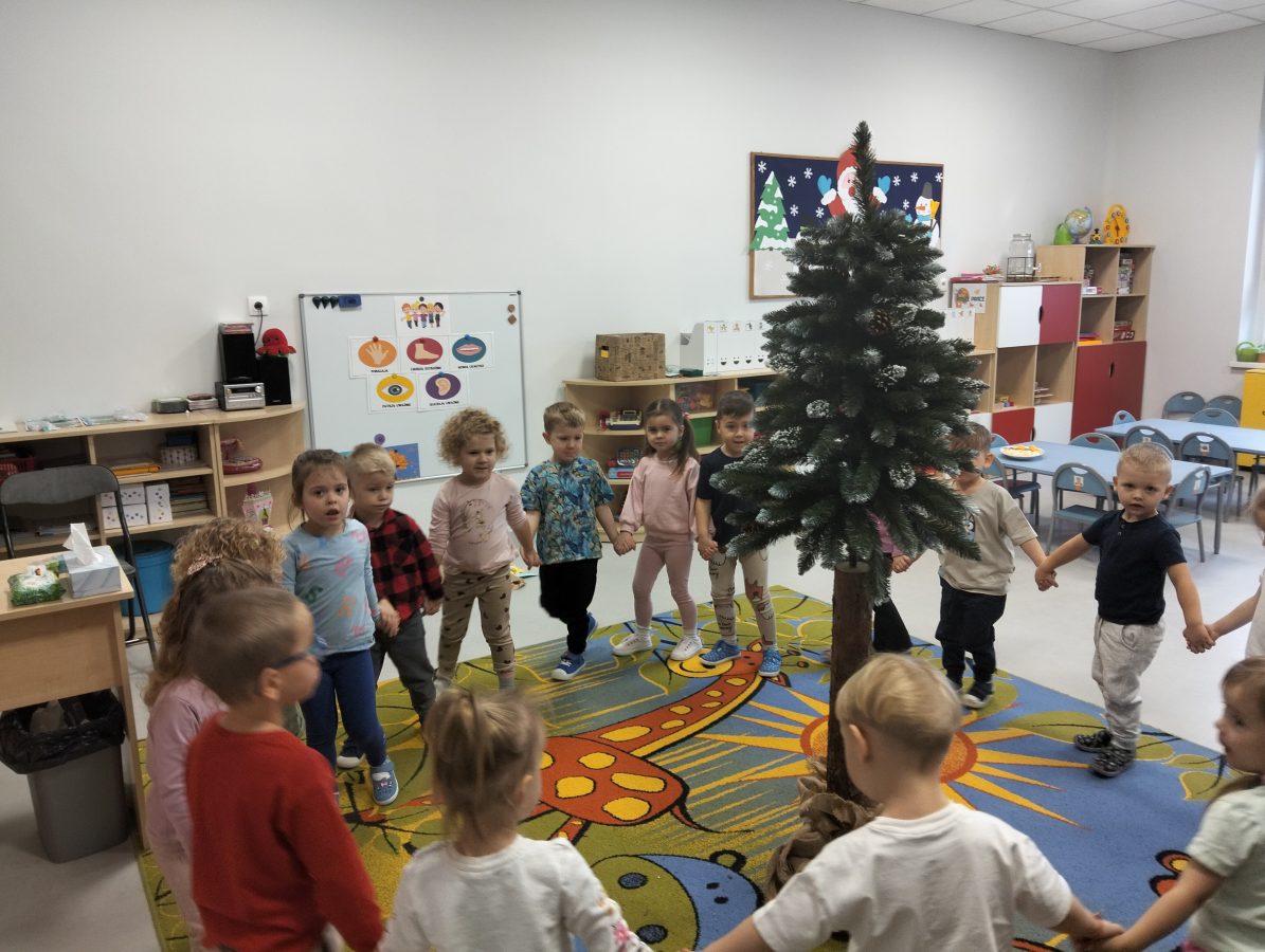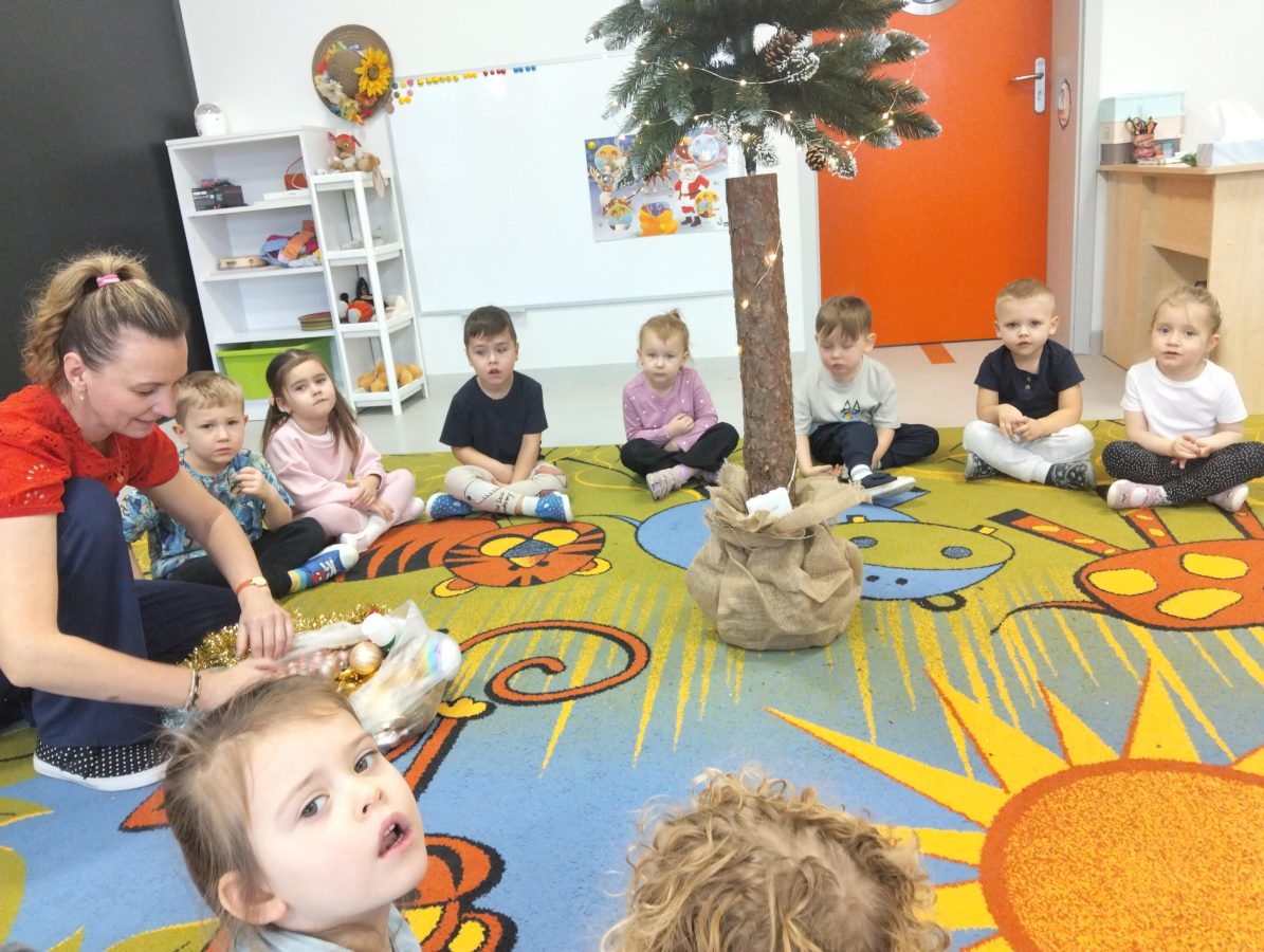 Dziś w naszej grupie wspólnie ubieraliśmy choinkę!🎄Trzylatki z ogromnym zaangażowaniem wybierały ozdoby i wieszały je na dolnych gałązkach, tworząc wyjątkowy, pełen dziecięcej radości świąteczny wystrój. Atmosfera była pełna uśmiechów i podekscytowania. Nasza choinka prezentuje się pięknie — dziękujemy dzieciom za wspaniałą współpracę!🥰 🎄✨