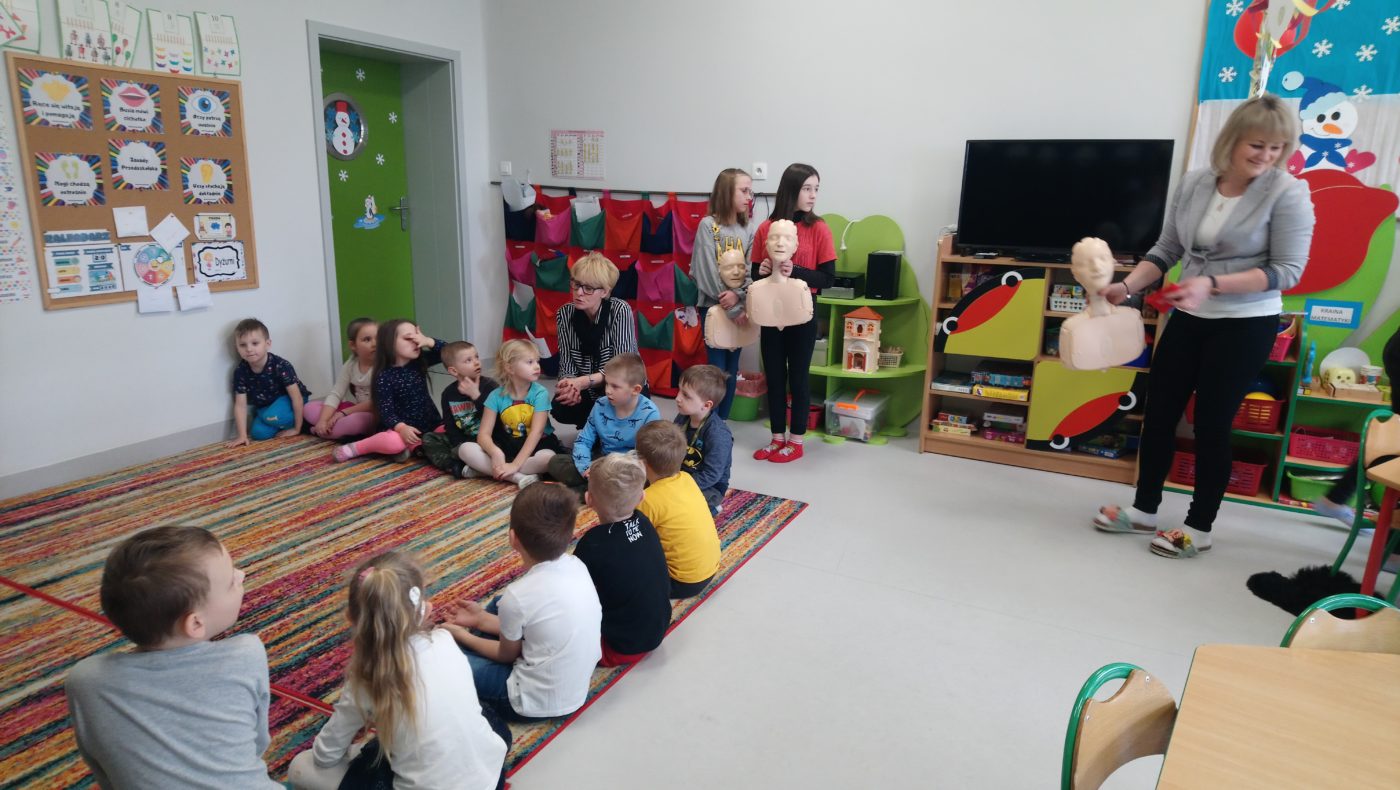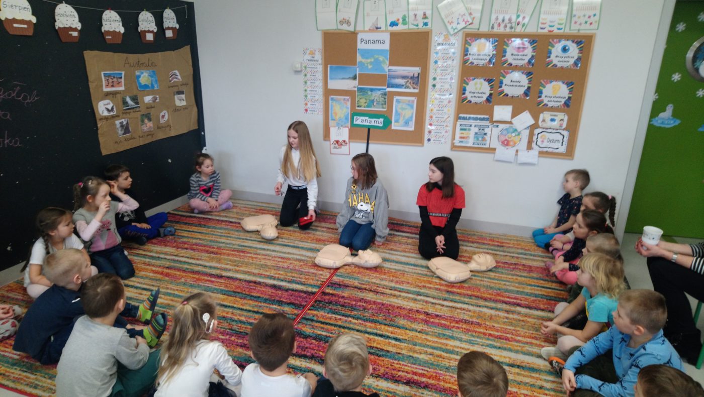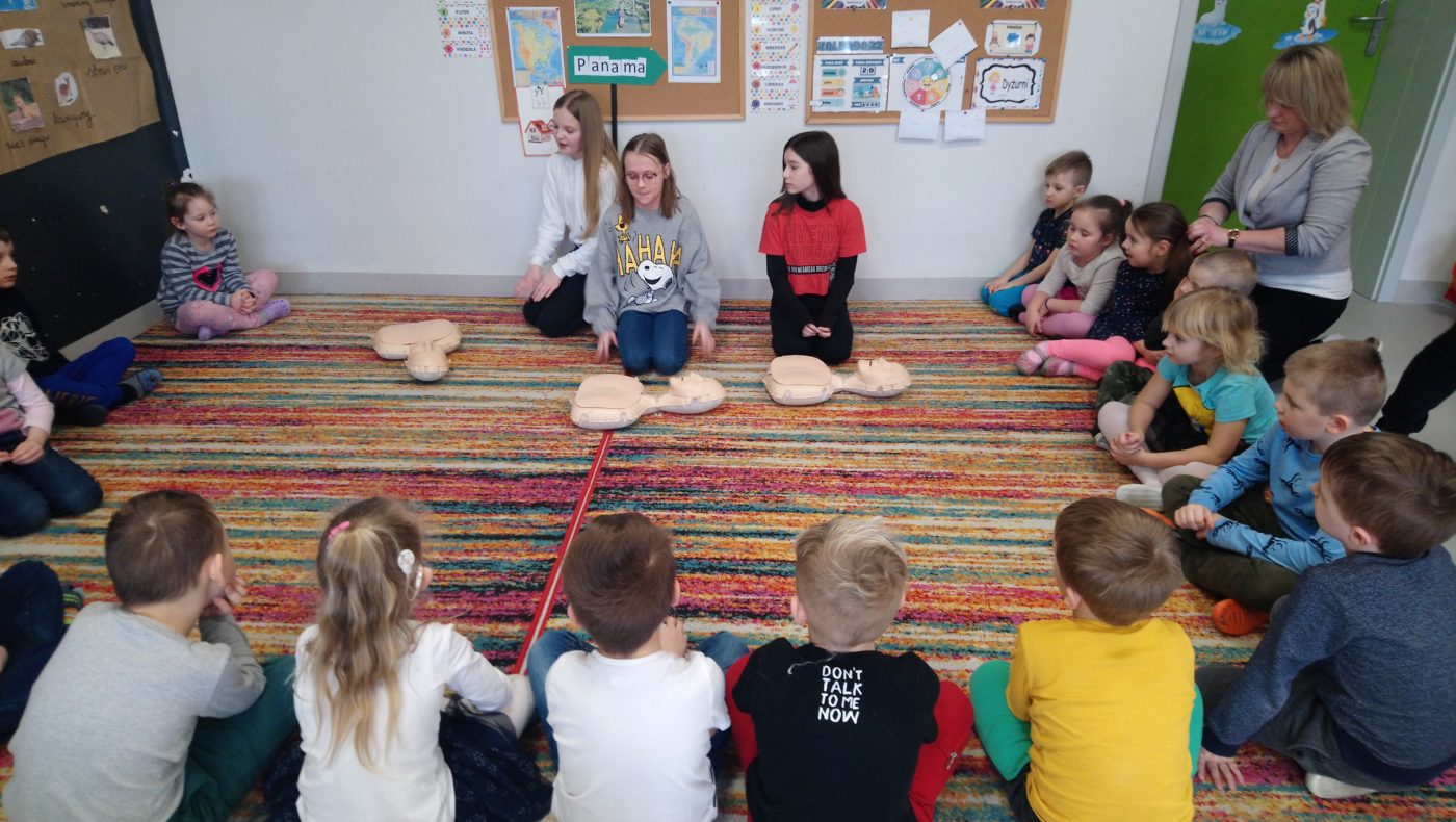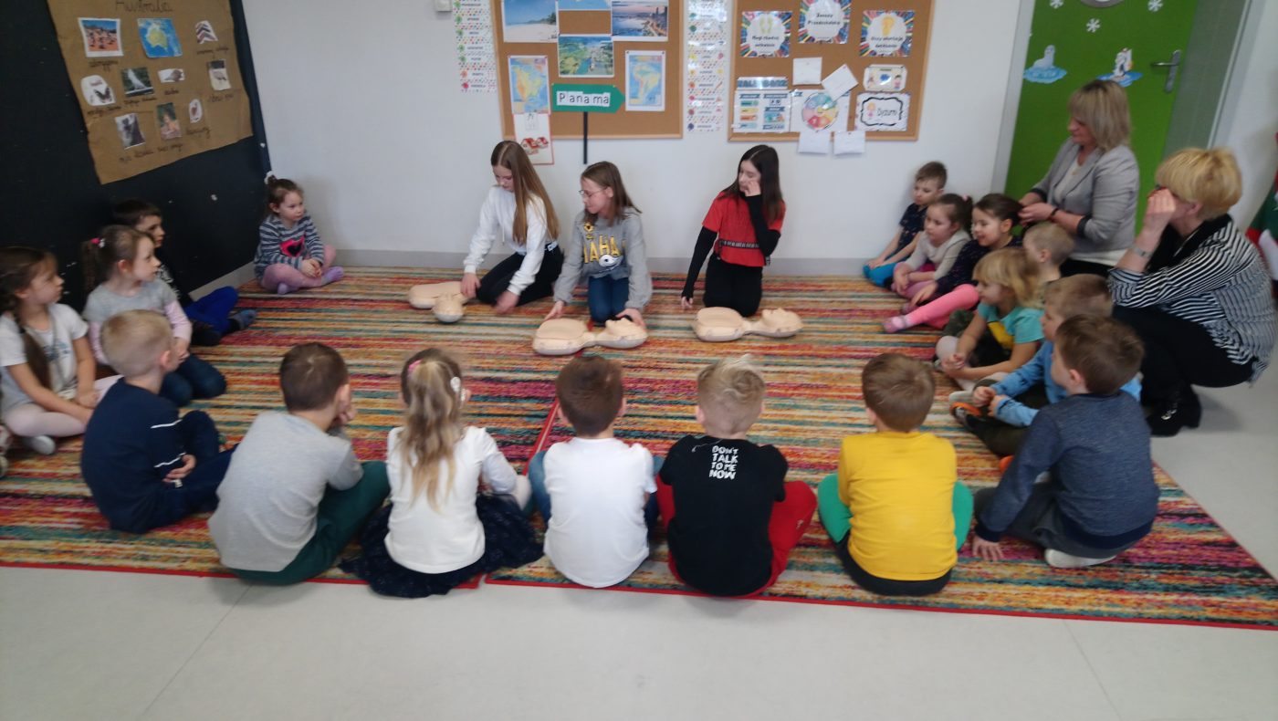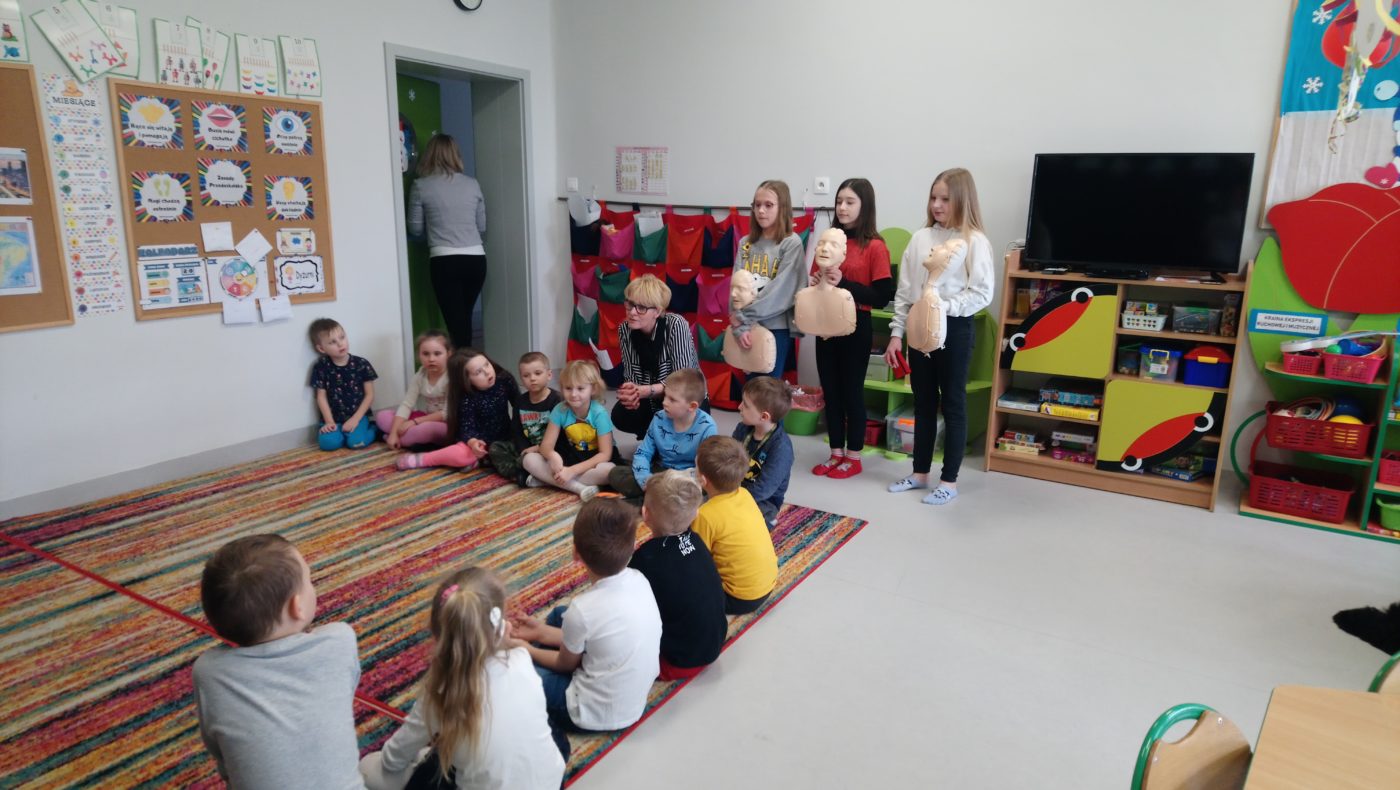 Szkolenie z pierwszej pomocy przedmedycznej W piątek odwiedzili nas wolontariusze ze Szkoły Podstawowej nr 6 w Gnieźnie i pokazali dzieciom jak udzielać pierwszej pomocy przedmedycznej