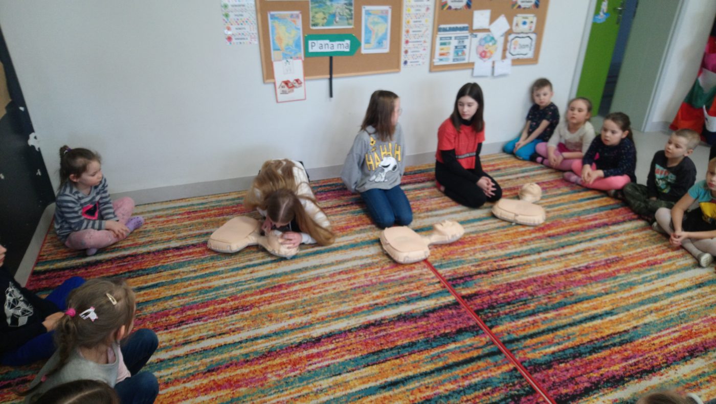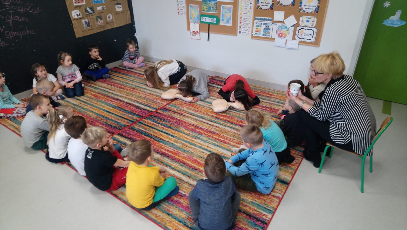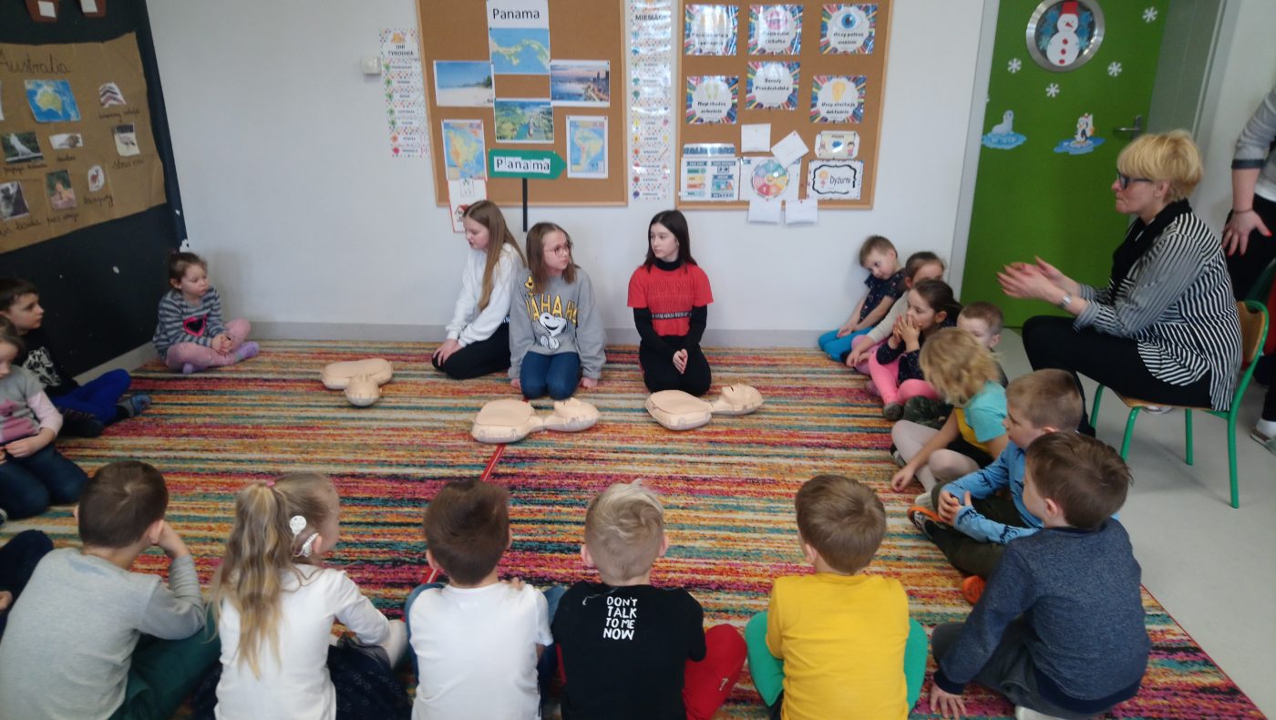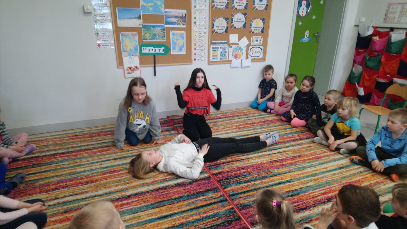 Szkolenie z pierwszej pomocy przedmedycznej W piątek odwiedzili nas wolontariusze ze Szkoły Podstawowej nr 6 w Gnieźnie i pokazali dzieciom jak udzielać pierwszej pomocy przedmedycznej