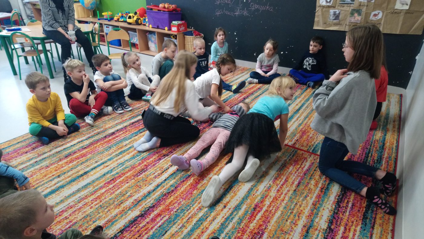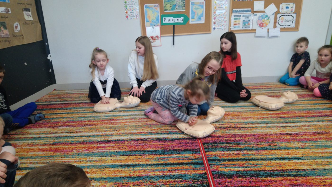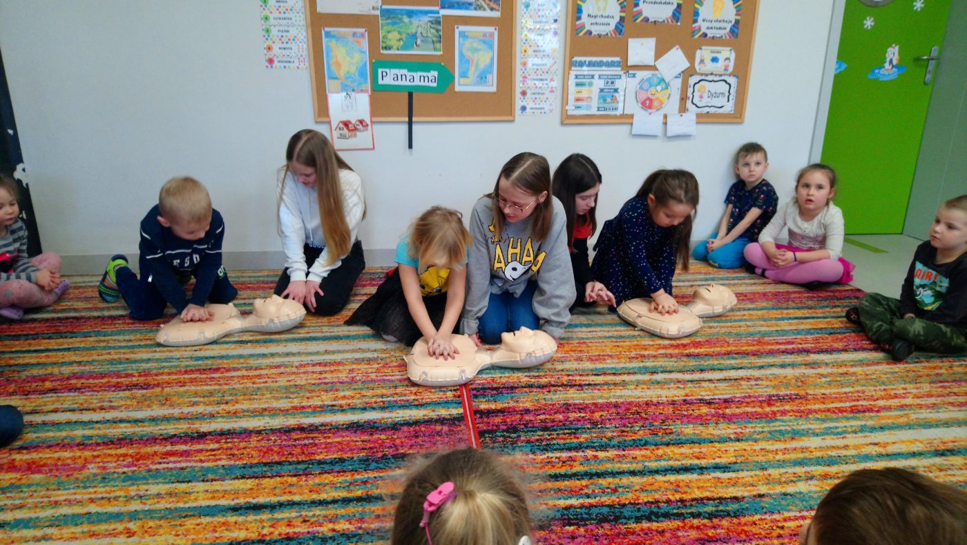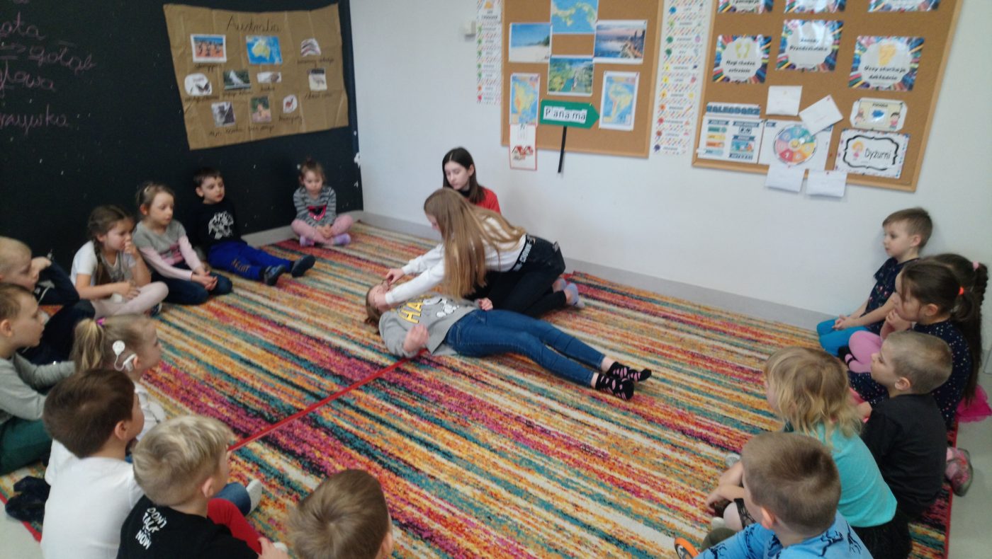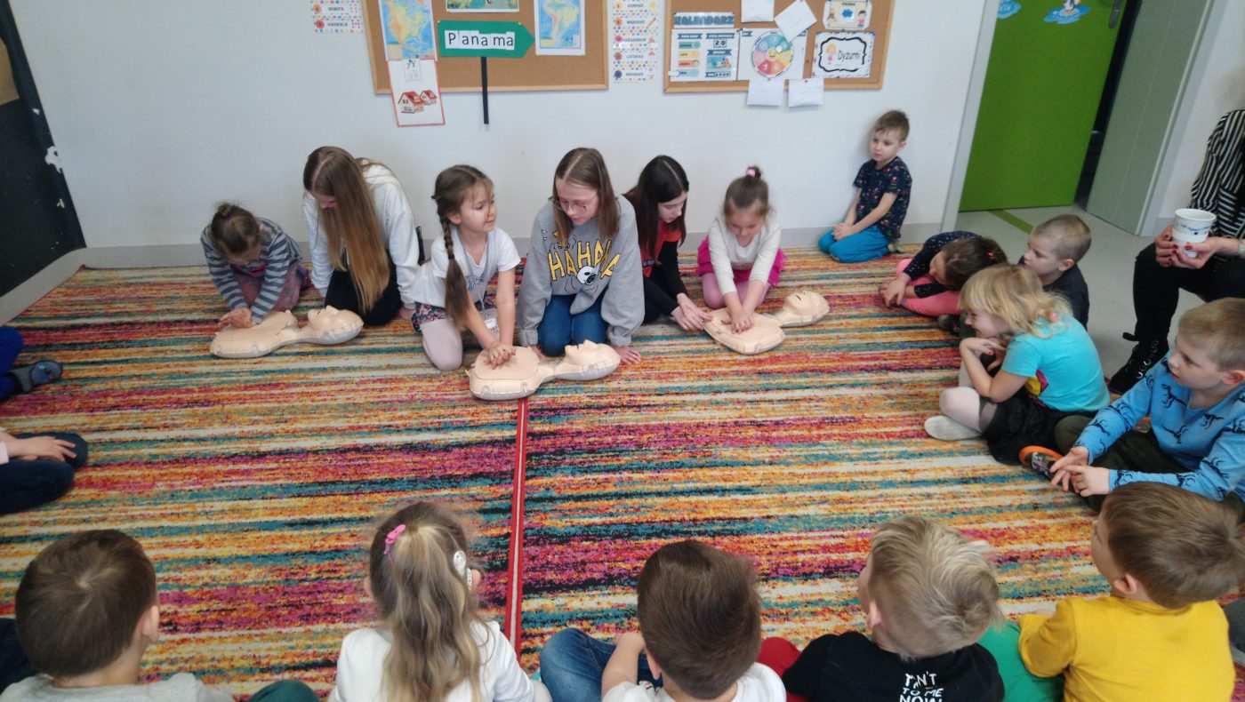 Szkolenie z pierwszej pomocy przedmedycznej W piątek odwiedzili nas wolontariusze ze Szkoły Podstawowej nr 6 w Gnieźnie i pokazali dzieciom jak udzielać pierwszej pomocy przedmedycznej