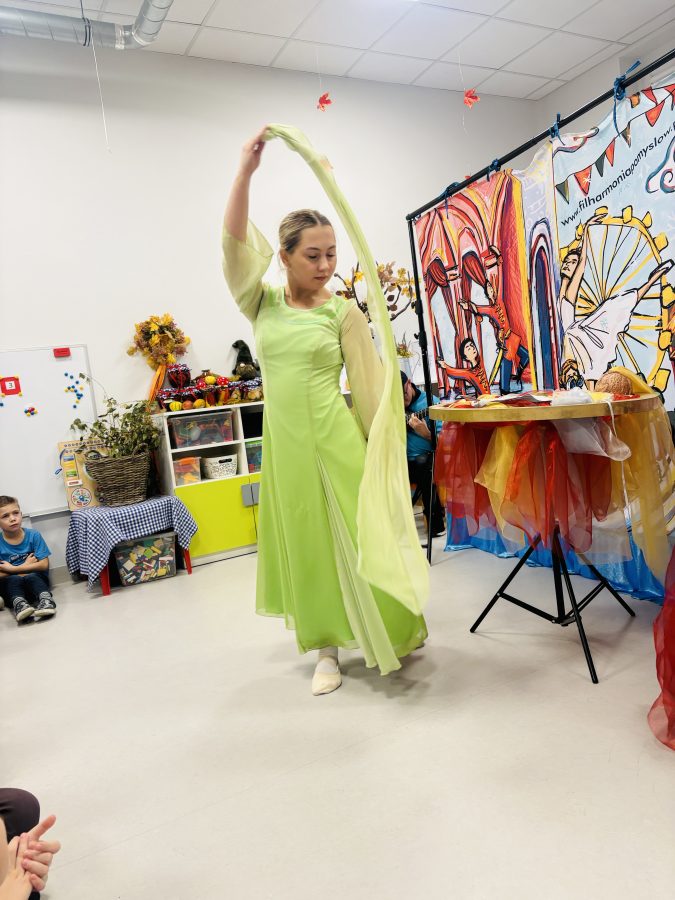 Dzi艣 kolejny raz odwiedzi艂a nasze przedszkole Filharmonia Pomys艂贸w. Tym razem by艂o to przedstawienie „Pa艂ac Baleriny Tutu”. W czasie wyst臋pu dzieci zosta艂y wprowadzone w 艣wiat baletu. Mia艂y okazj臋 pozna膰 takie spektakle jak: „Jezioro 艁ab臋dzie” czy „Dziadek do Orzech贸w”. Dowiedzia艂y si臋 聽tak偶e sk膮d pochodzi balet oraz pozna艂y podstawowe pozy baletowe.