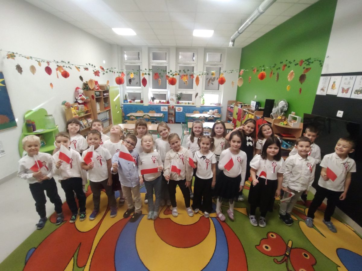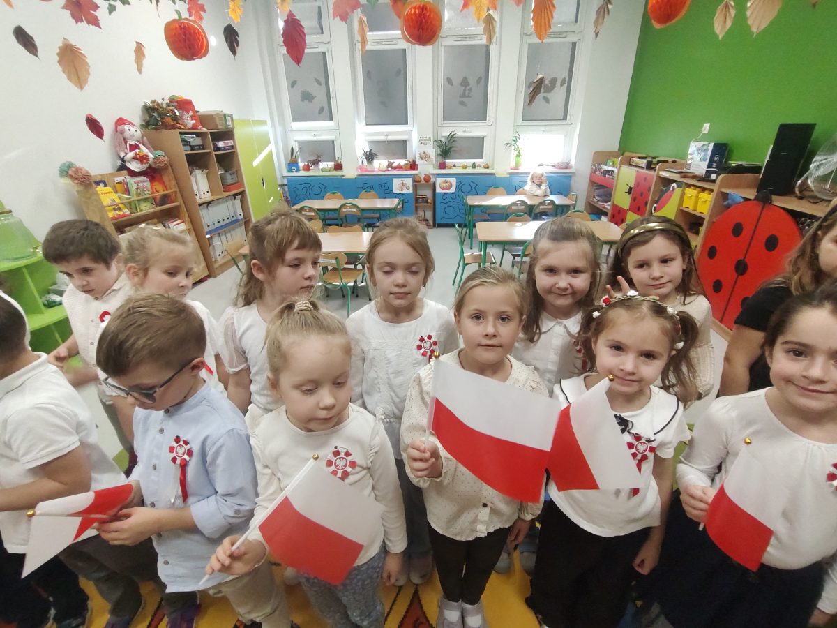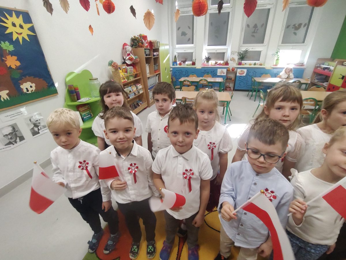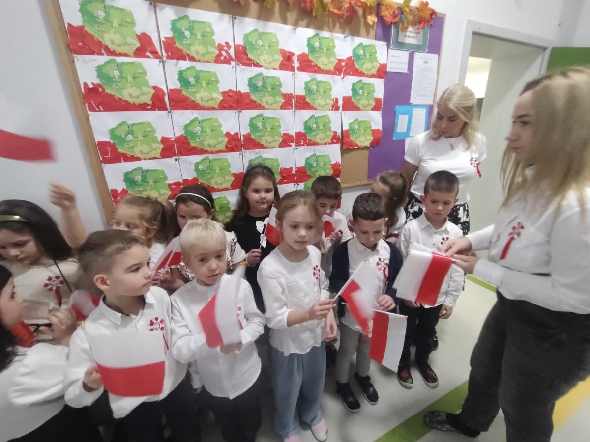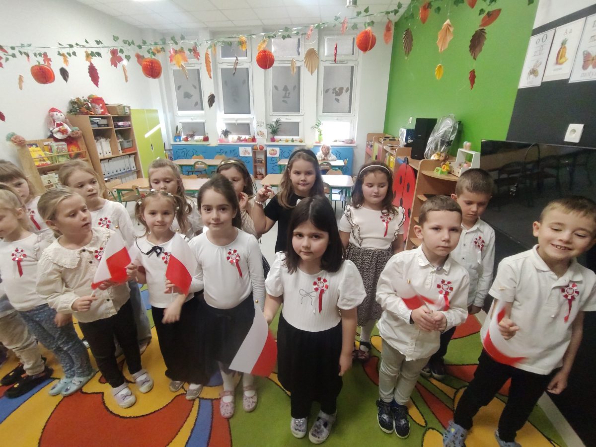 7 listopada w naszym przedszkolu odbyła się uroczystość z okazji Narodowego Święta Niepodległości. Podczas spotkania nauczycielki przybliżyły dzieciom znaczenie tego wyjątkowego dnia w historii naszego kraju. Punktualnie o godzinie 11:11 cała społeczność przedszkola z dumą odśpiewała hymn narodowy – „Mazurek Dąbrowskiego”.