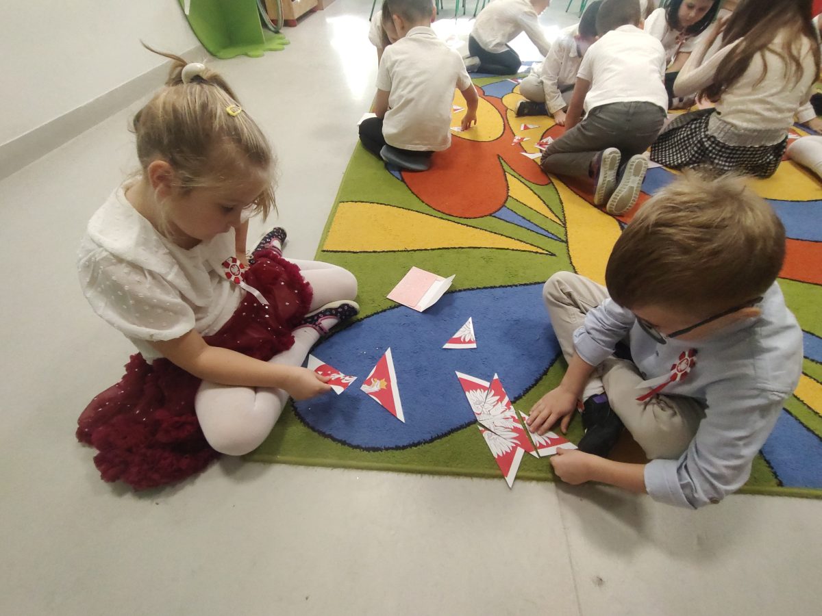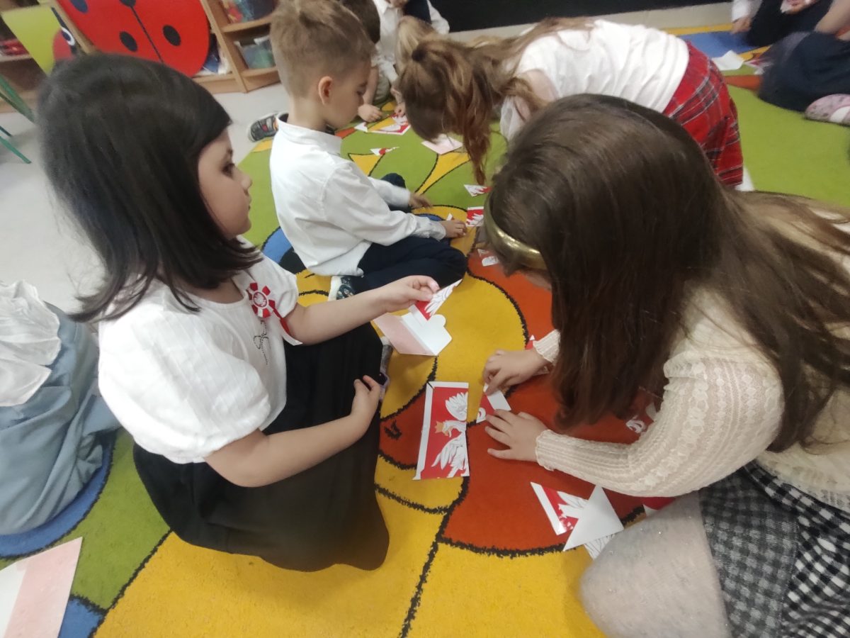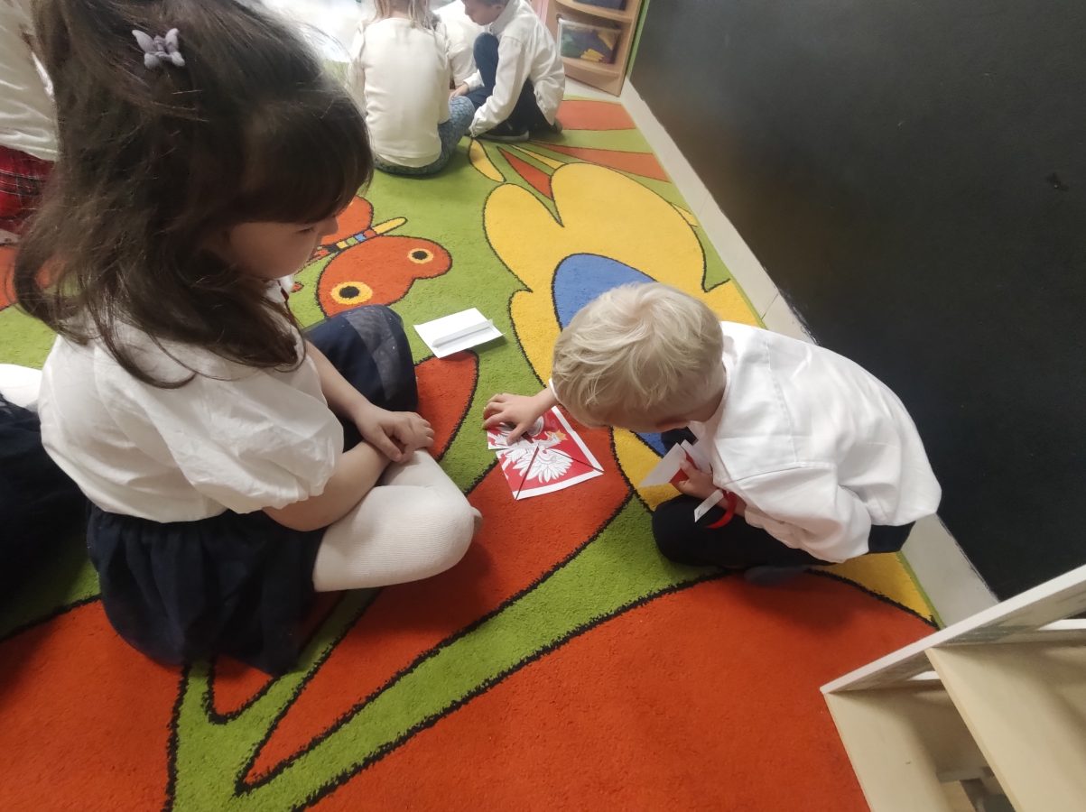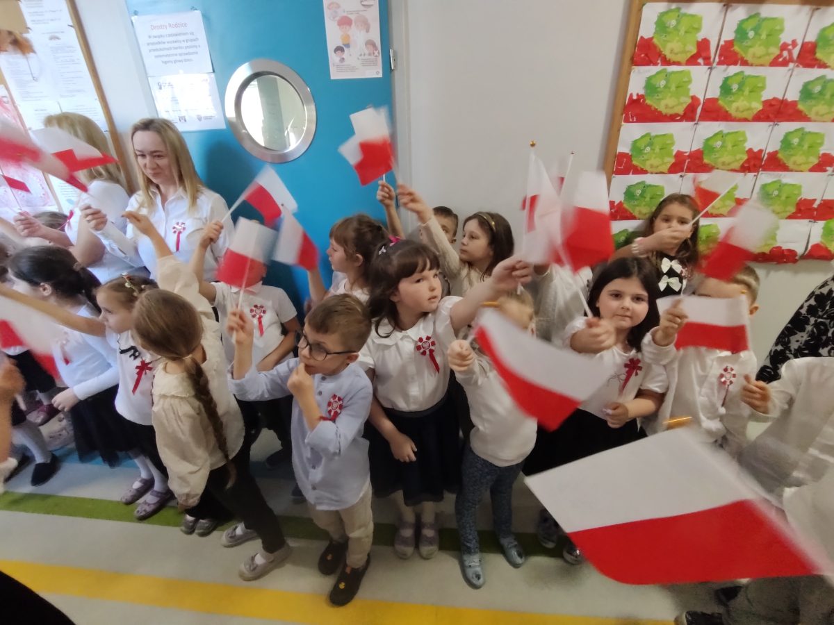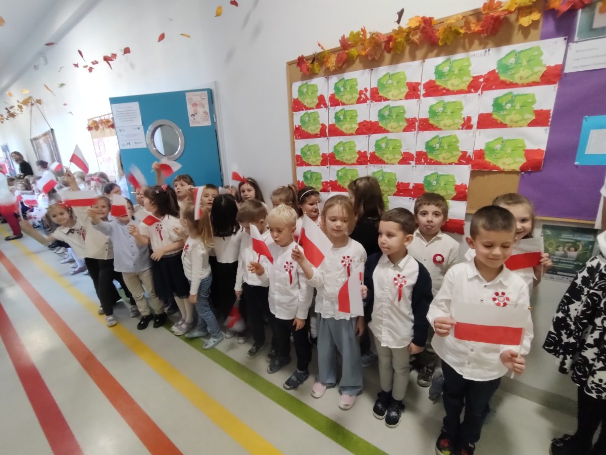 7 listopada w naszym przedszkolu odbyła się uroczystość z okazji Narodowego Święta Niepodległości. Podczas spotkania nauczycielki przybliżyły dzieciom znaczenie tego wyjątkowego dnia w historii naszego kraju. Punktualnie o godzinie 11:11 cała społeczność przedszkola z dumą odśpiewała hymn narodowy – „Mazurek Dąbrowskiego”.
