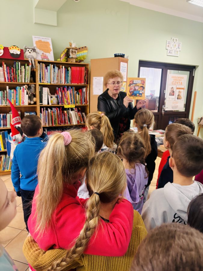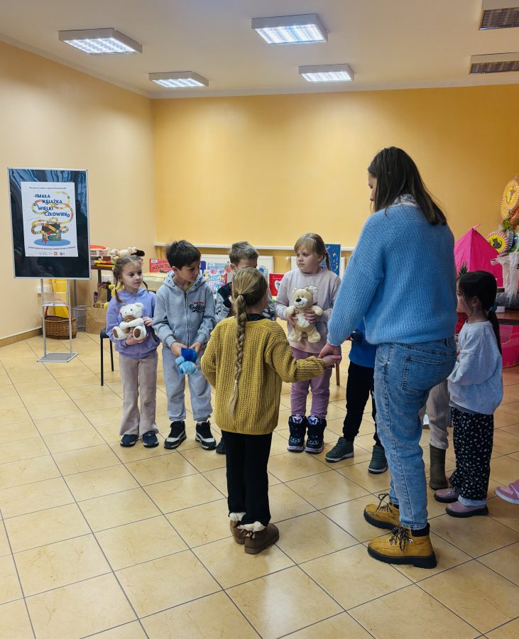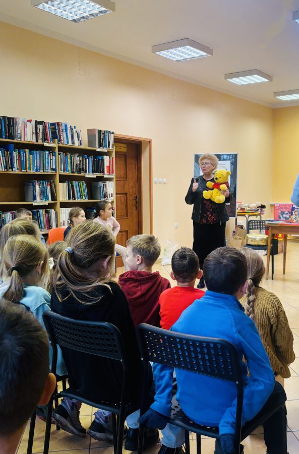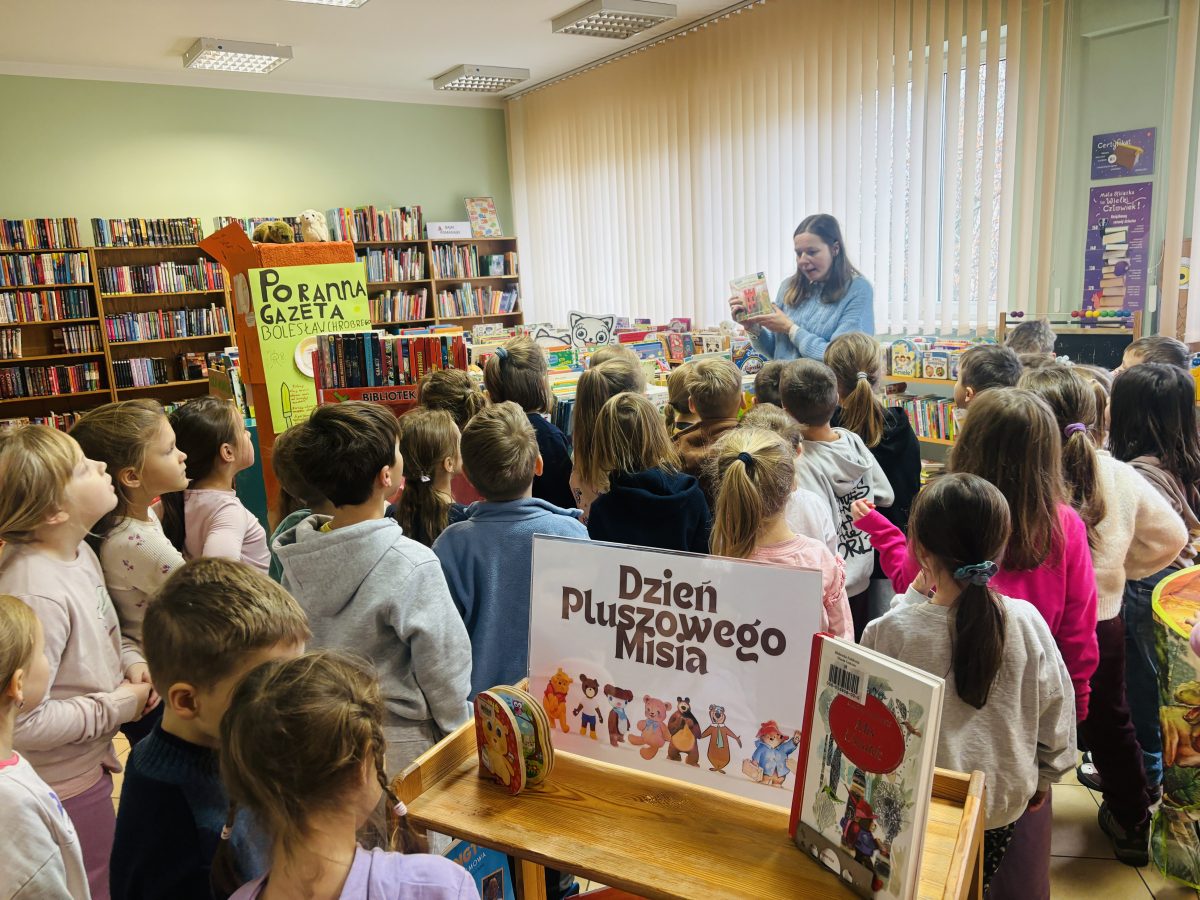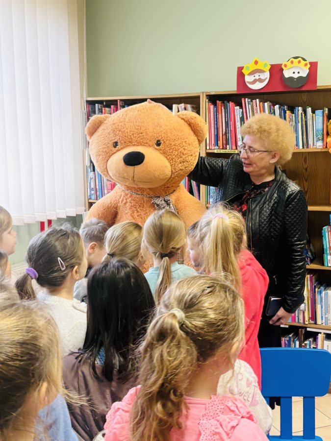 Dziś nasza grupa kolejny raz odwiedziła bibliotekę. Dzieci przypomniały sobie zasady zachowania w bibliotece i wypożyczania książek. Przedszkolaki brały również udział w zajęciach z okazji Dnia Misia. Przedstawione zostały książki dotyczące pluszowych przyjaciół, dzieci opowiadały czym różnią się misie. Powstał również mini las 🙂 .