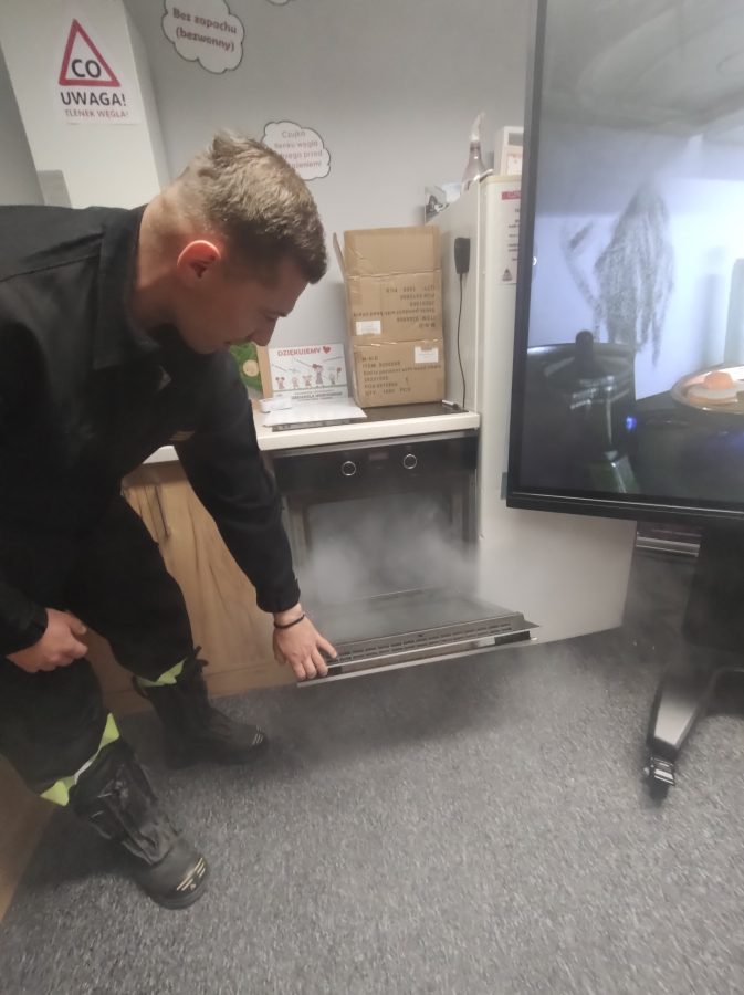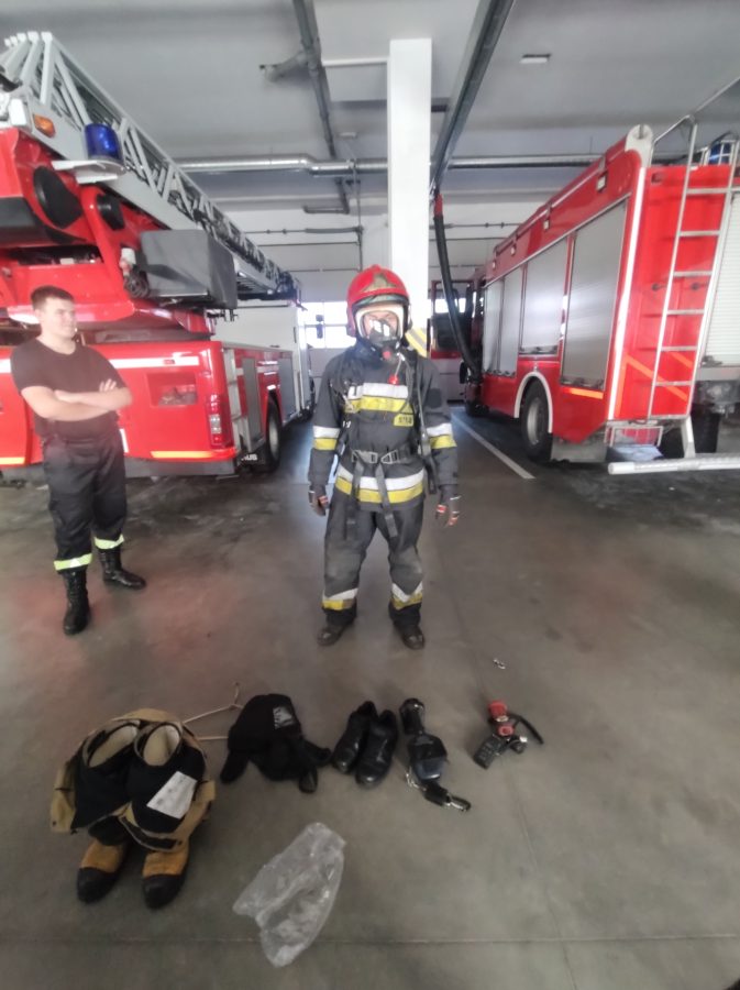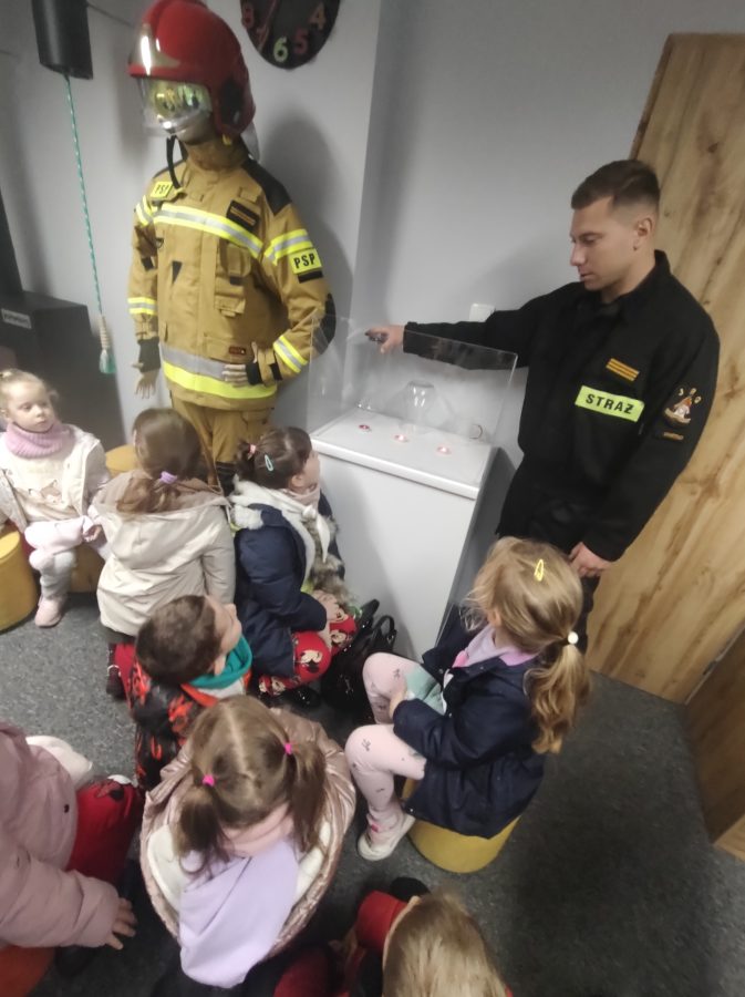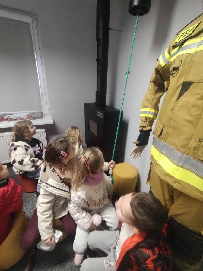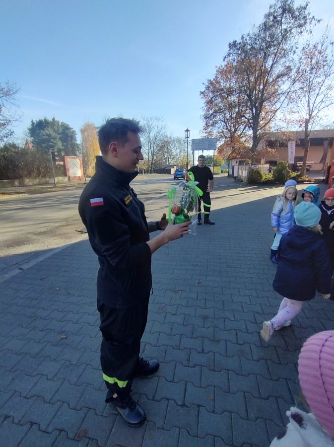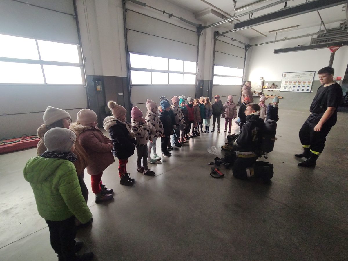Dzisiaj przedszkolaki udały się z wizytą do pobliskiej Straży Pożarnej. Na miejscu przywitał nas strażak, który oprowadził dzieci po komendzie. Przedszkolaki dowiedziały się na czym polega praca strażaka, kiedy należy wzywać pomoc, jak przestrzegać bezpieczeństwa w domu oraz środowisku wodnym. Panowie strażacy pokazali dzieciom podstawowe sprzęty strażackie i mundury. Największe wrażenie zrobiły na dzieciach ogromne wozy strażackie z syrenami i błyszczącymi światłami oraz zjazdy strażaków po rurze. Przedszkolakom bardzo się podobało i wielu z nich stwierdziło, że w przyszłości chciałoby zostać strażakiem.